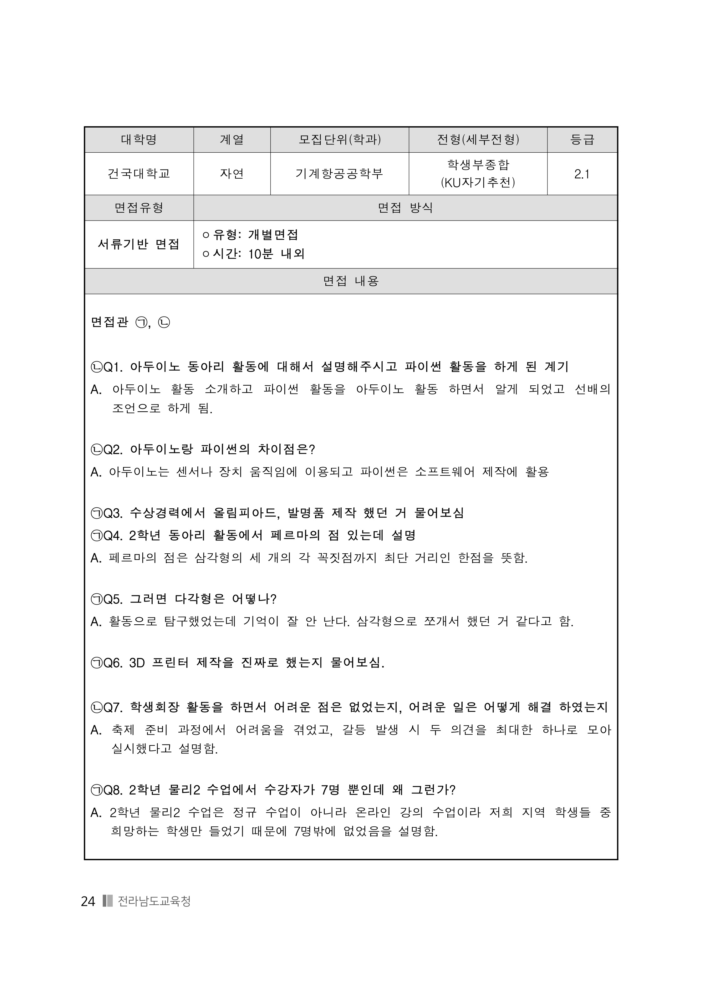 2021학년도 건국대학교 면접 전형 분석