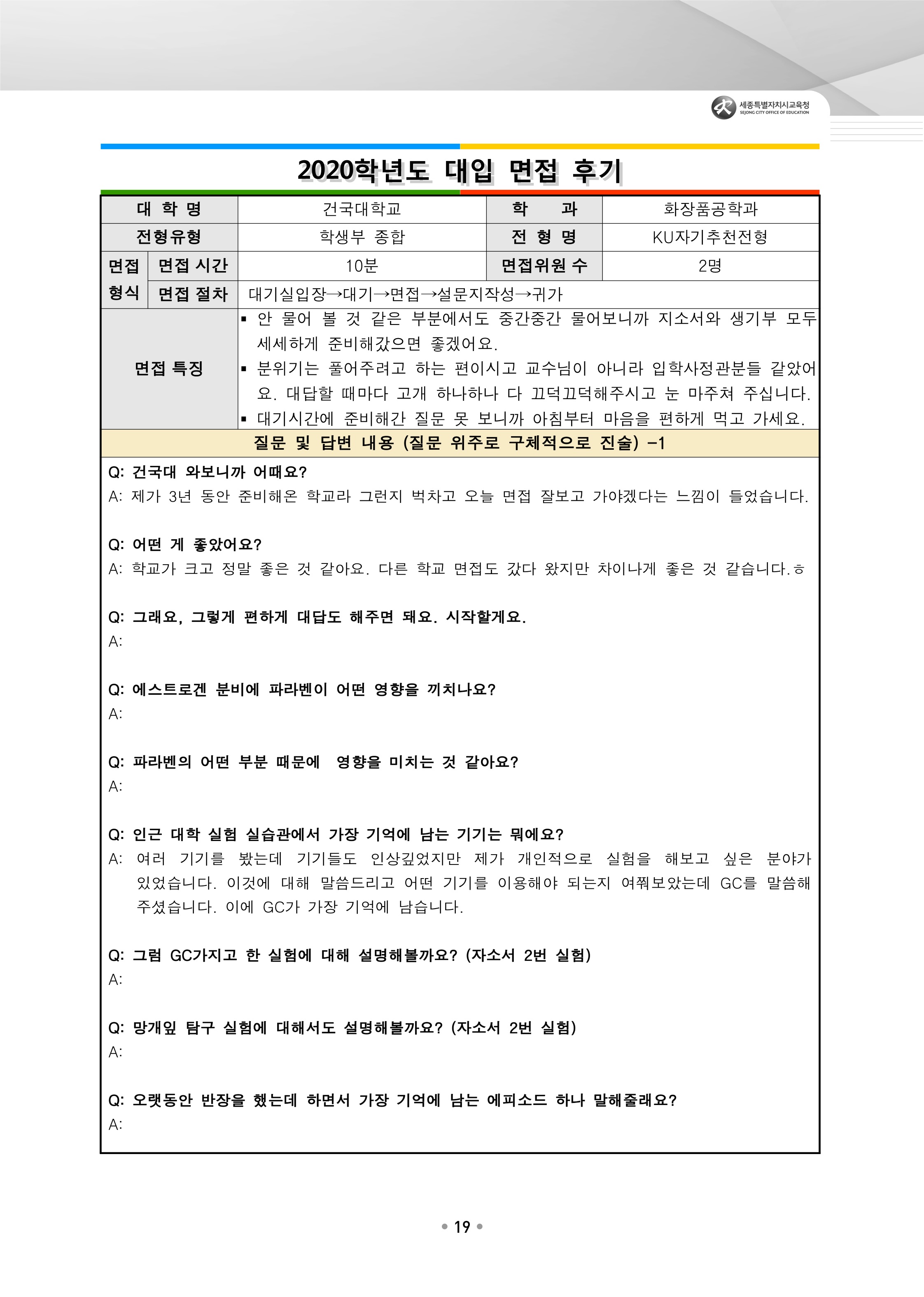 2021학년도 건국대학교 면접 후기7 - 일어교육과 2021학년도 건국대학교 면접 후기8 - 화장품공학과