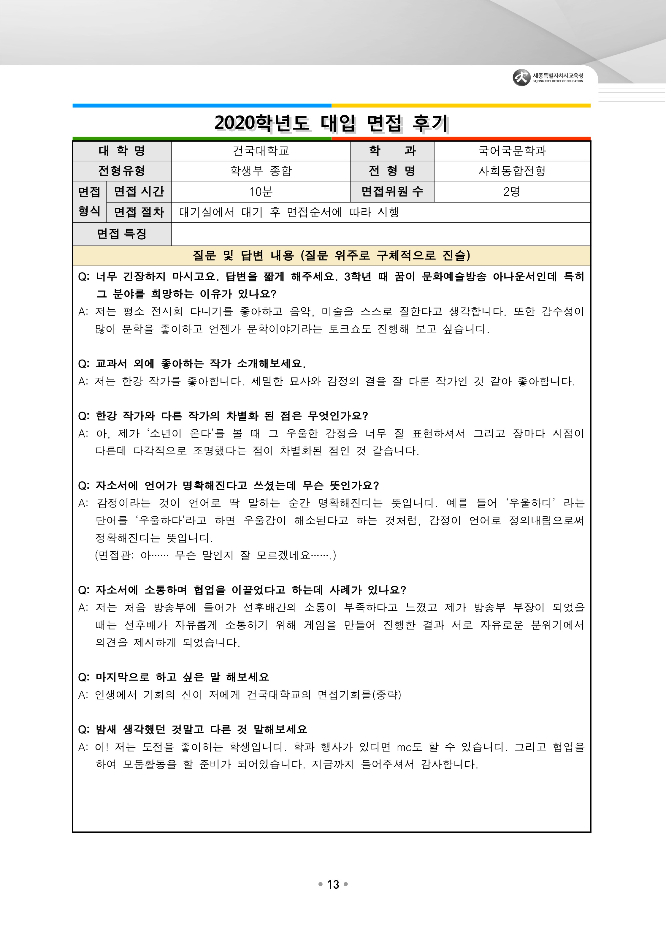 2021학년도 건국대학교 면접 질문입시 정보/면접 2021. 10. 14. 10:10