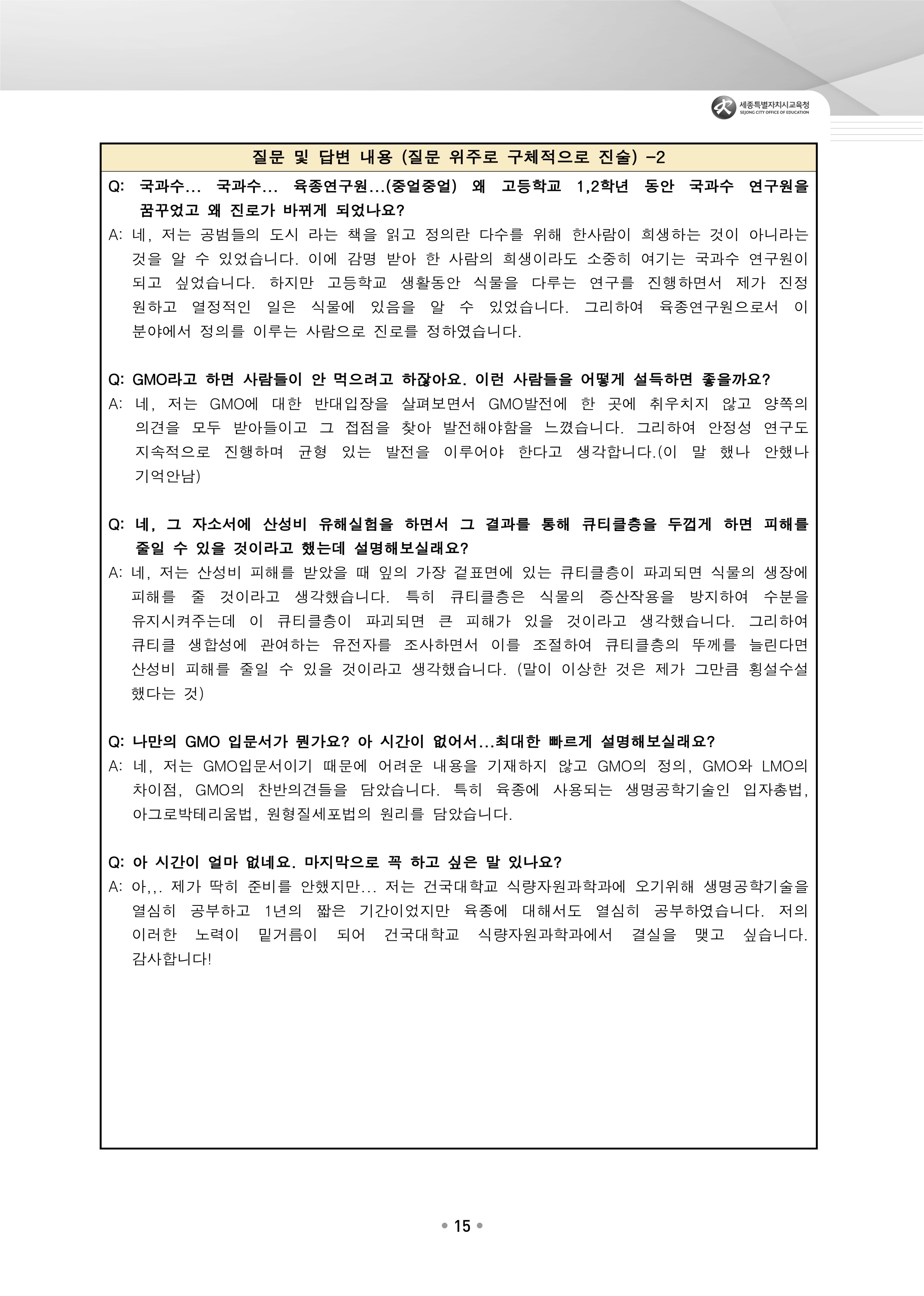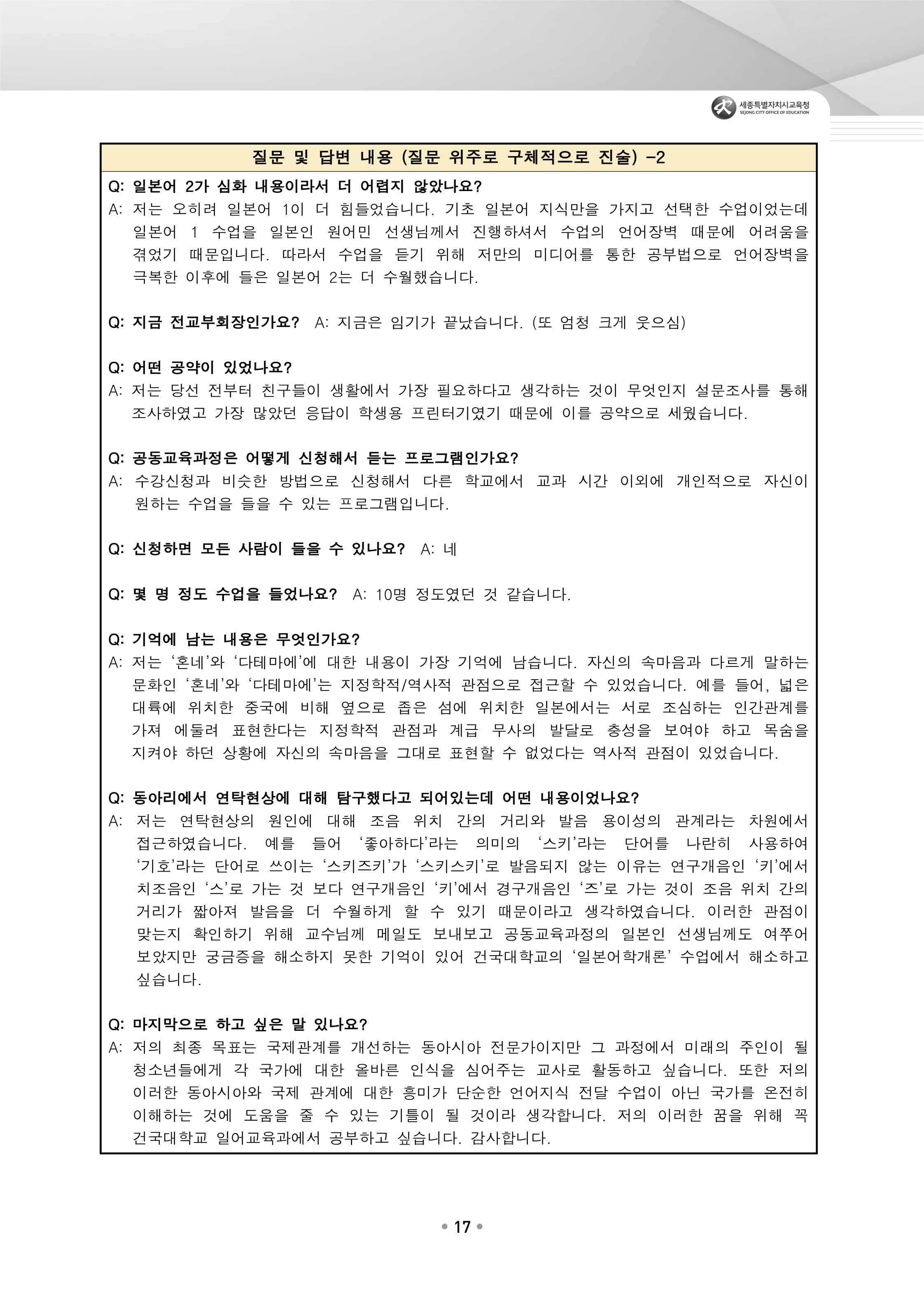 - 경제 연구원이 되려면 좋은 성적을 받아서 좋은 대학교에 가야 하는데 회장 일을 한 이유는?