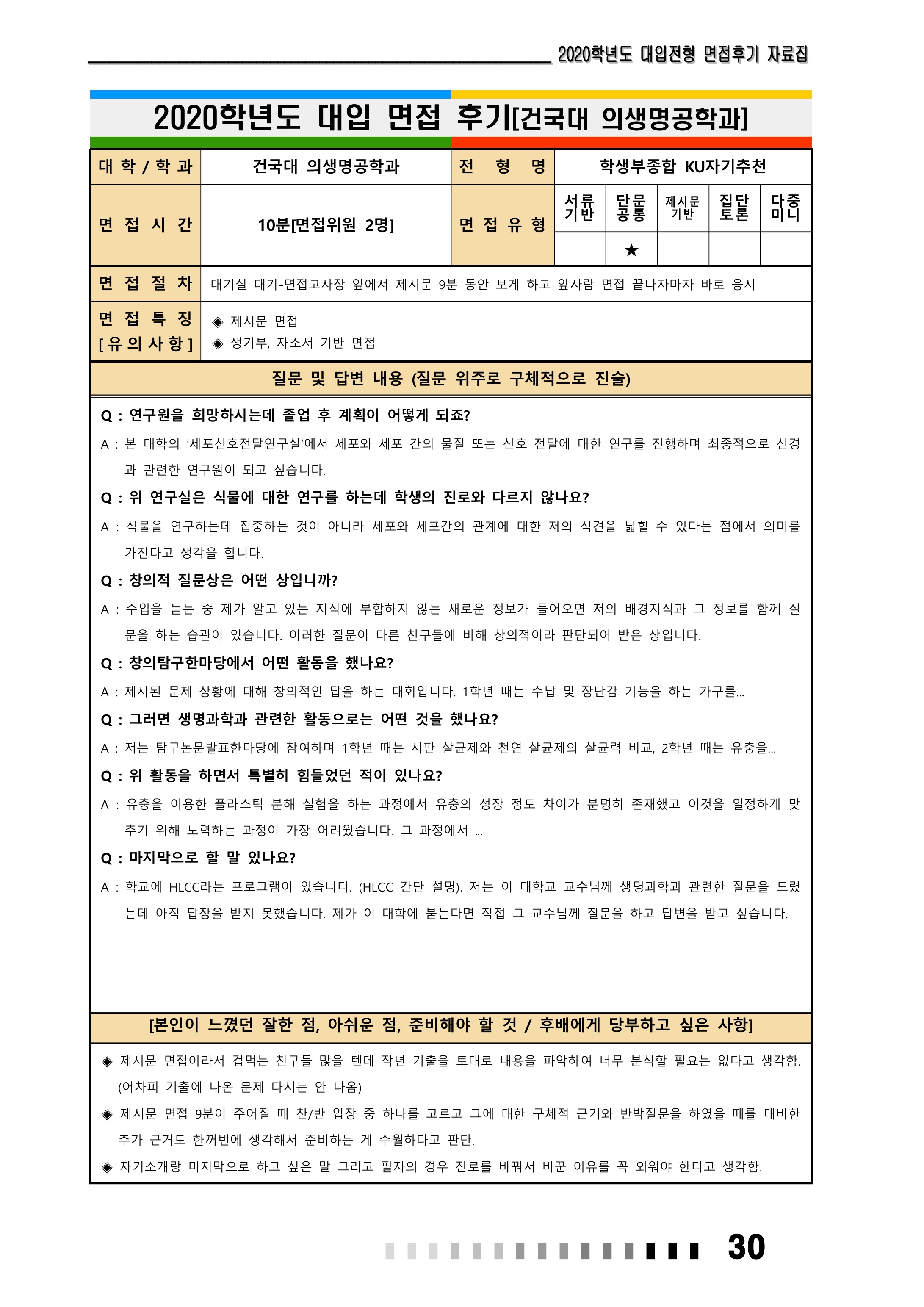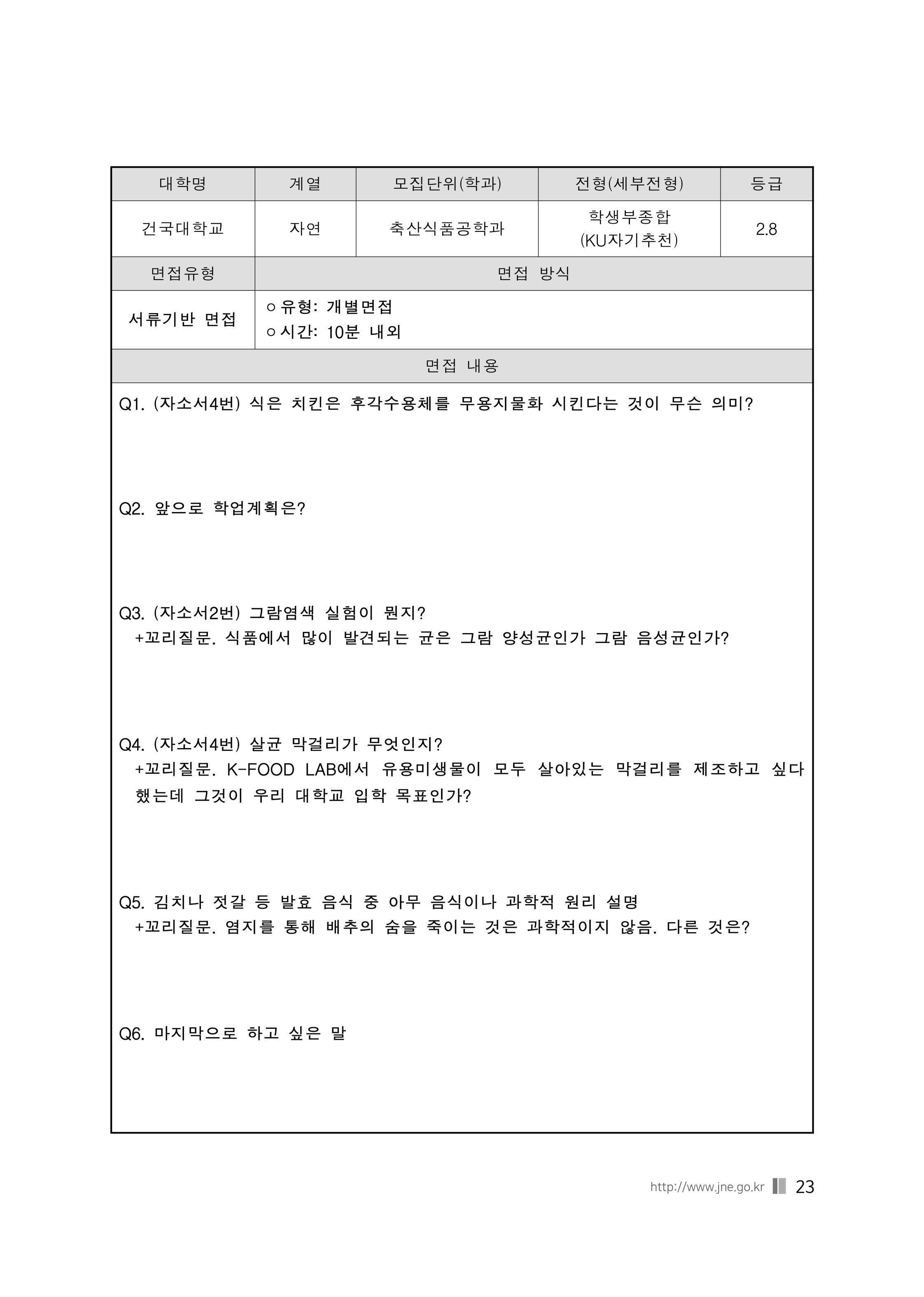 2021학년도 건국대학교 면접 후기6 - 식량자원과학과