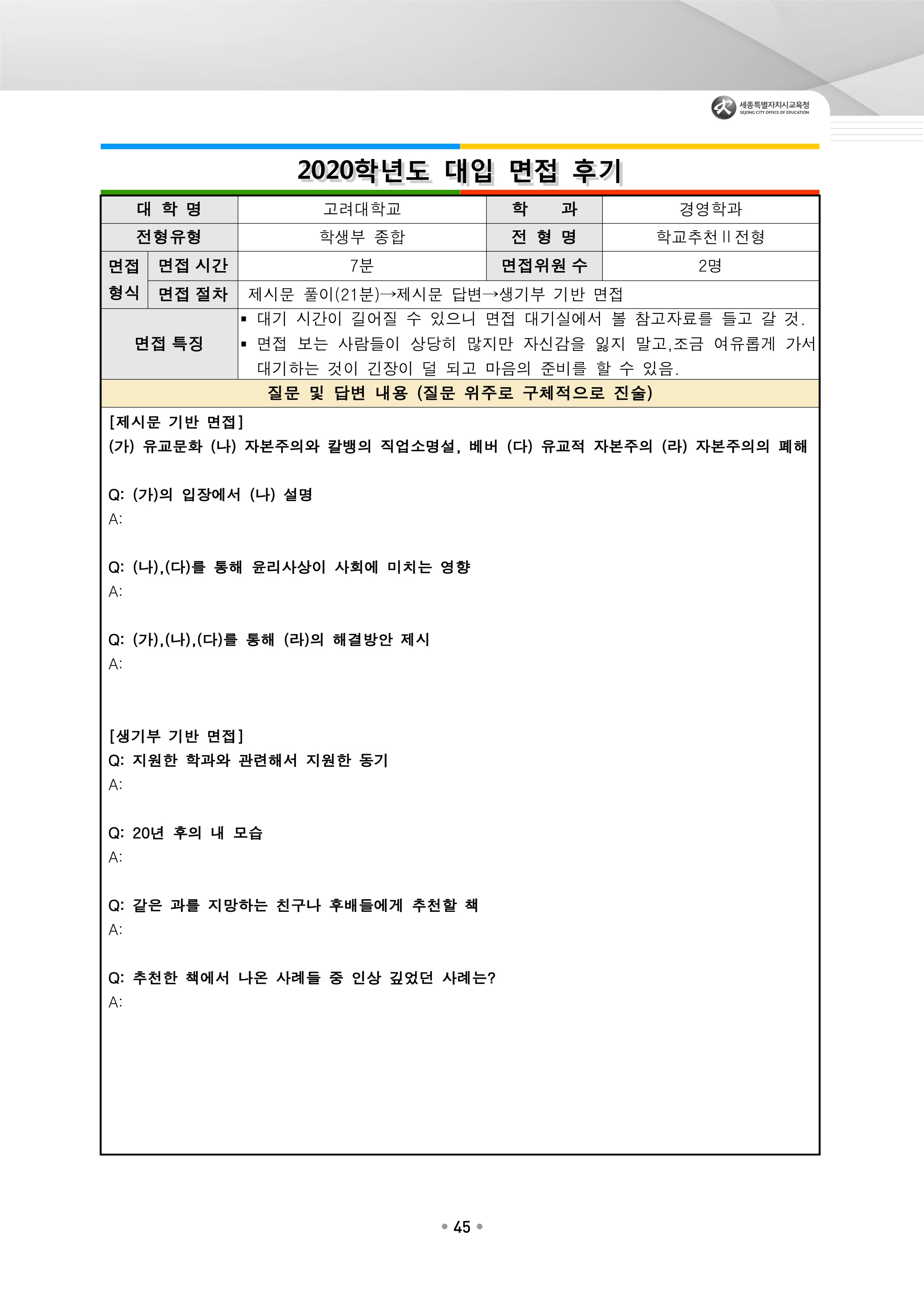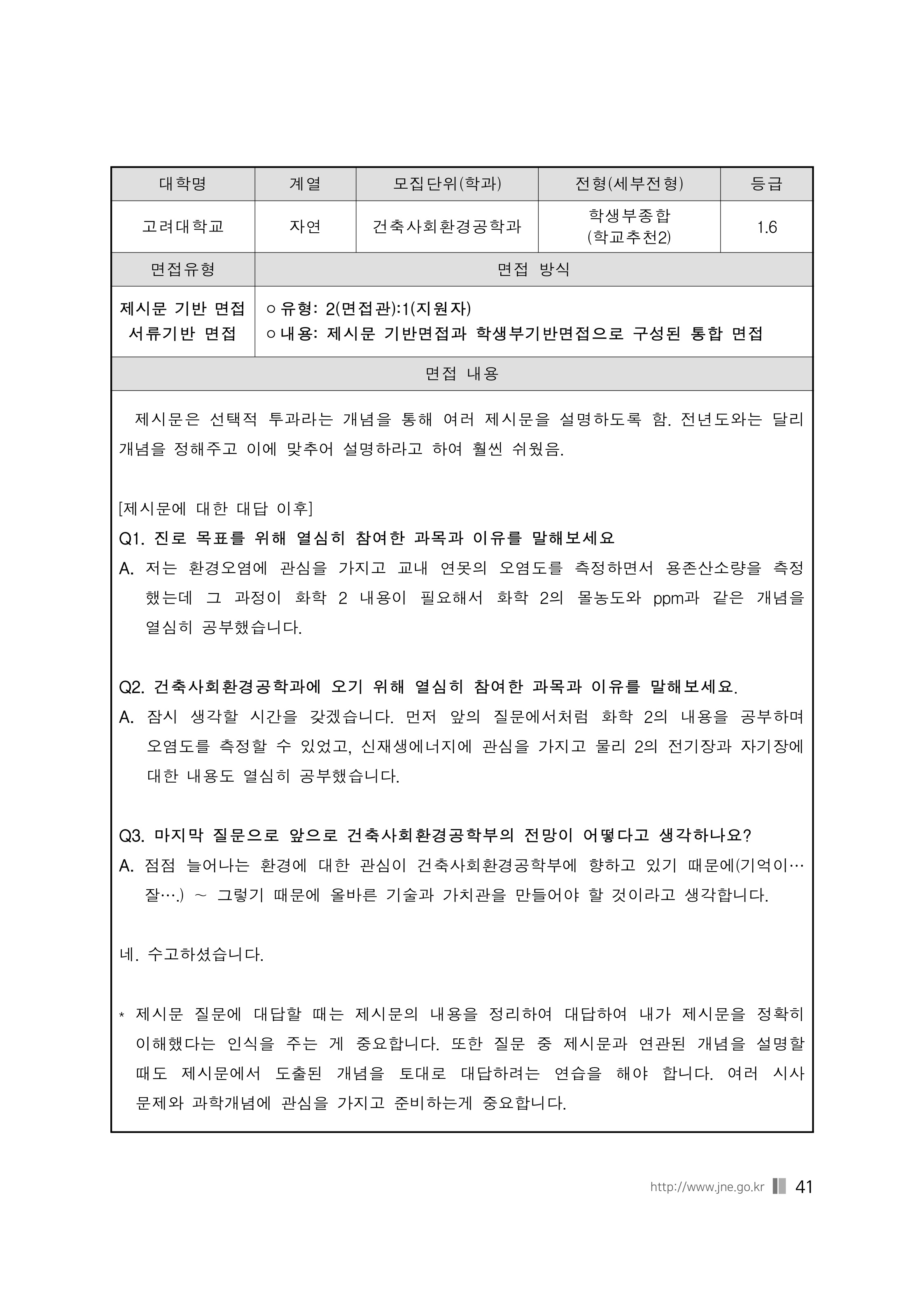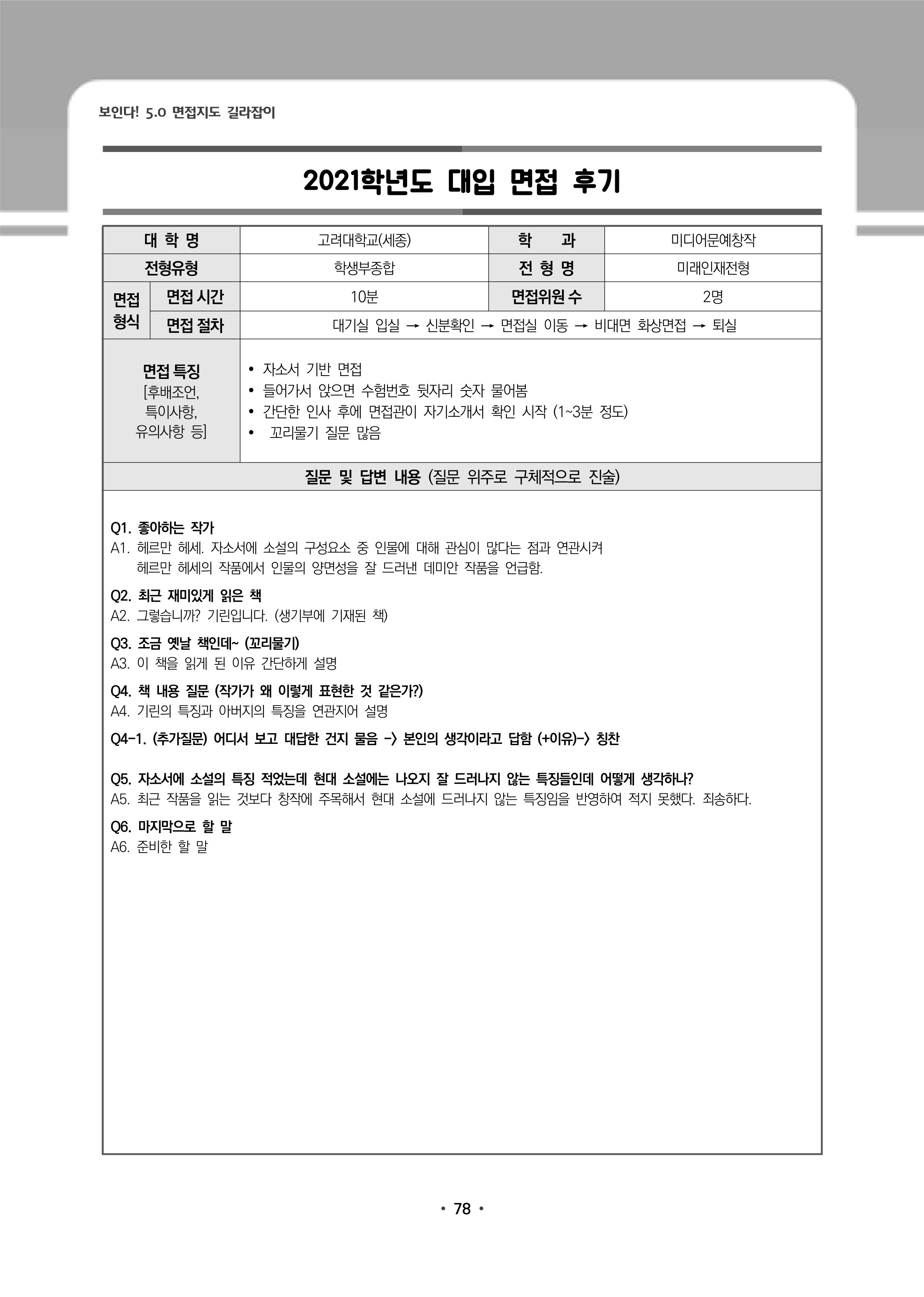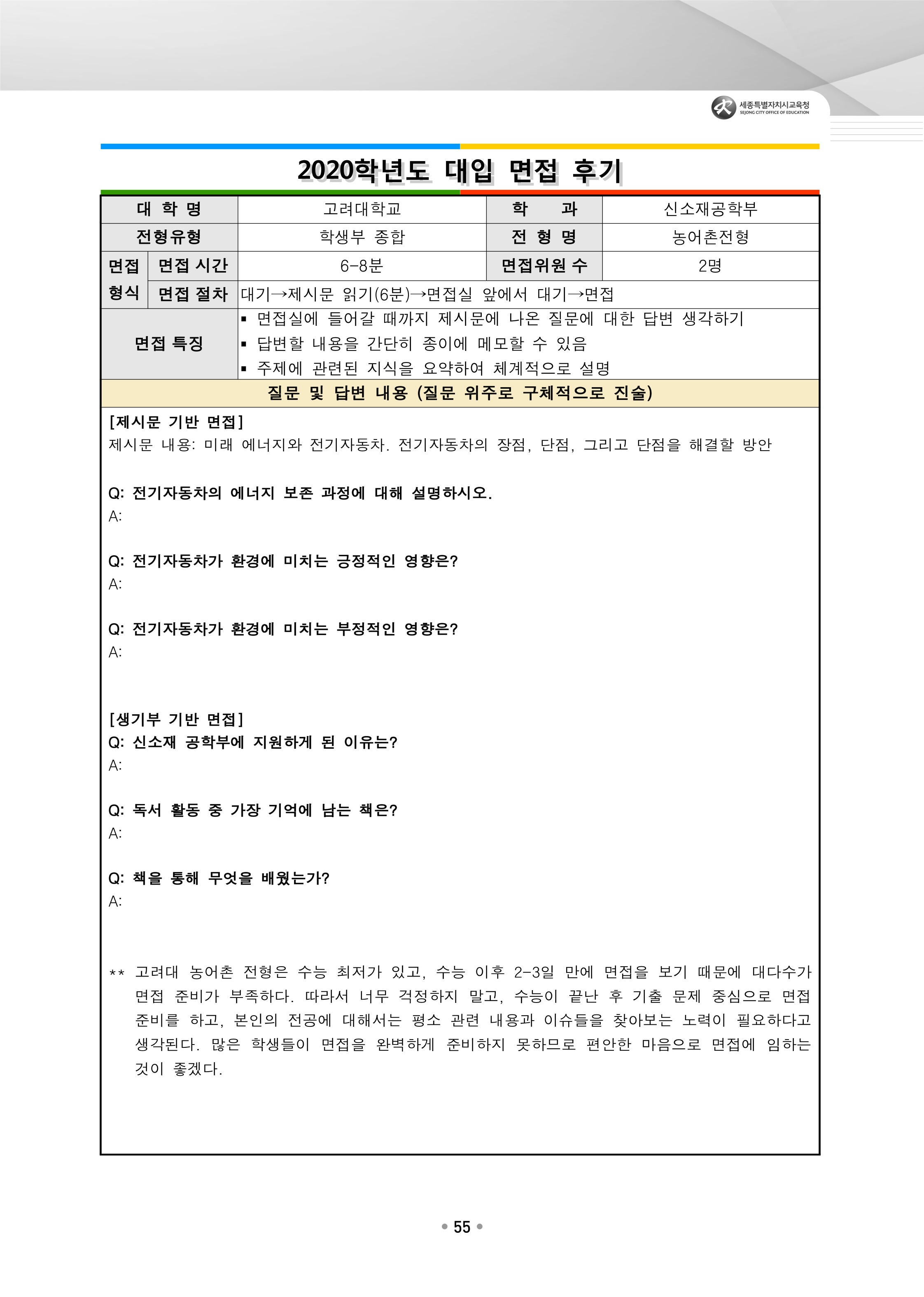 2021학년도 고려대학교 면접 후기73 - 환경생태공학부 2021학년도 고려대학교 세종캠퍼스 면접 후기1 - 미디어문예창작전공