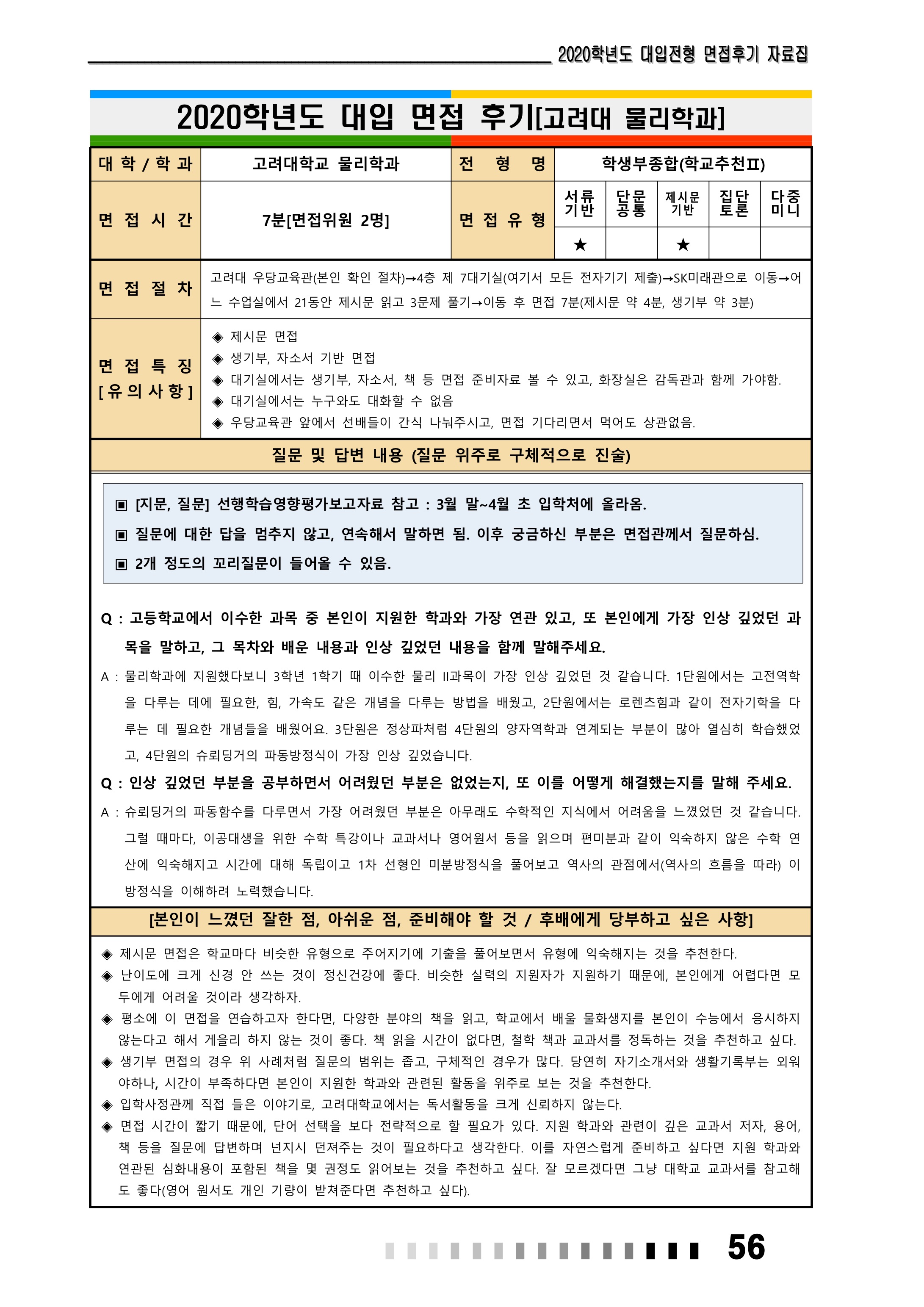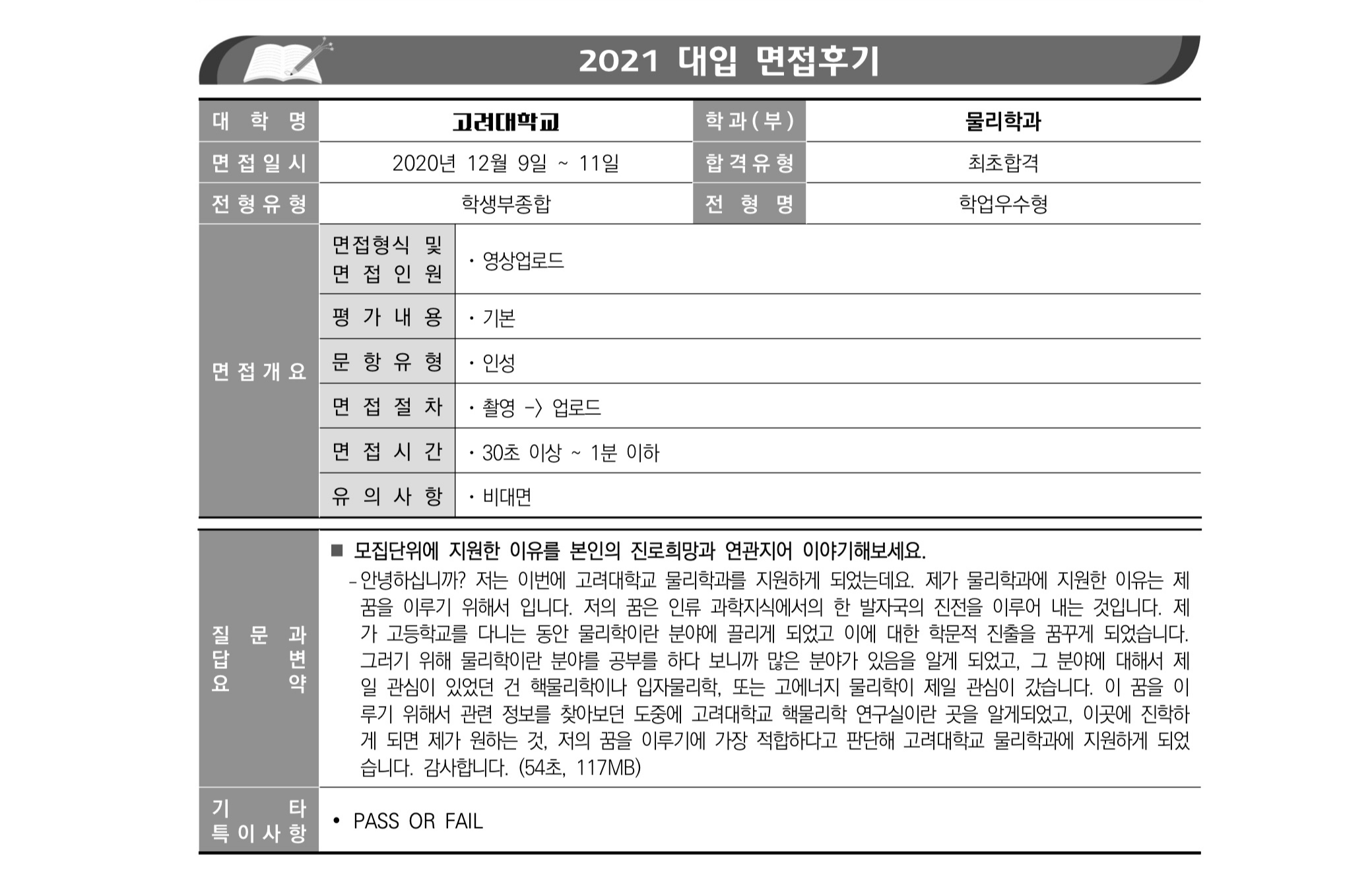 2021학년도 고려대학교 면접 후기24 - 물리학과 2021학년도 고려대학교 면접 후기25 - 미디어학부