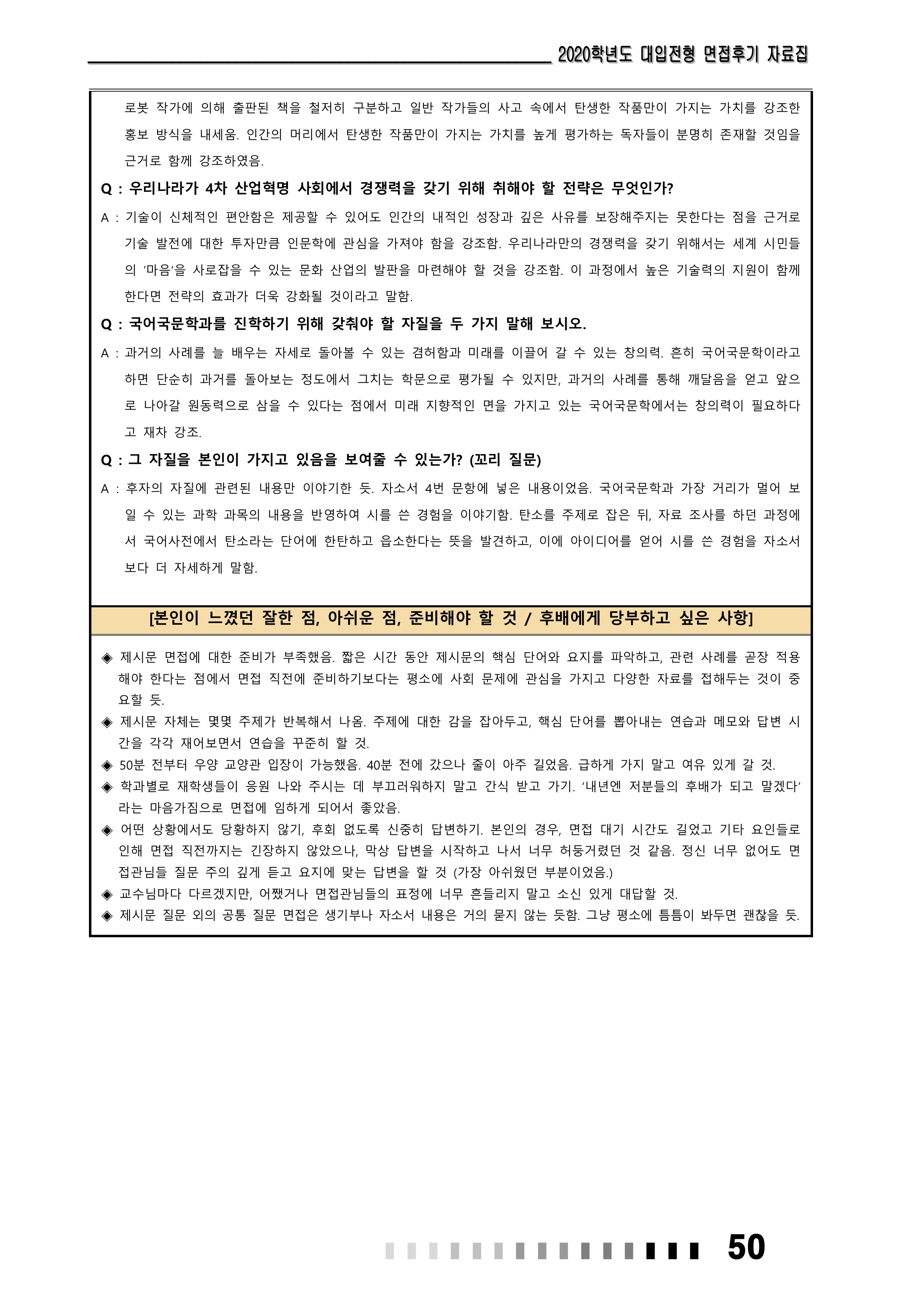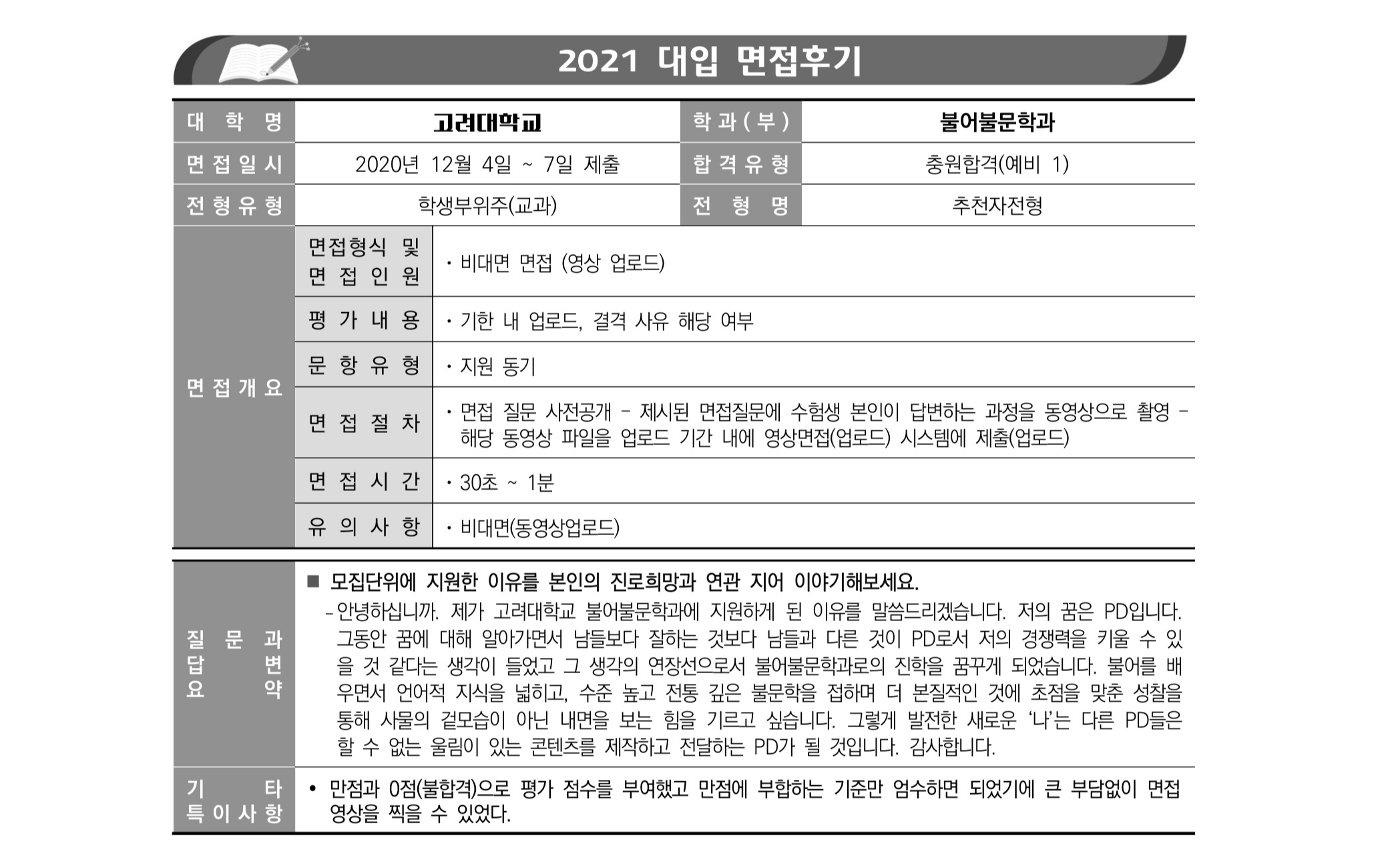 2021학년도 고려대학교 면접 후기13 - 국어국문학과