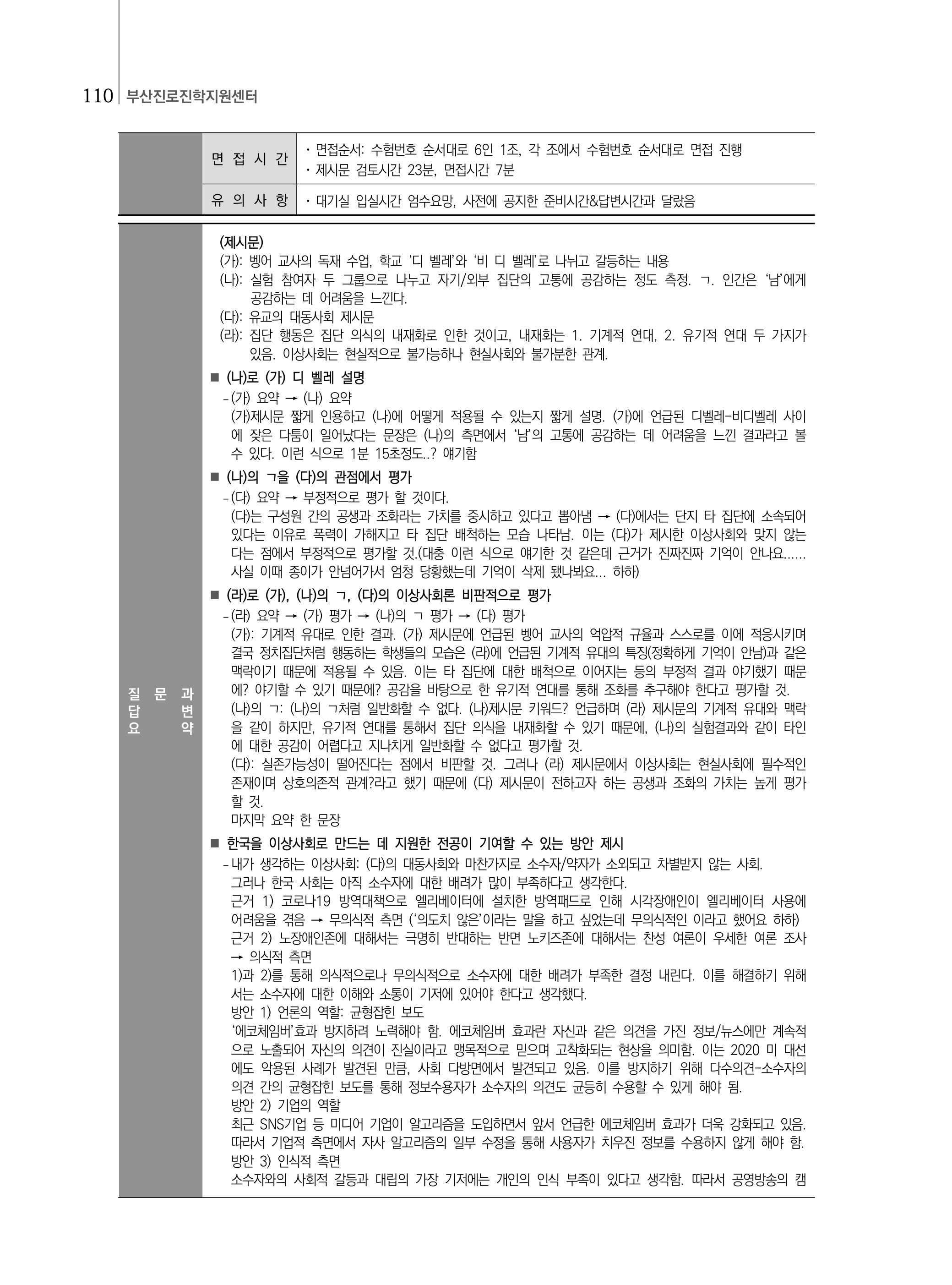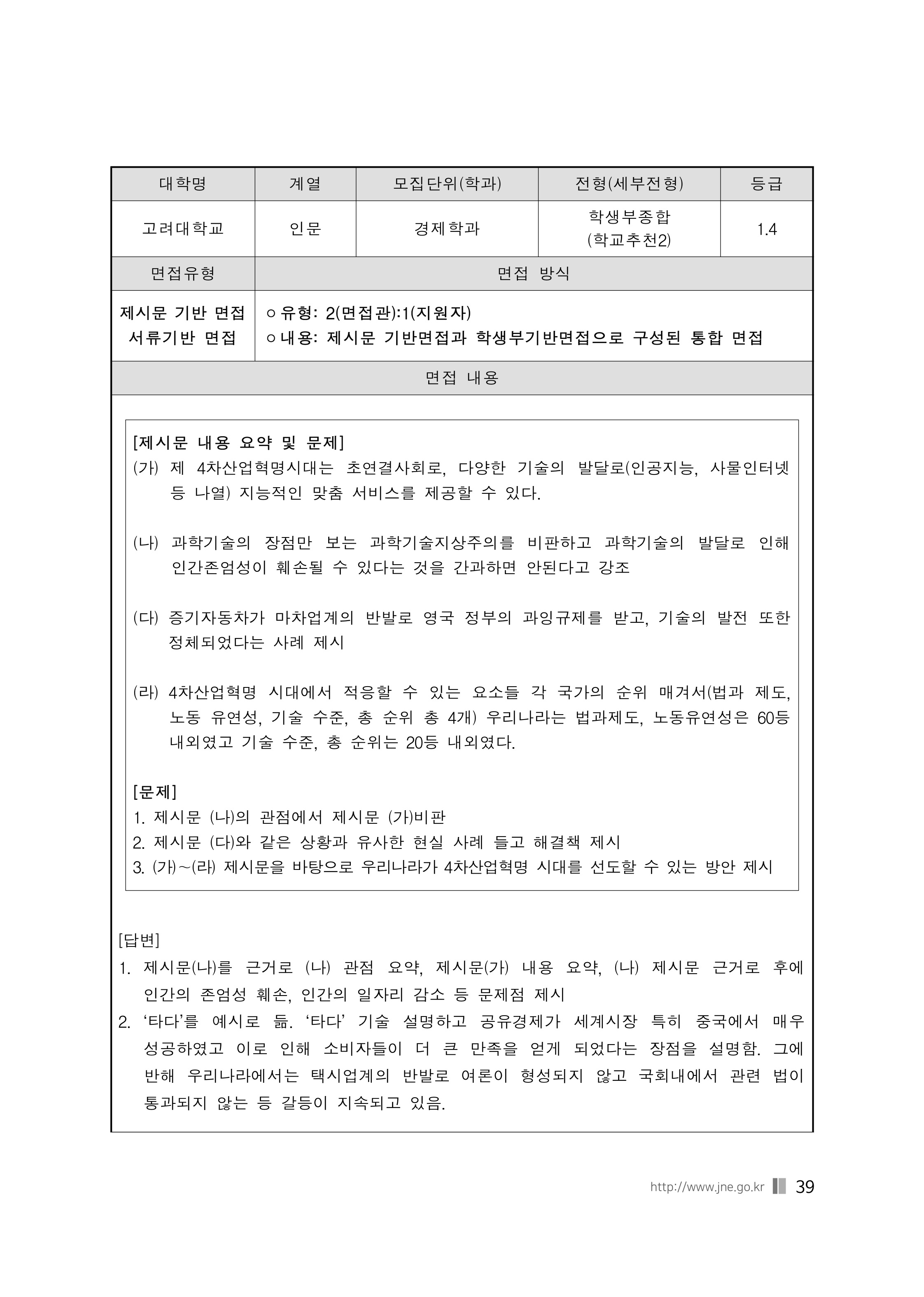 2020학년도 고려대학교 제시문 기반 면접 문제