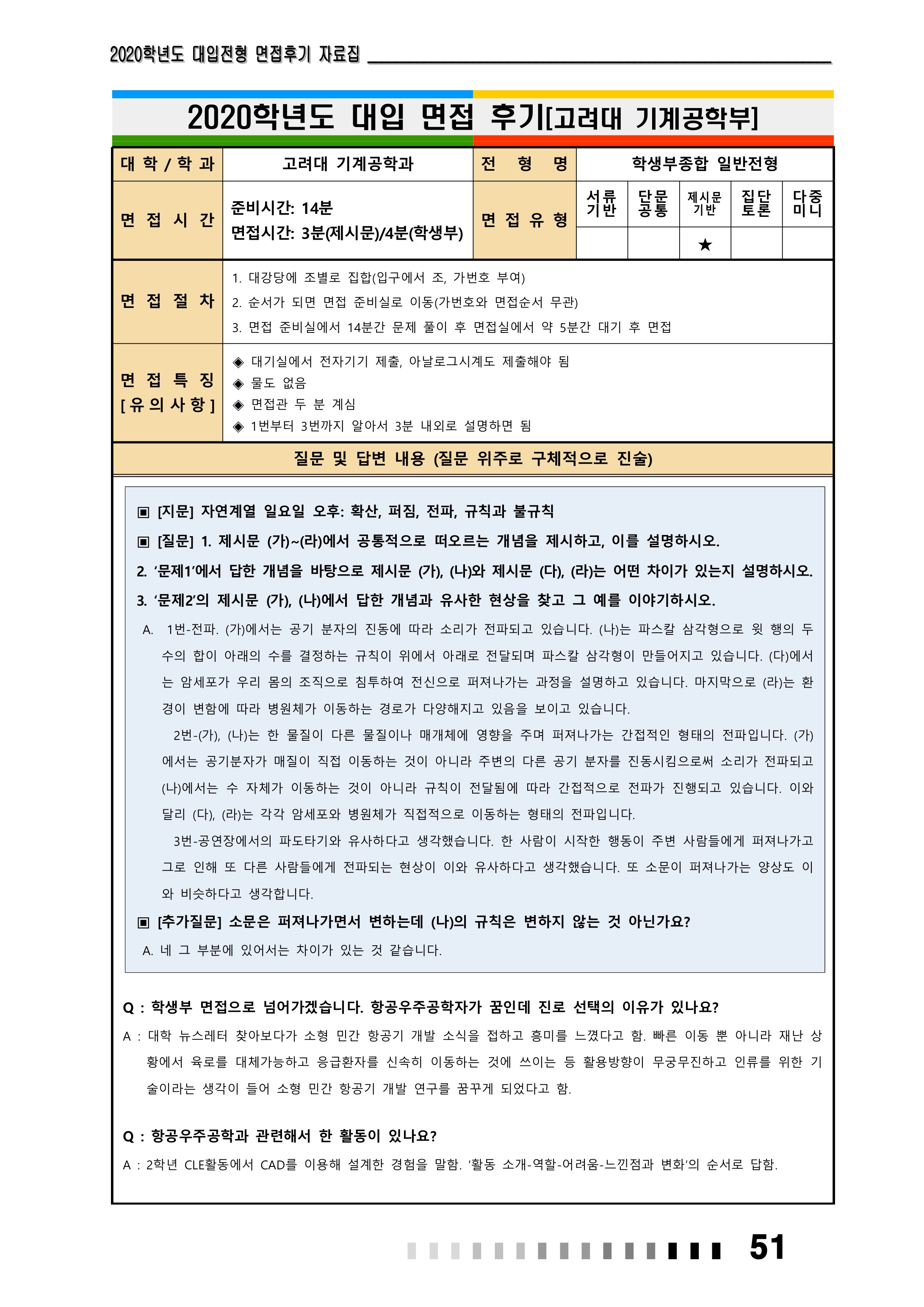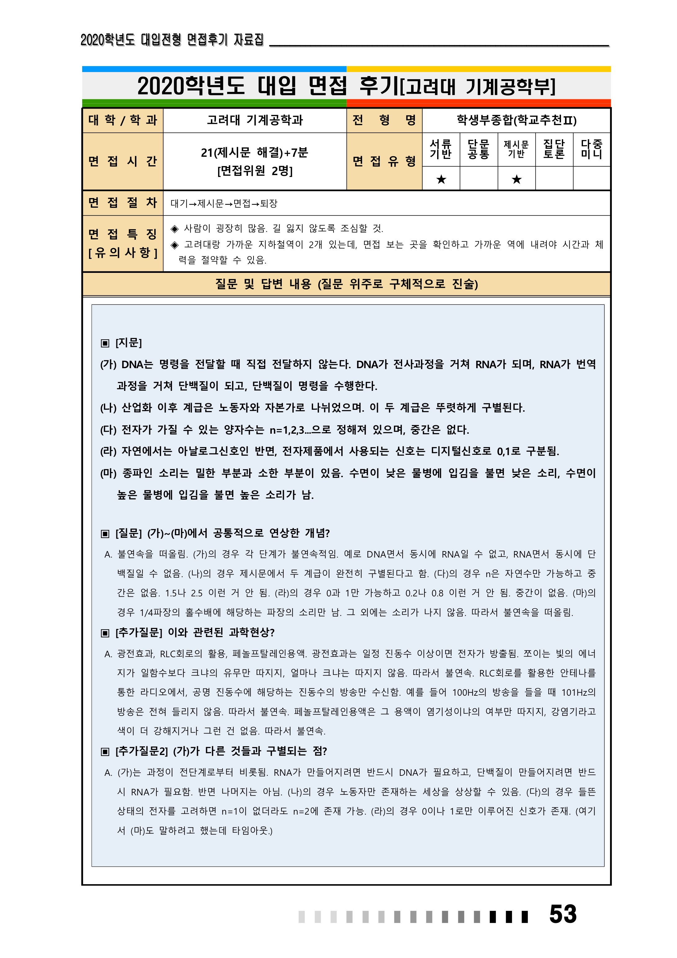 2021학년도 고려대학교 면접 후기17 - 기계공학부