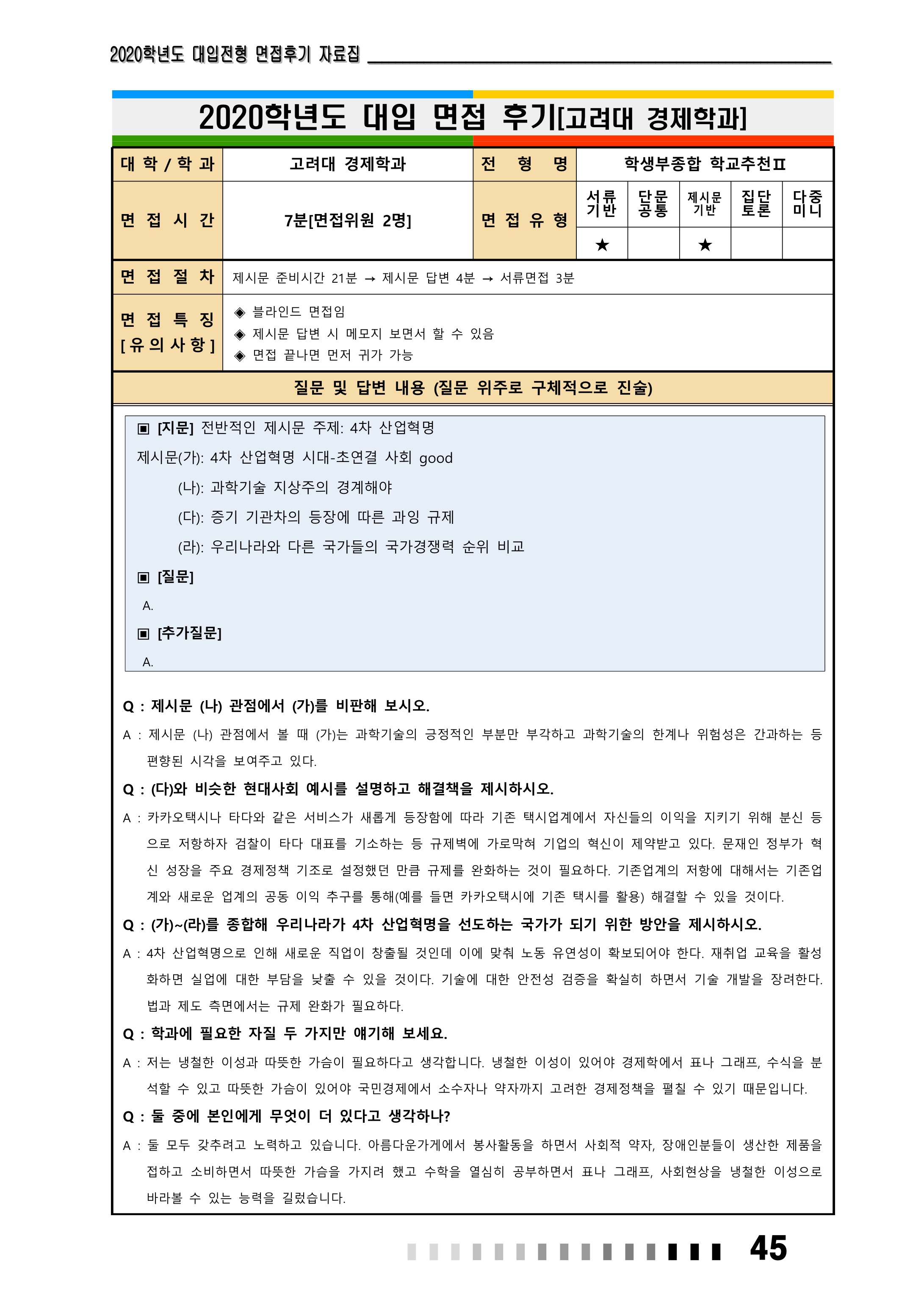 2021학년도 고려대학교 면접 후기8 - 경제학과