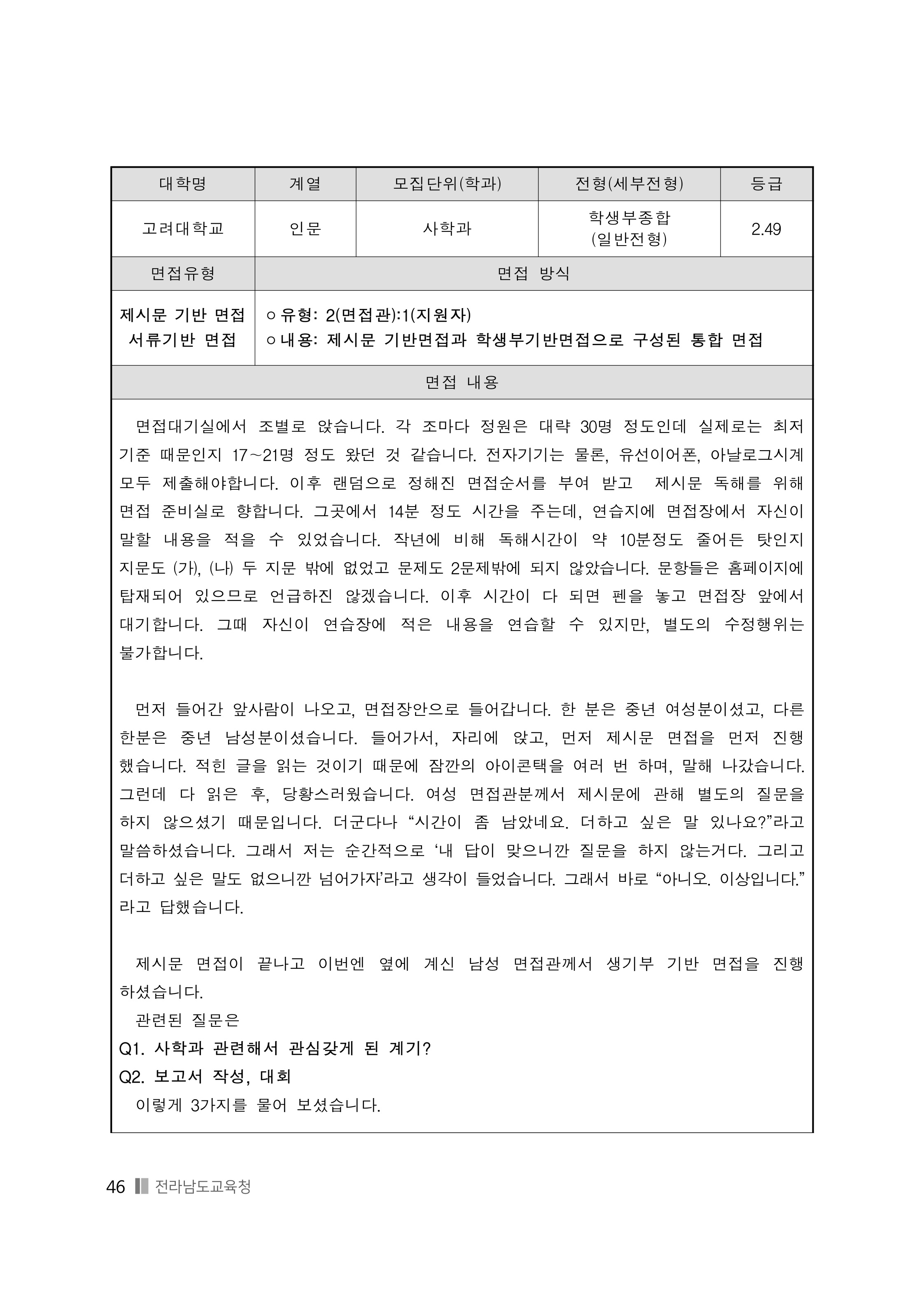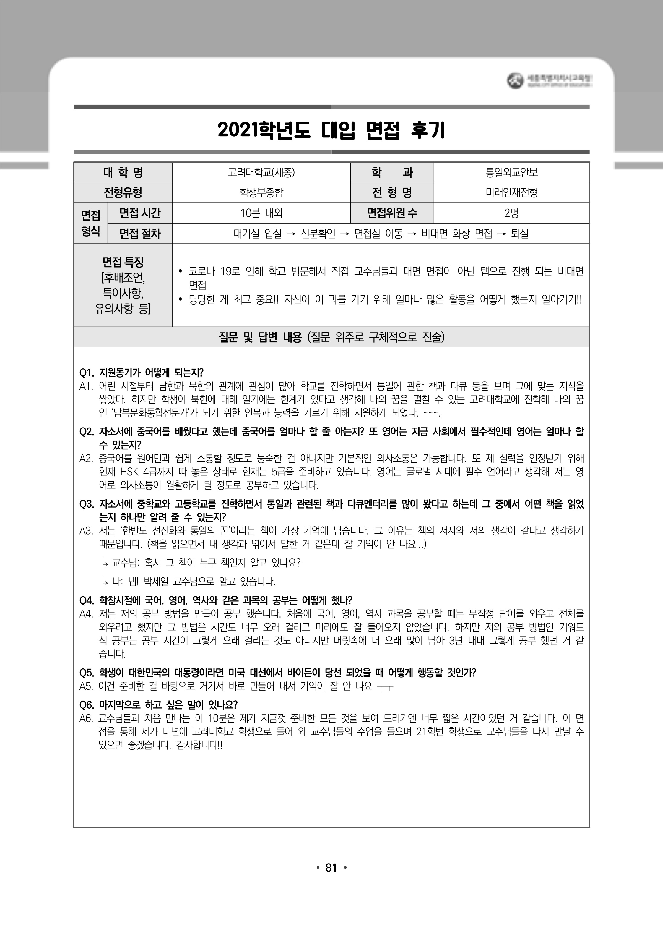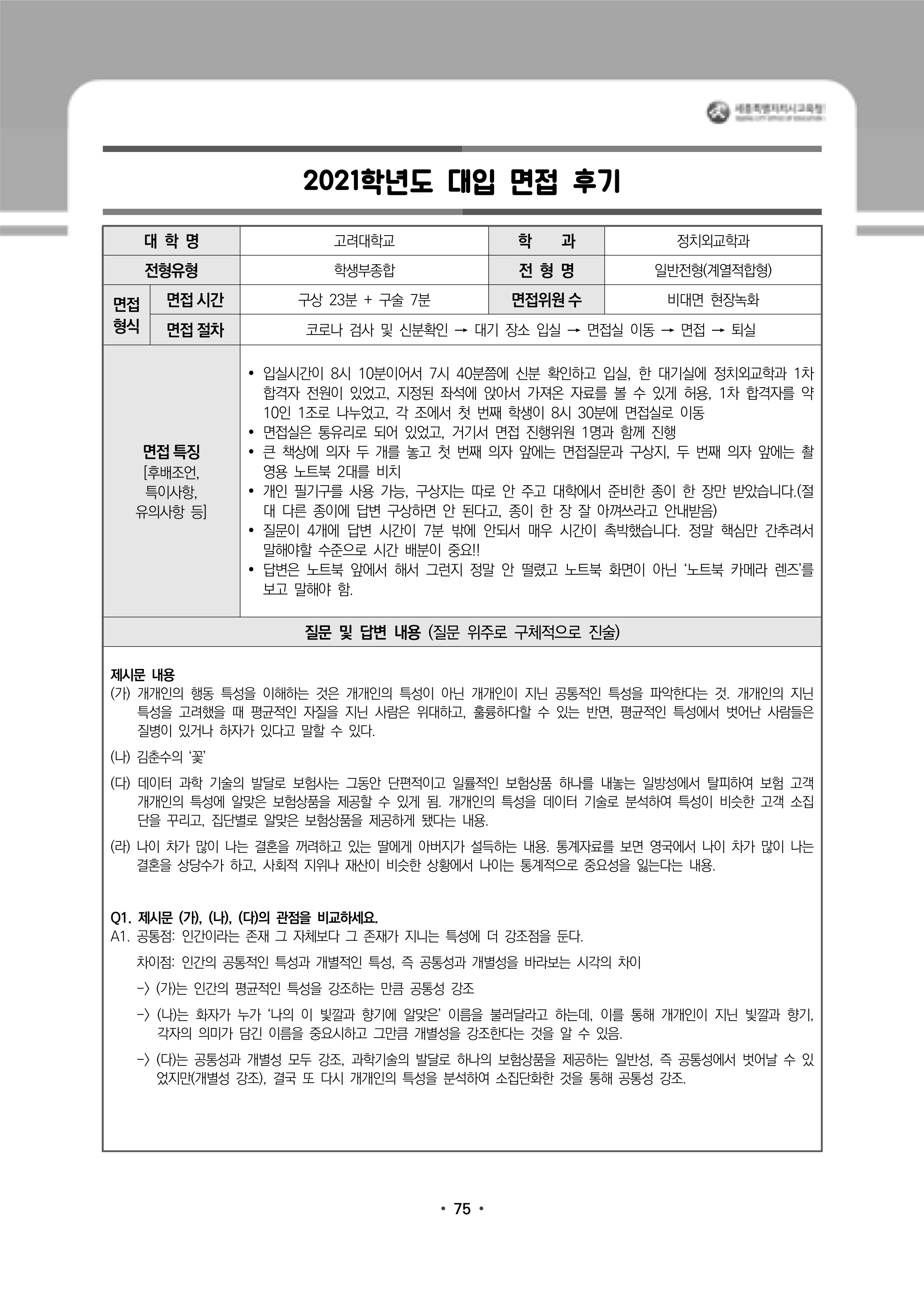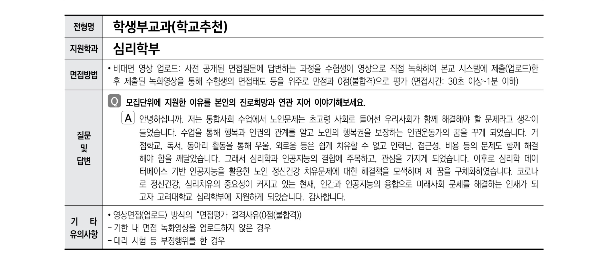 2021학년도 고려대학교 면접 후기48 - 심리학부