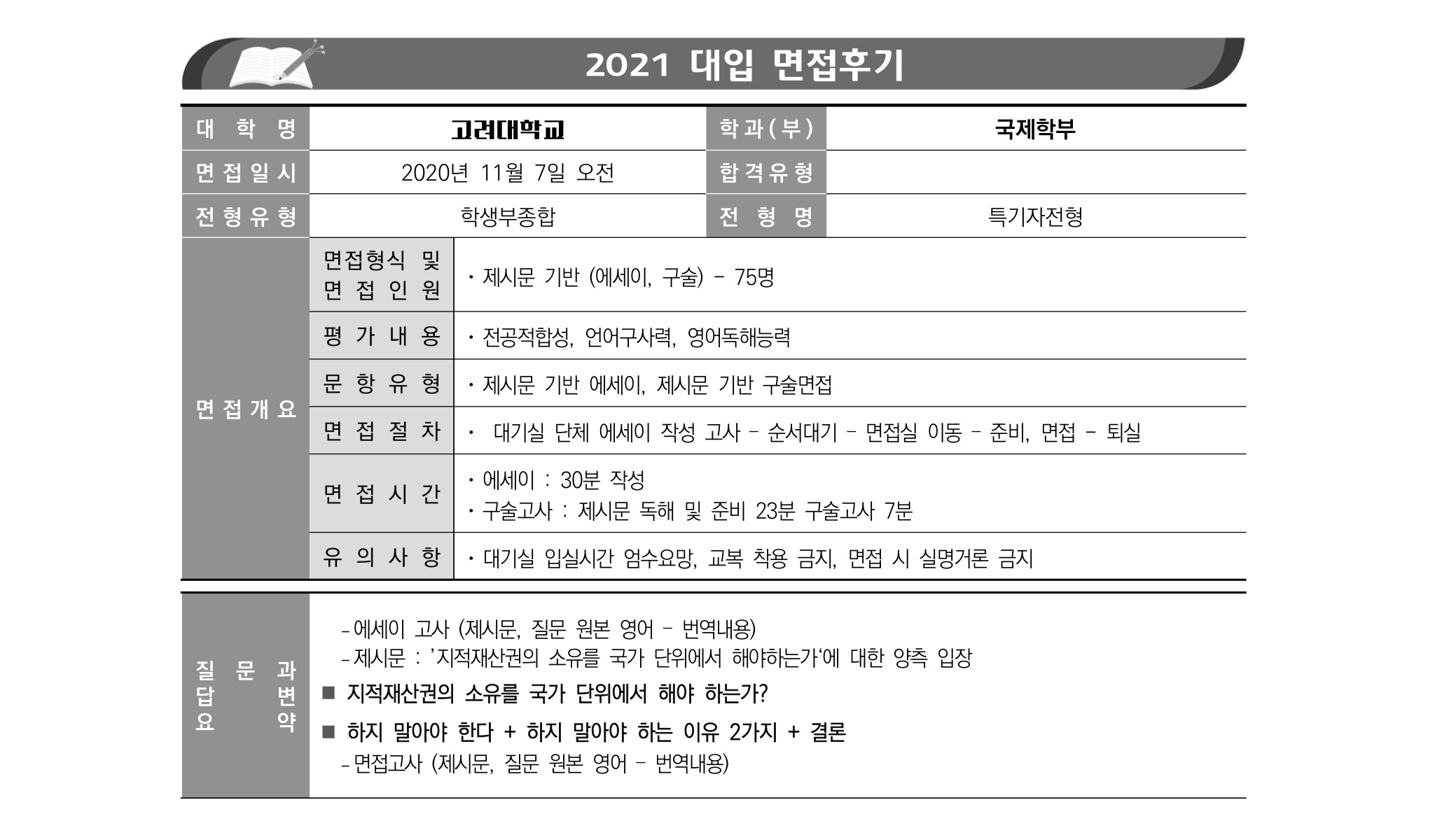 2021학년도 고려대학교 면접 후기15 - 국제학부