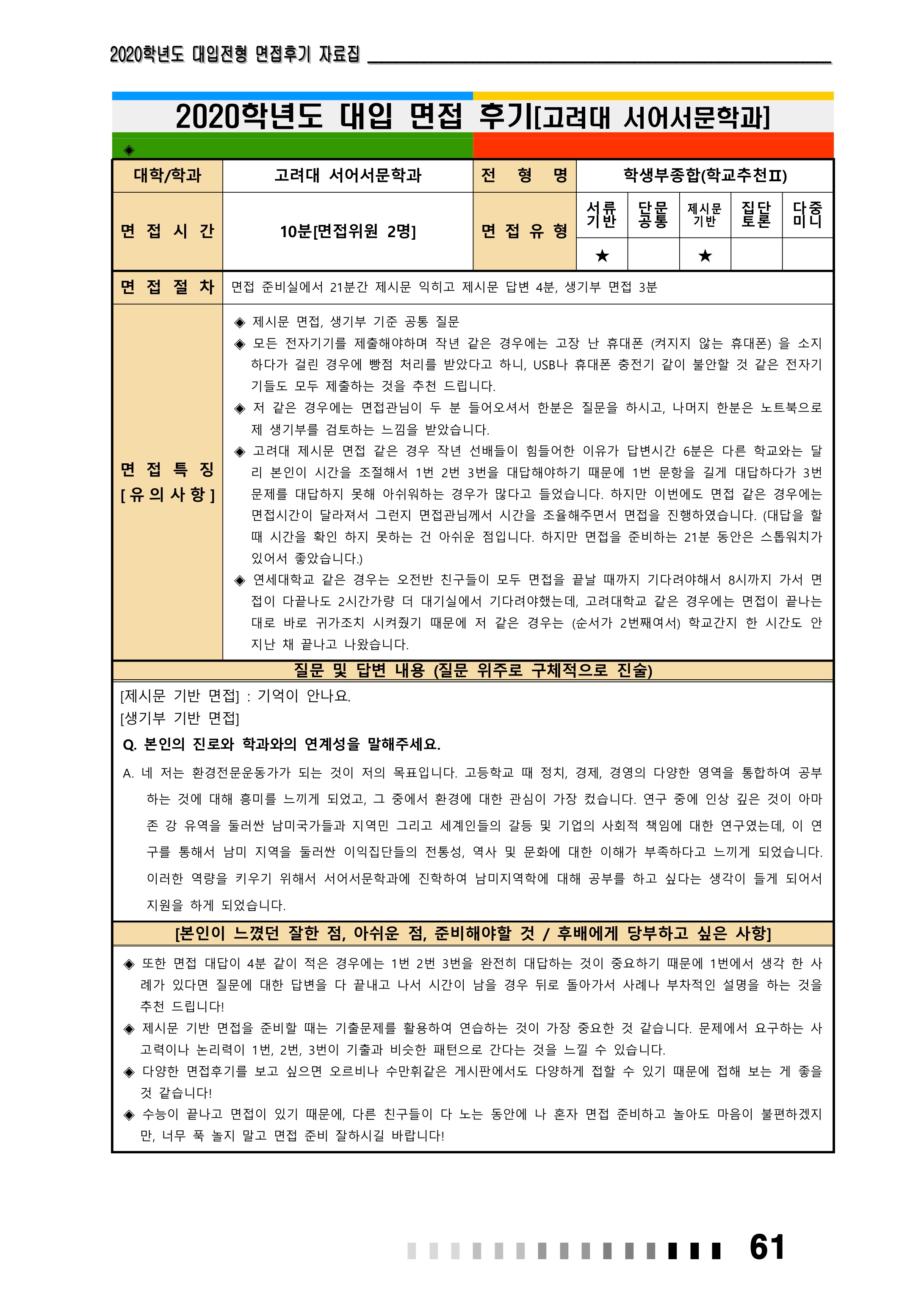 2021학년도 고려대학교 면접 후기20 - 노어노문학과