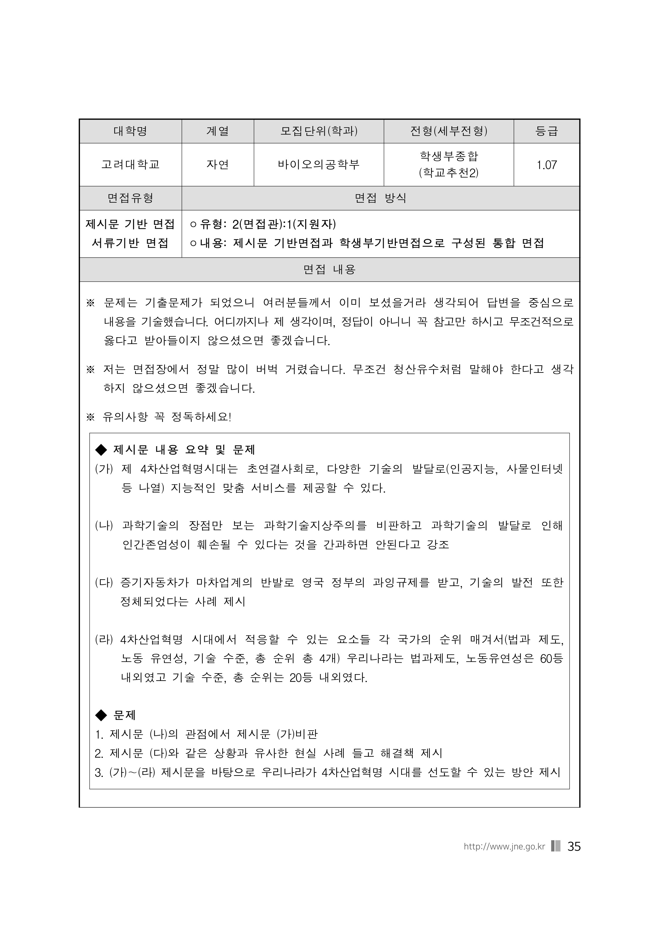 2021학년도 고려대학교 면접 후기28 - 바이오의공학부