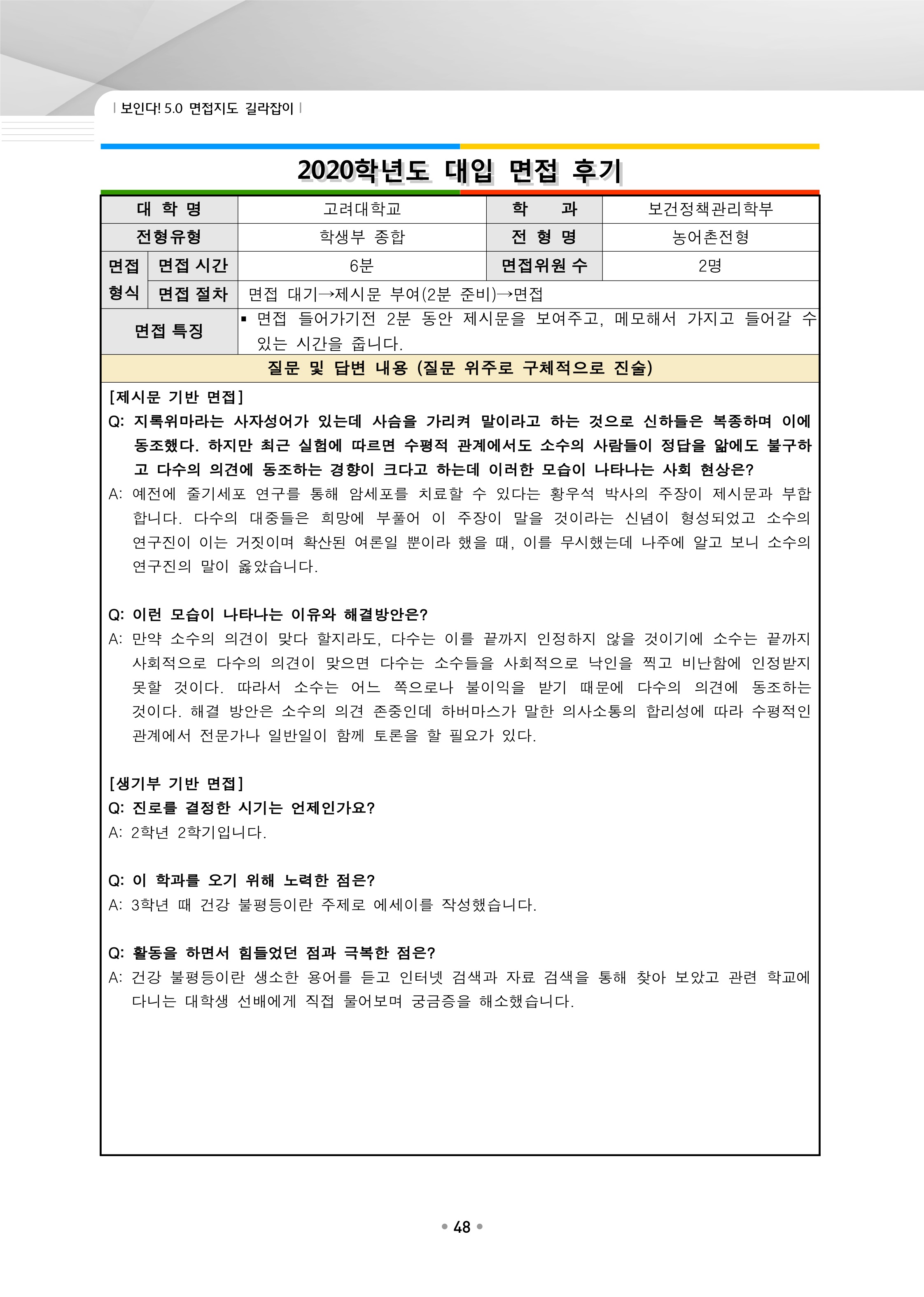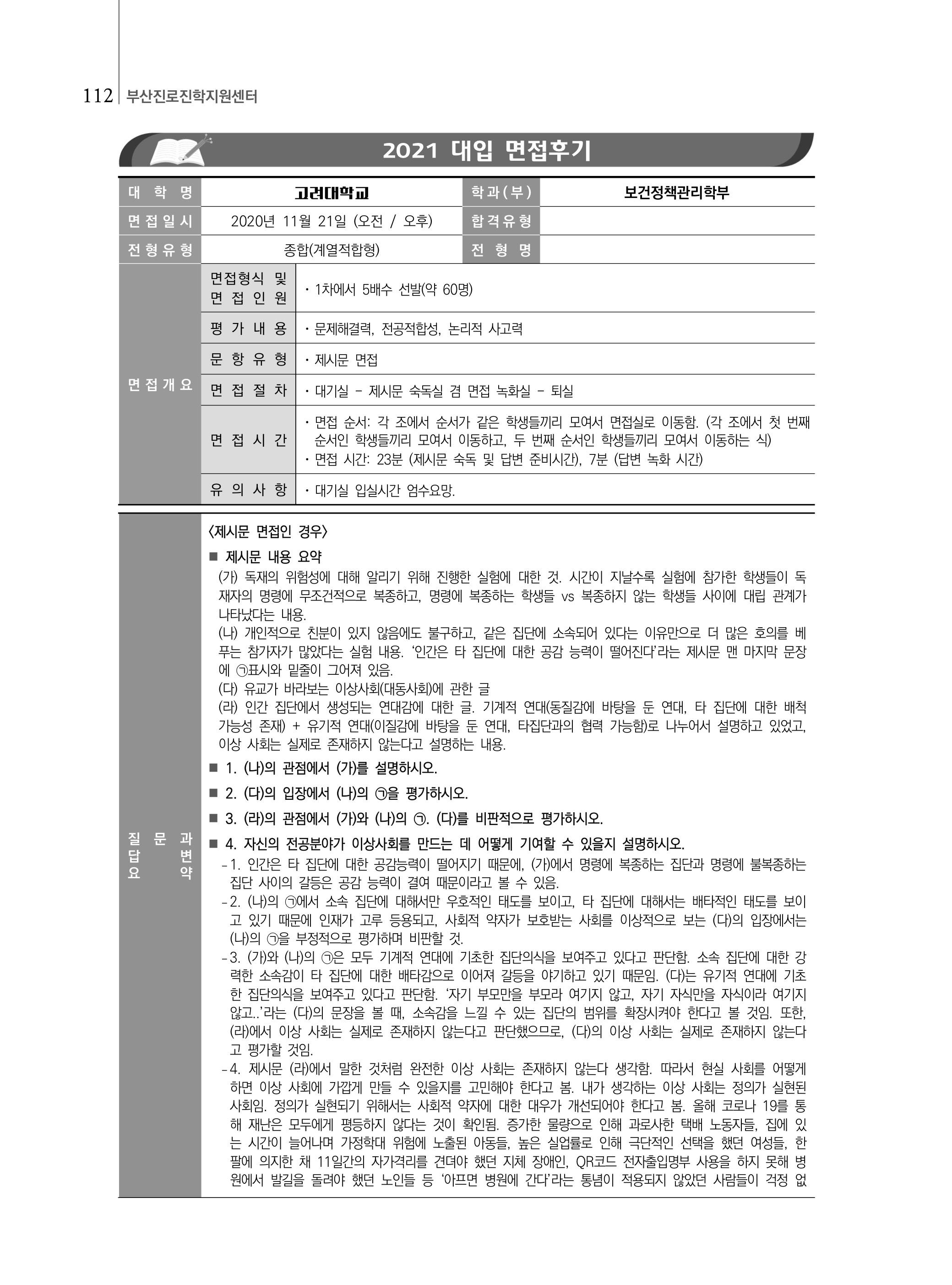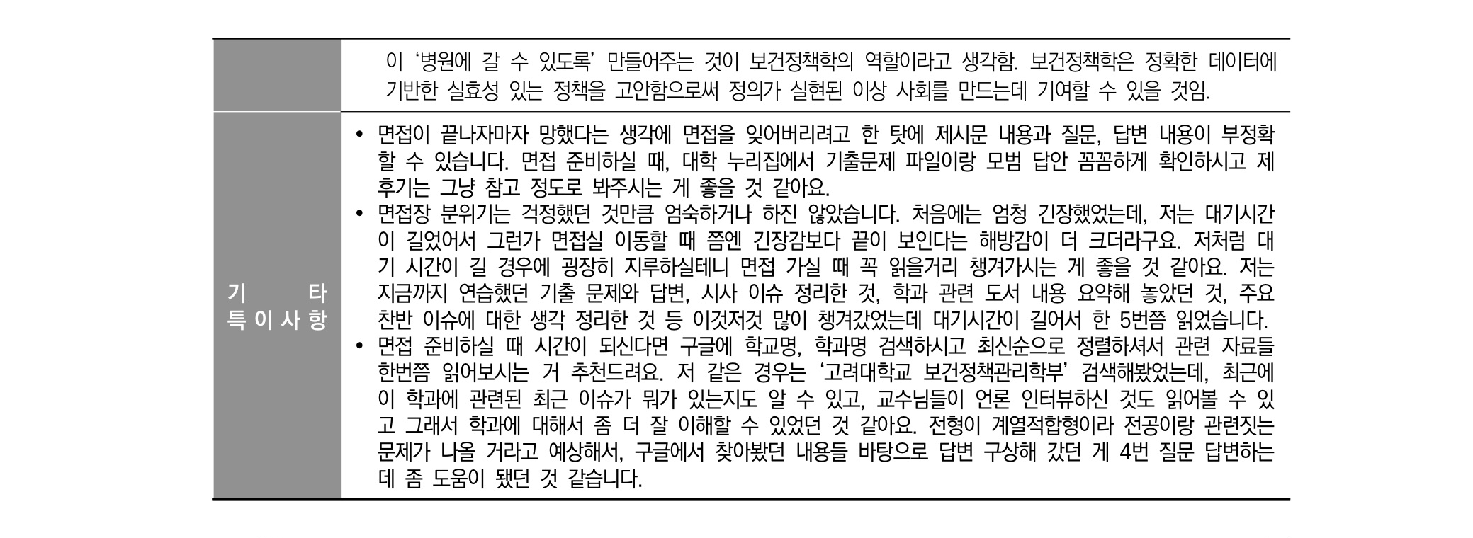 2021학년도 고려대학교 면접 후기31 - 보건정책관리학부