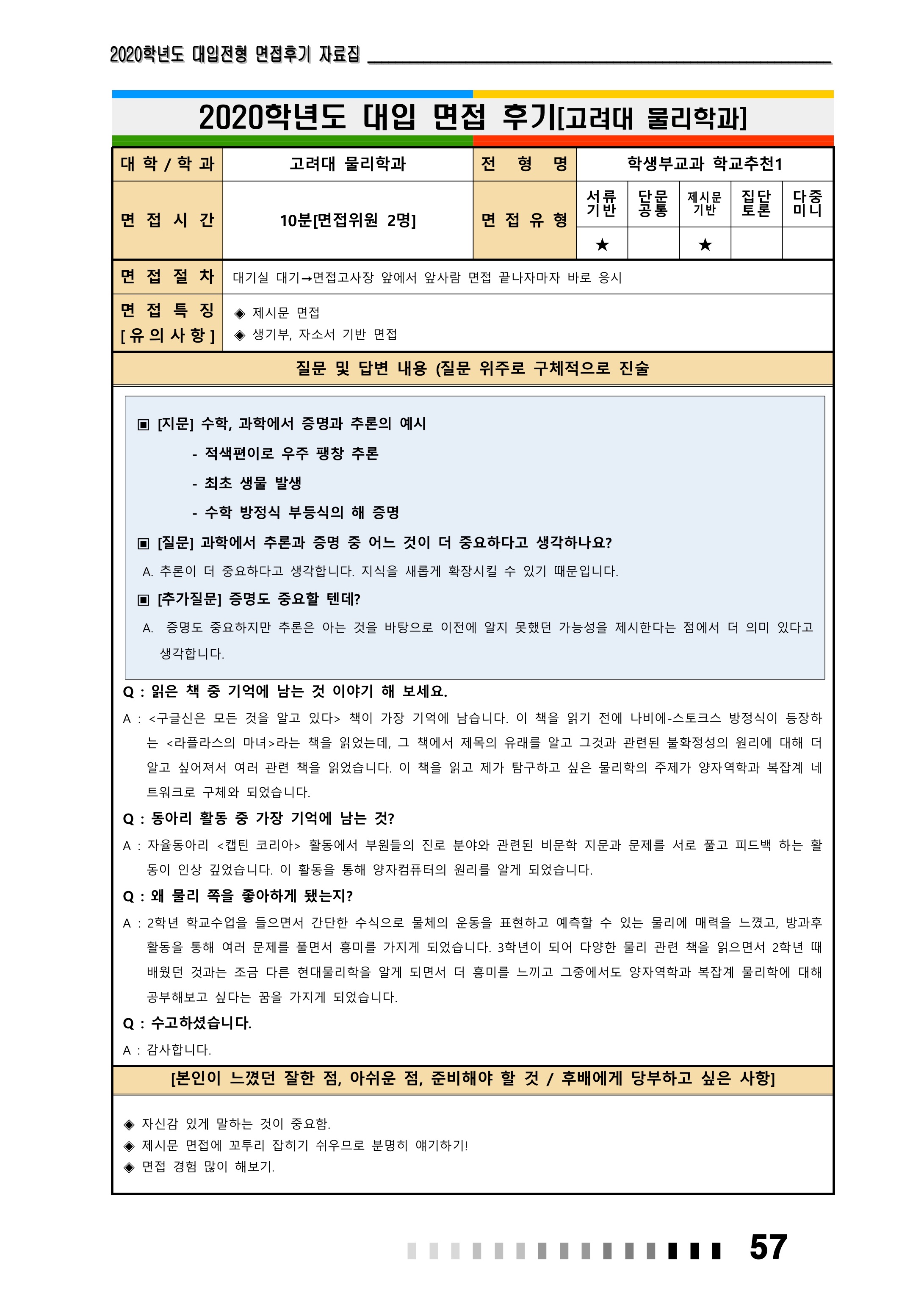 2021학년도 고려대학교 면접 후기21 - 독어독문학과 2021학년도 고려대학교 면접 후기22 - 물리학과