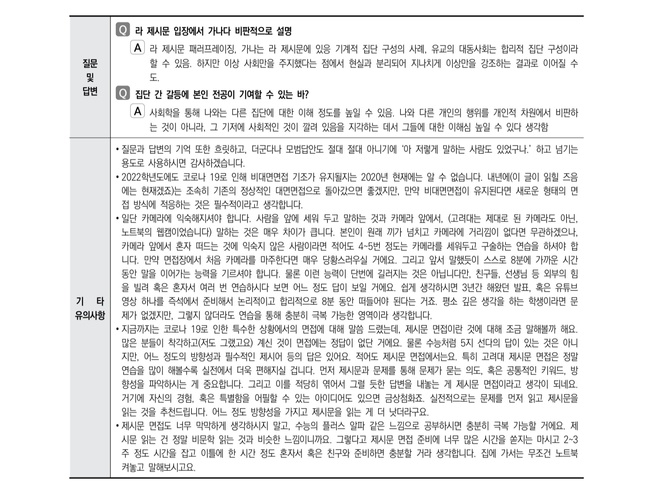 2021학년도 고려대학교 면접 후기35 - 사학과 2021학년도 고려대학교 면접 후기36 - 사회학과