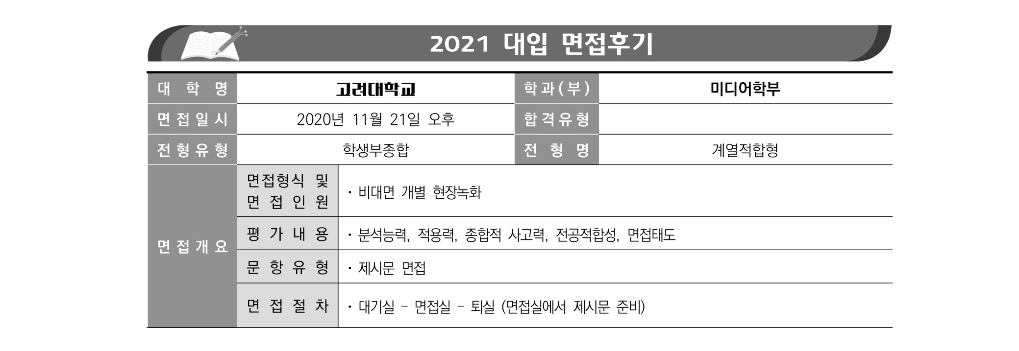 2021학년도 고려대학교 면접 후기26 - 미디어학부