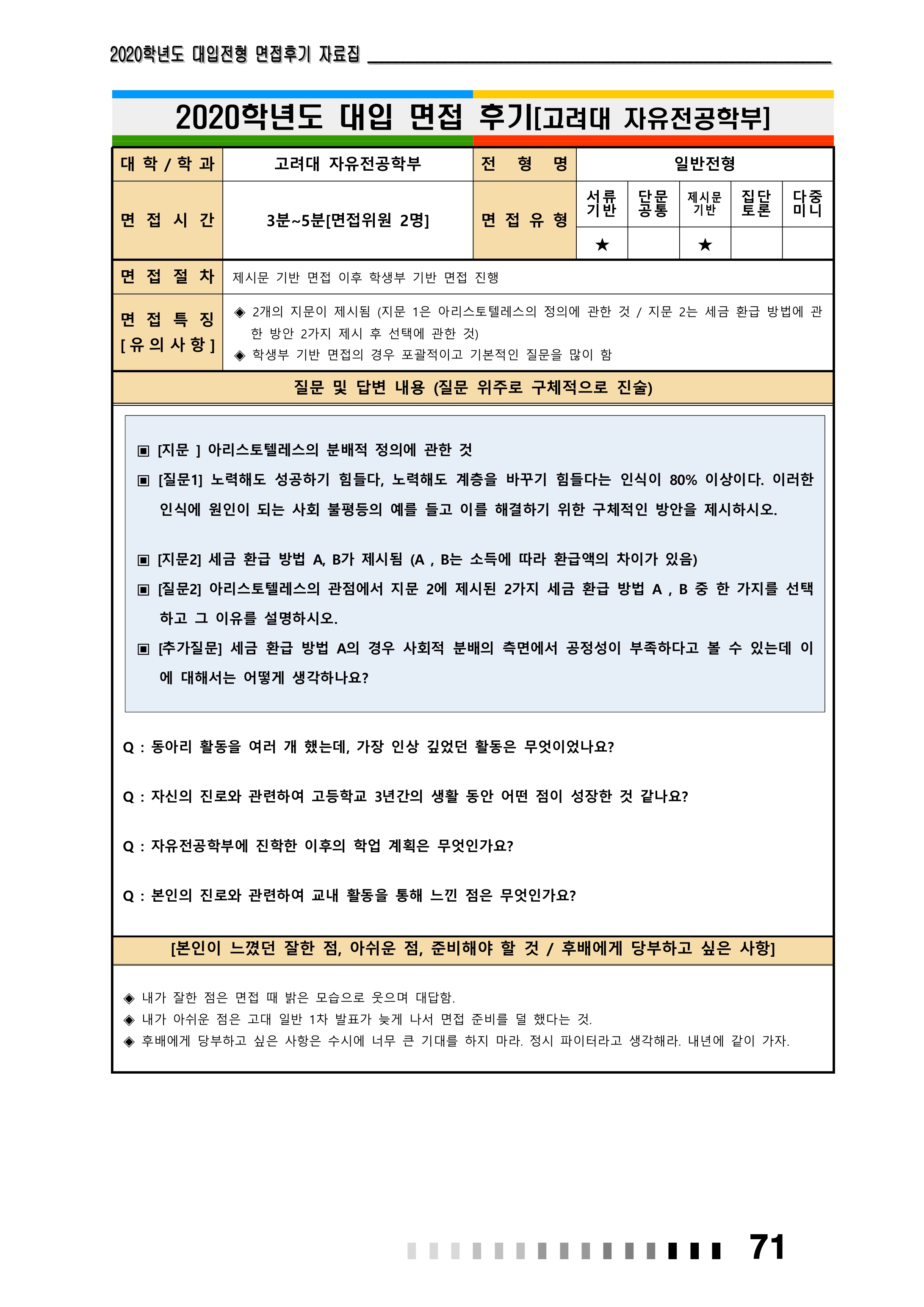 2021학년도 고려대학교 면접 후기55 - 자유전공학부 2021학년도 고려대학교 면접 후기56 - 자유전공학부