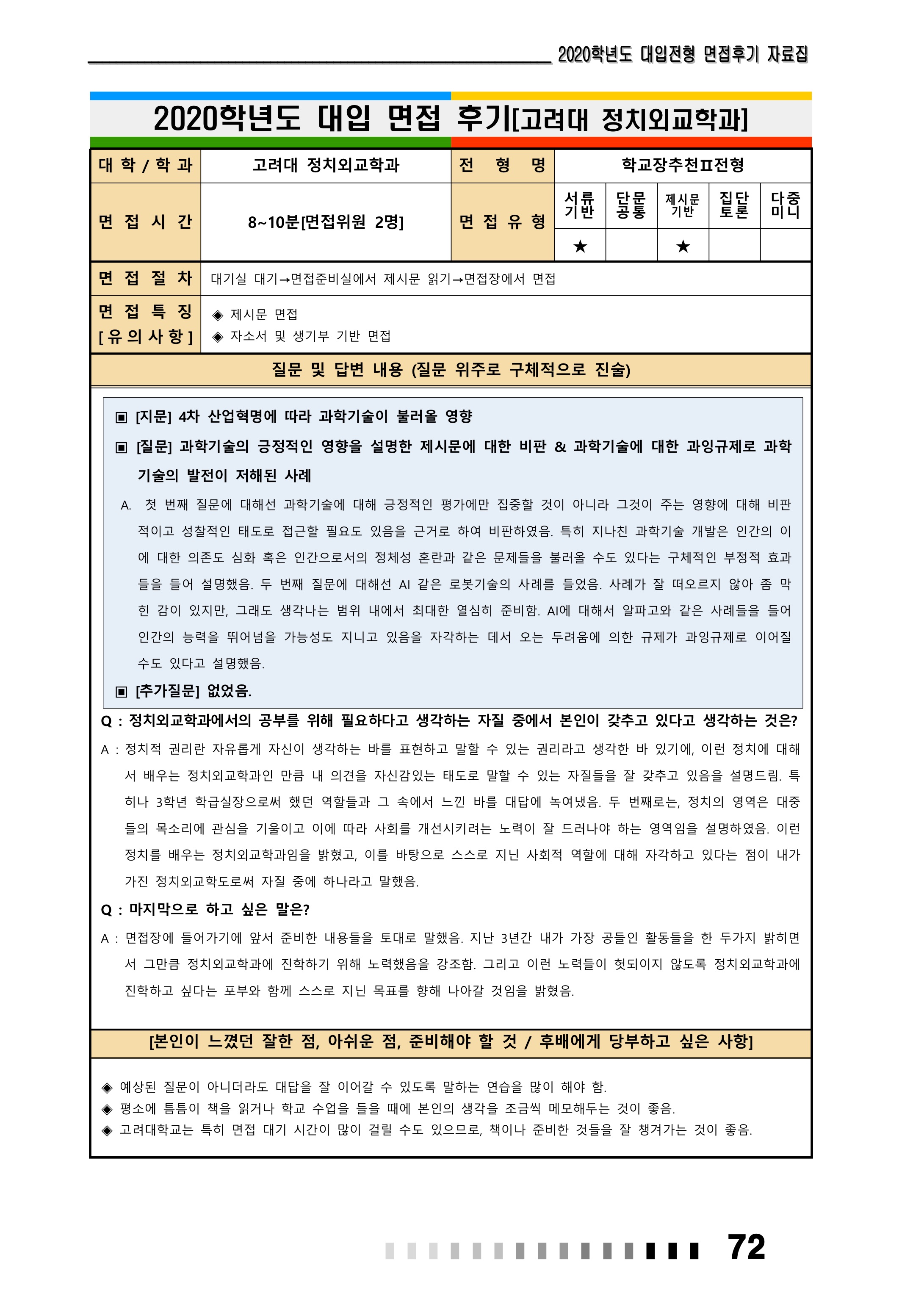2021학년도 고려대학교 면접 후기62 - 정치외교학과