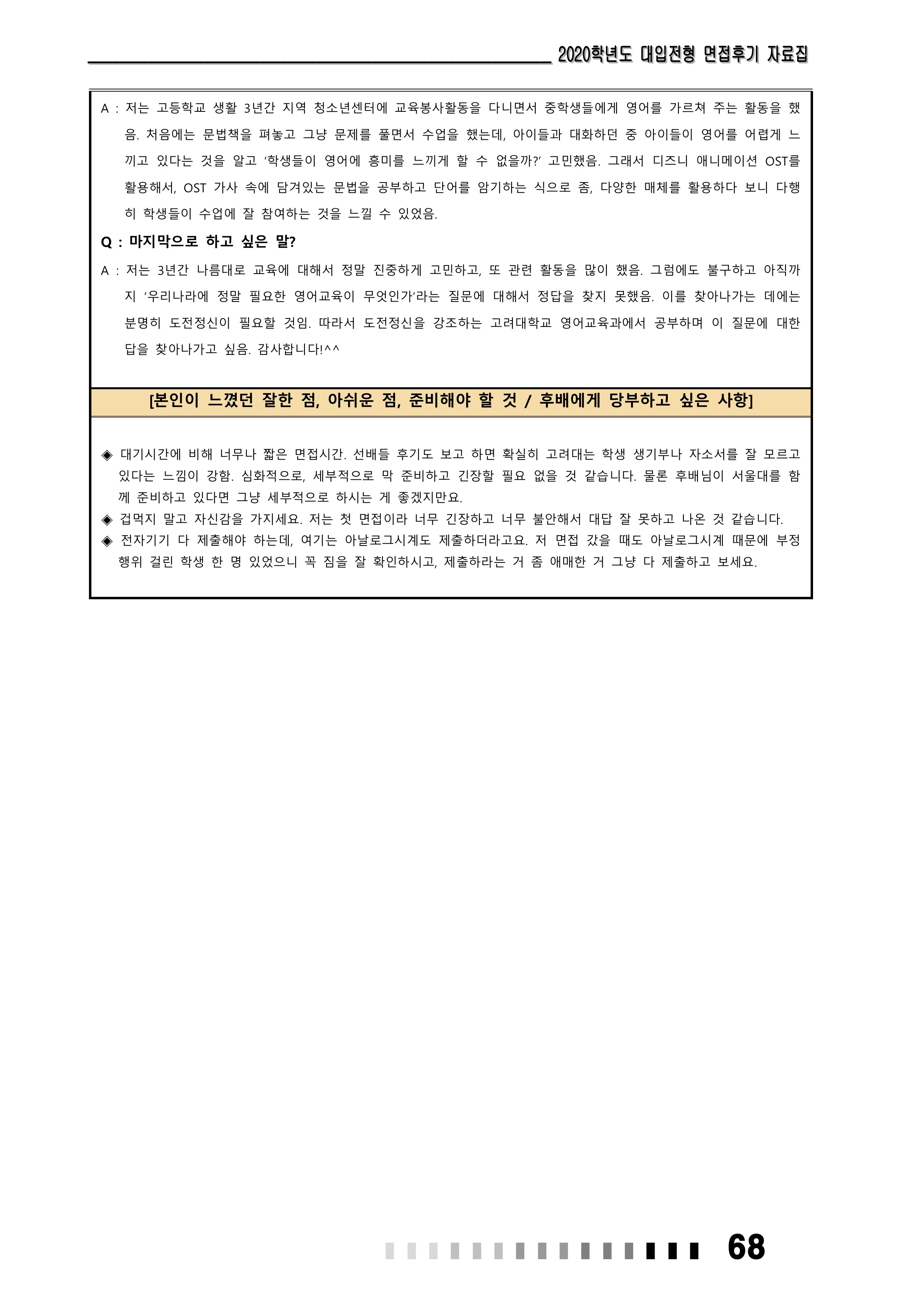 2021학년도 고려대학교 면접 후기51 - 영어교육과 2021학년도 고려대학교 면접 후기52 - 영어교육과