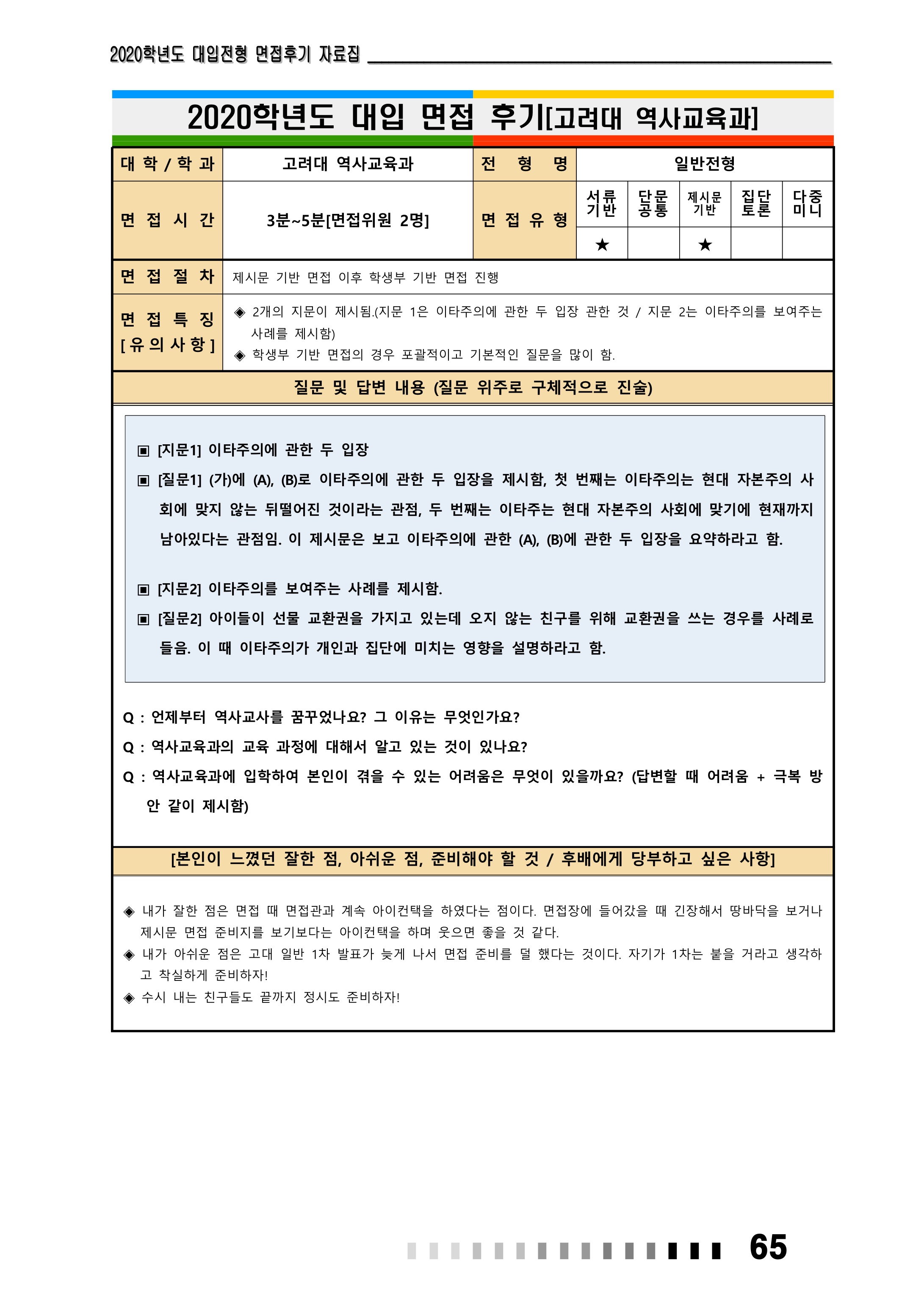 2021학년도 고려대학교 면접 후기35 - 사학과