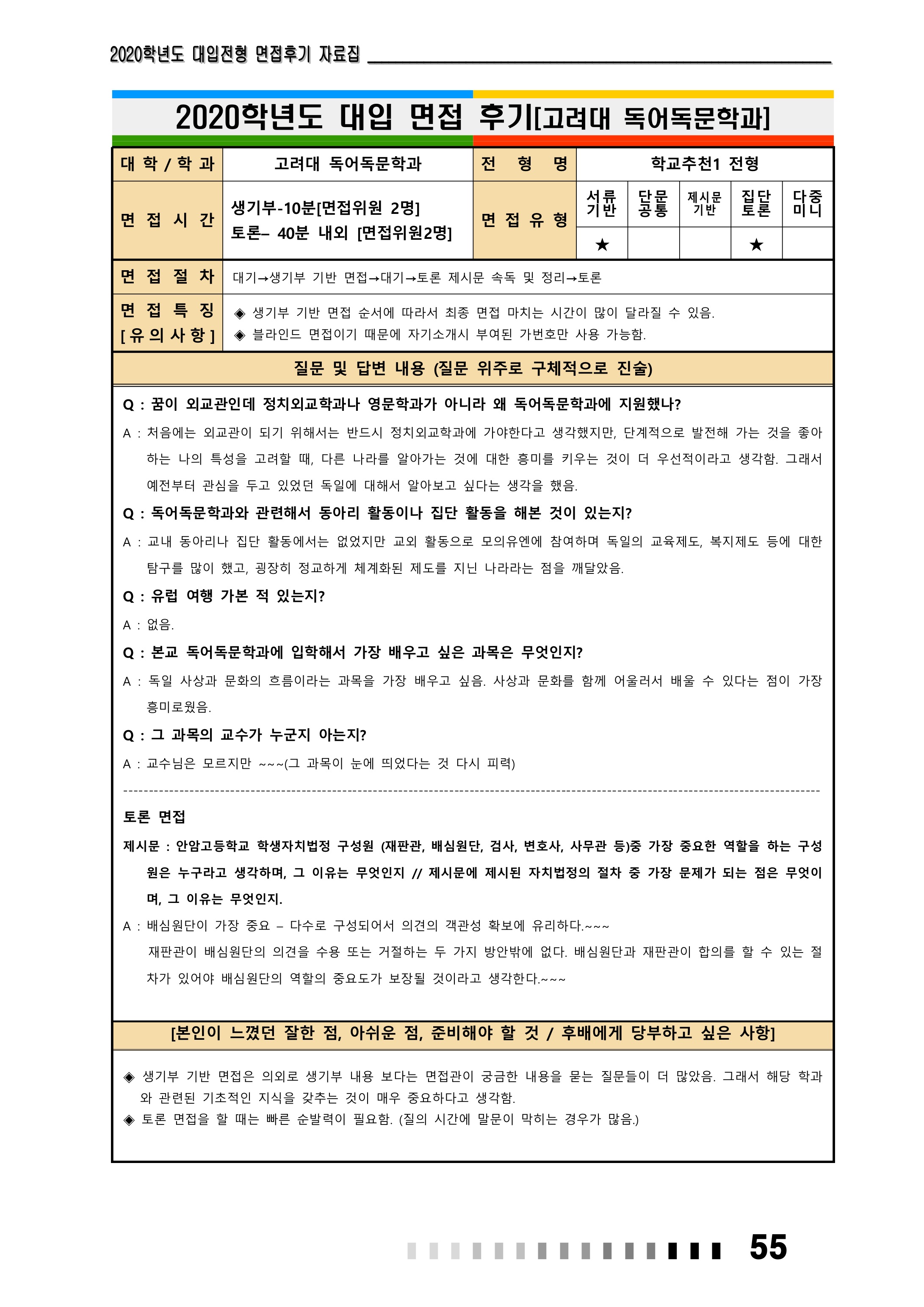 2021학년도 고려대학교 면접 후기20 - 노어노문학과 2021학년도 고려대학교 면접 후기21 - 독어독문학과