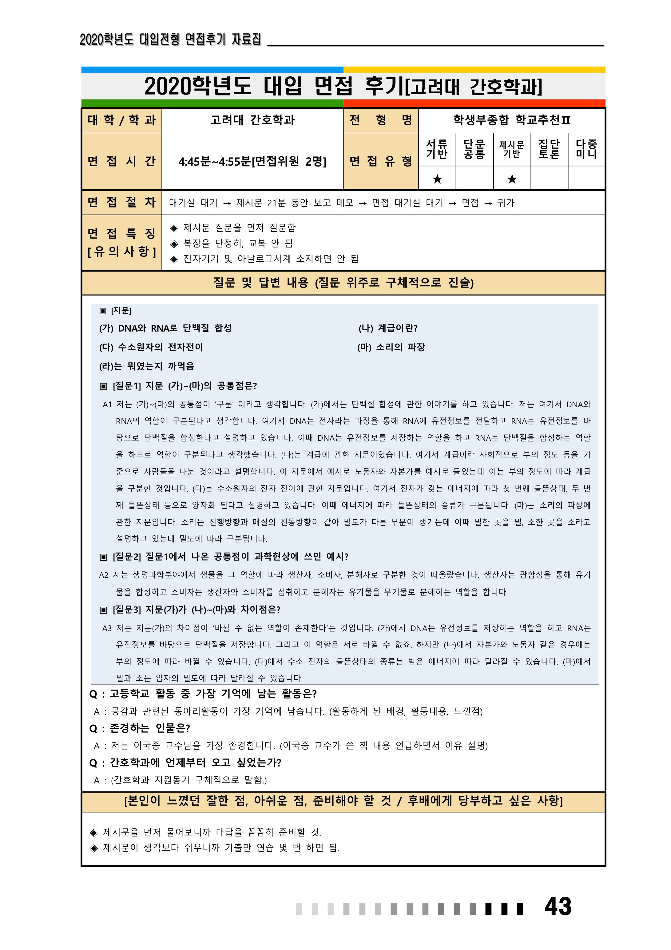 2021학년도 고려대학교 면접 후기1 - 간호대학 2021학년도 고려대학교 면접 후기2 - 간호대학