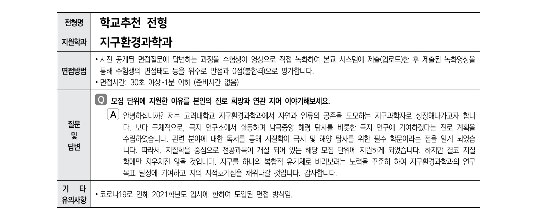 2021학년도 고려대학교 면접 후기63 - 정치외교학과 2021학년도 고려대학교 면접 후기64 - 지구환경과학과