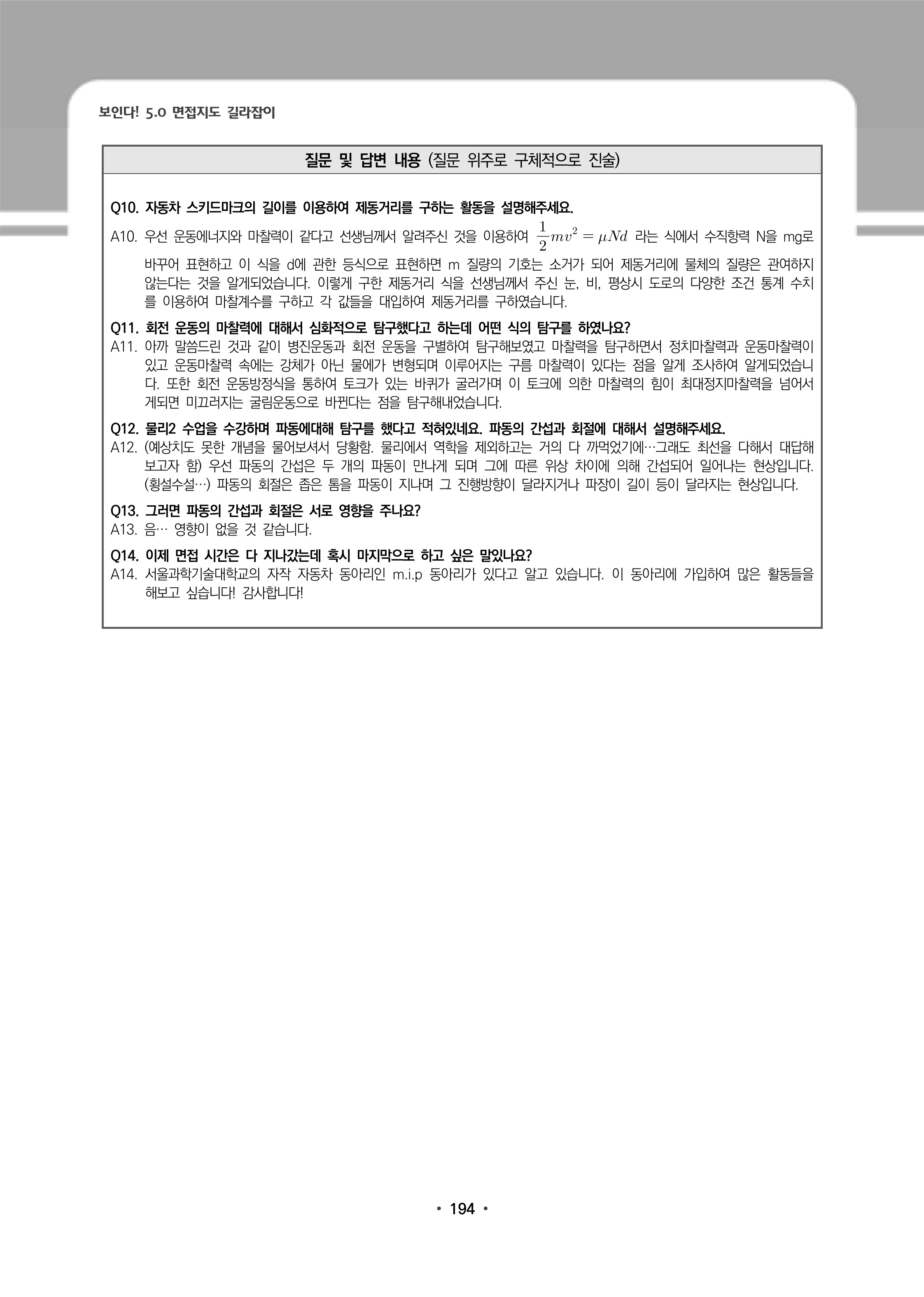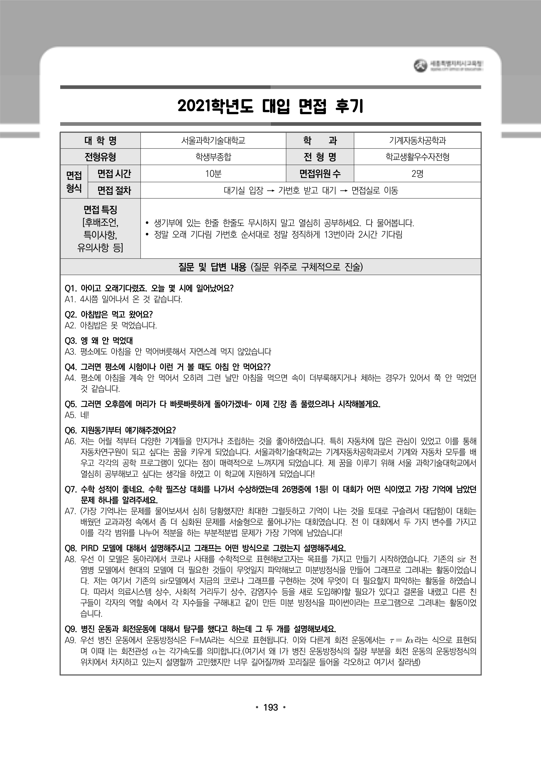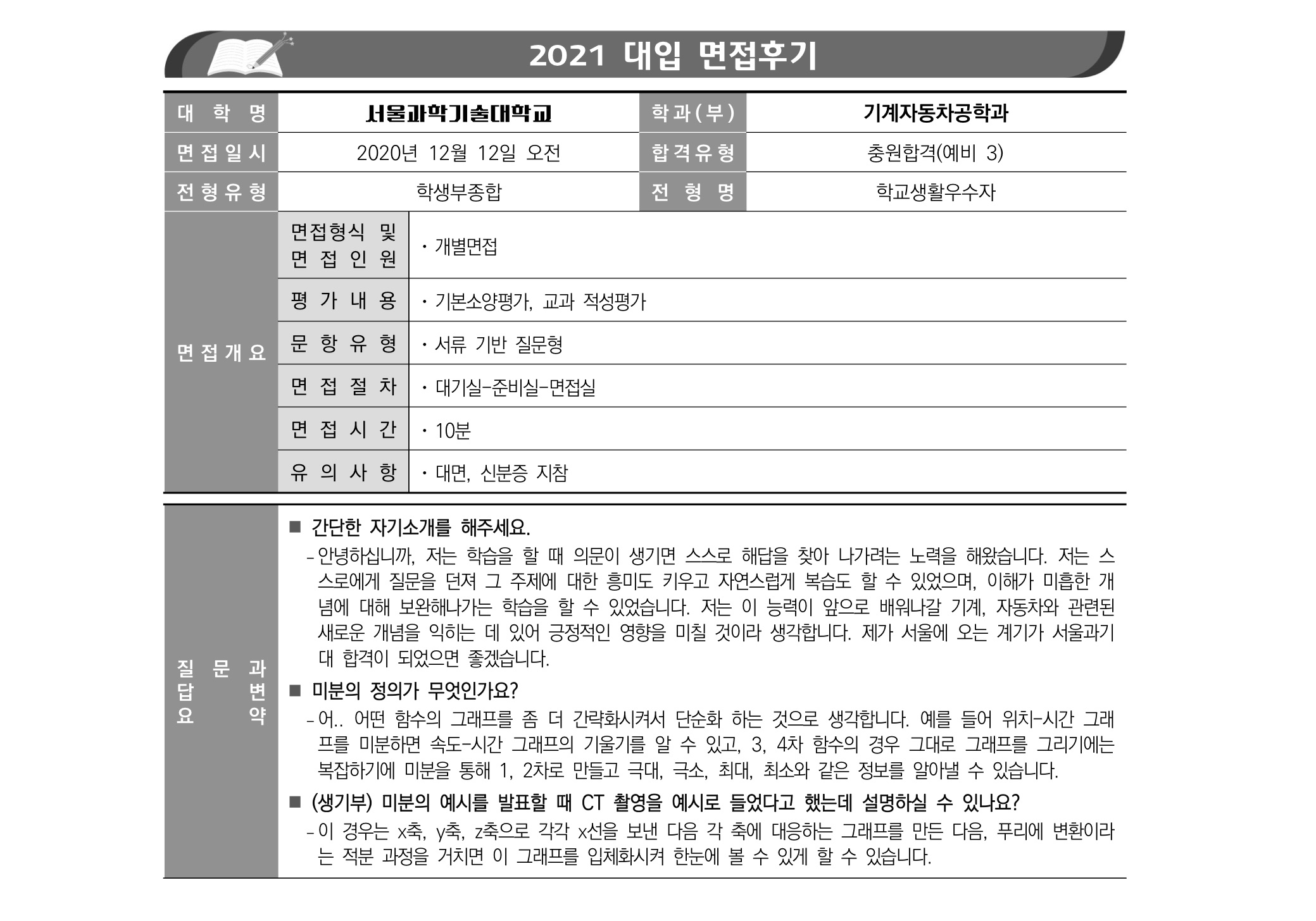 2021학년도 서울과학기술대학교 면접 후기4 - 기계자동차공학과