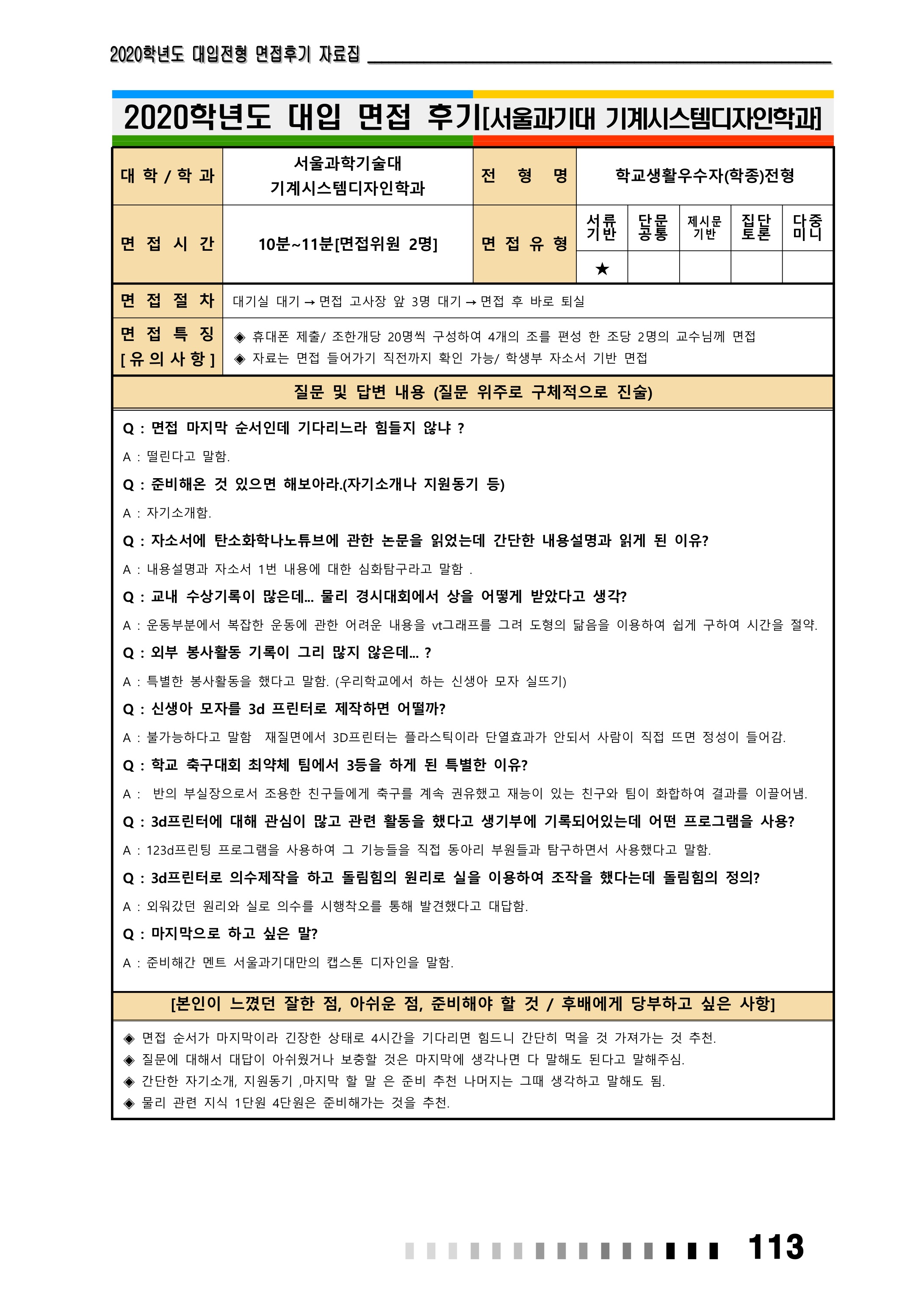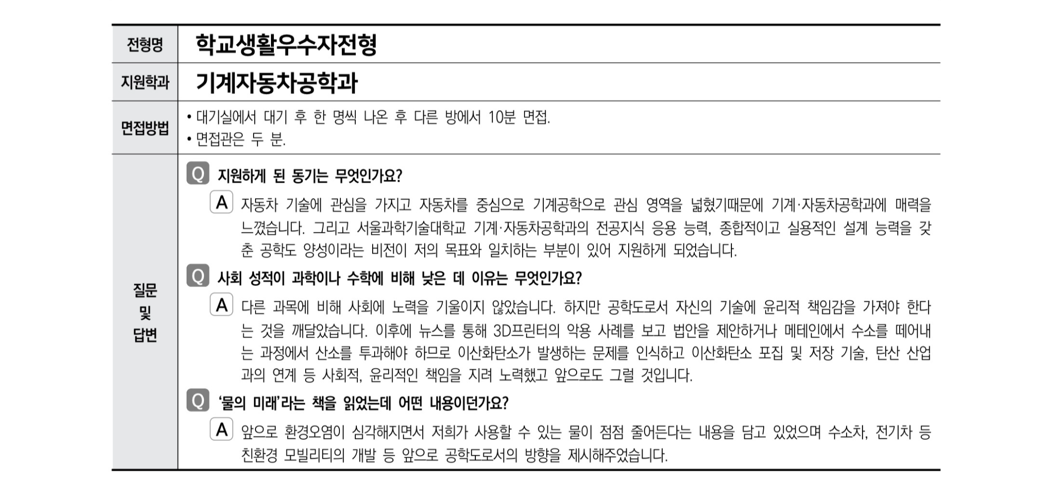 - 그런 사례가 있나요?2021학년도 서울과학기술대학교 면접 후기1 - 기계시스템디자인학과