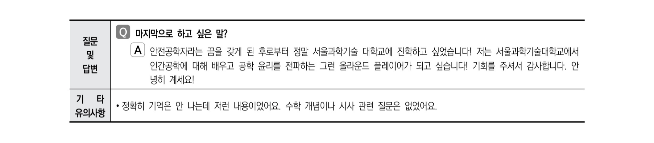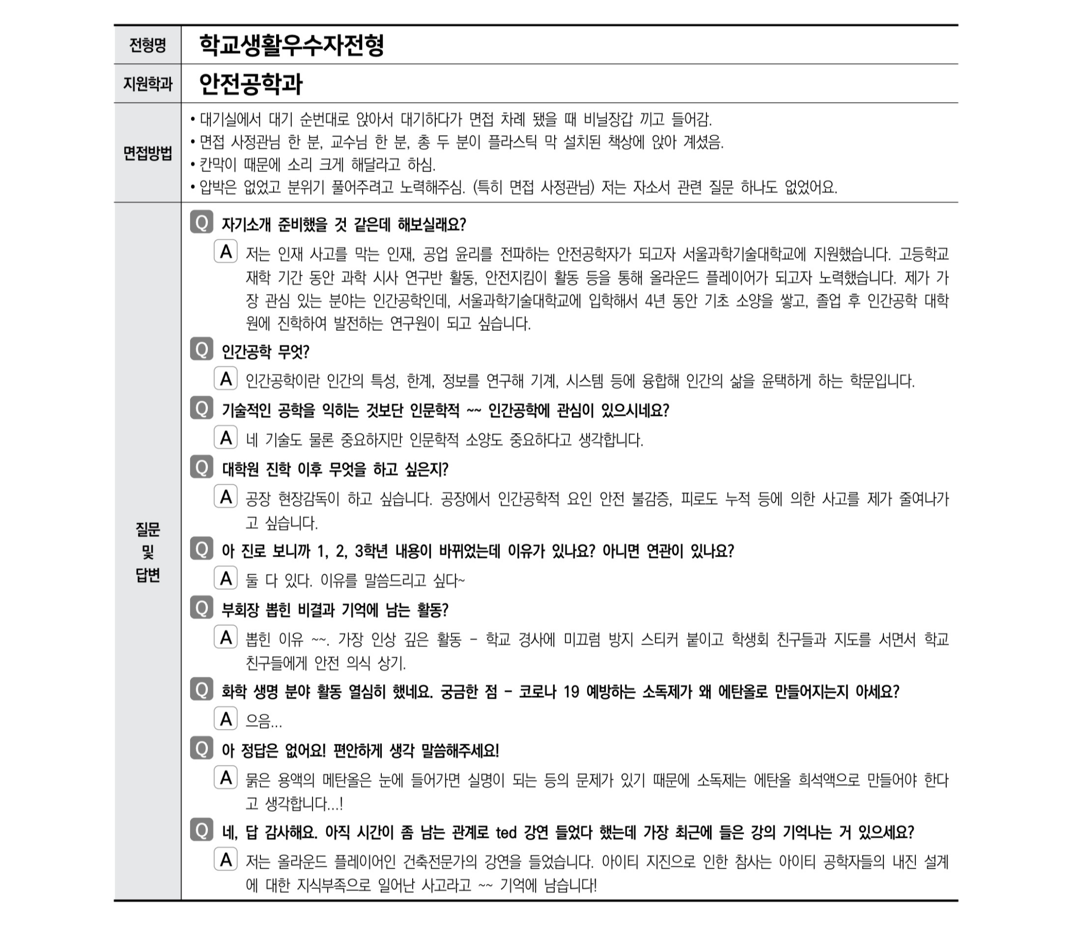 2021학년도 서울과학기술대학교 면접 후기9 - 안전공학과