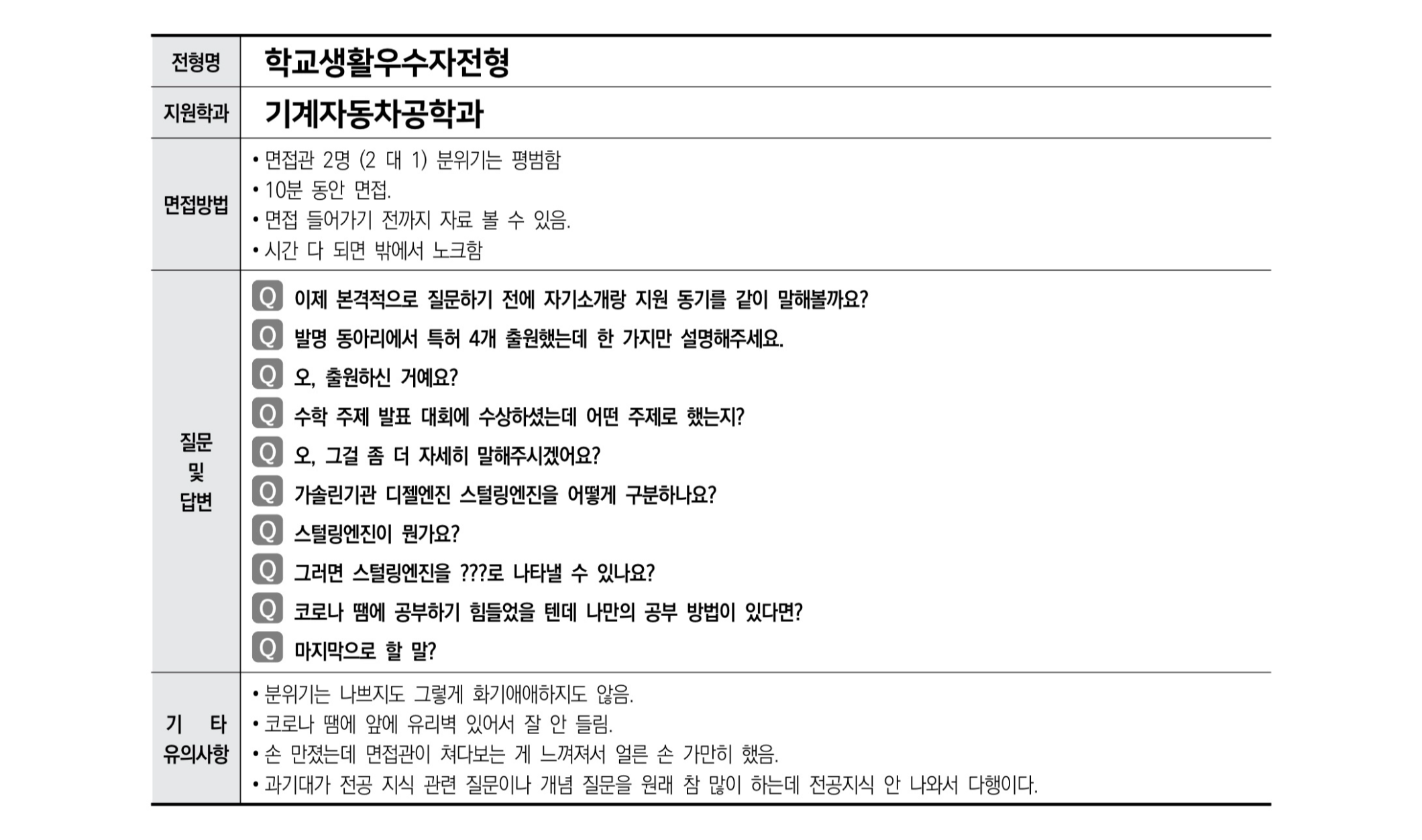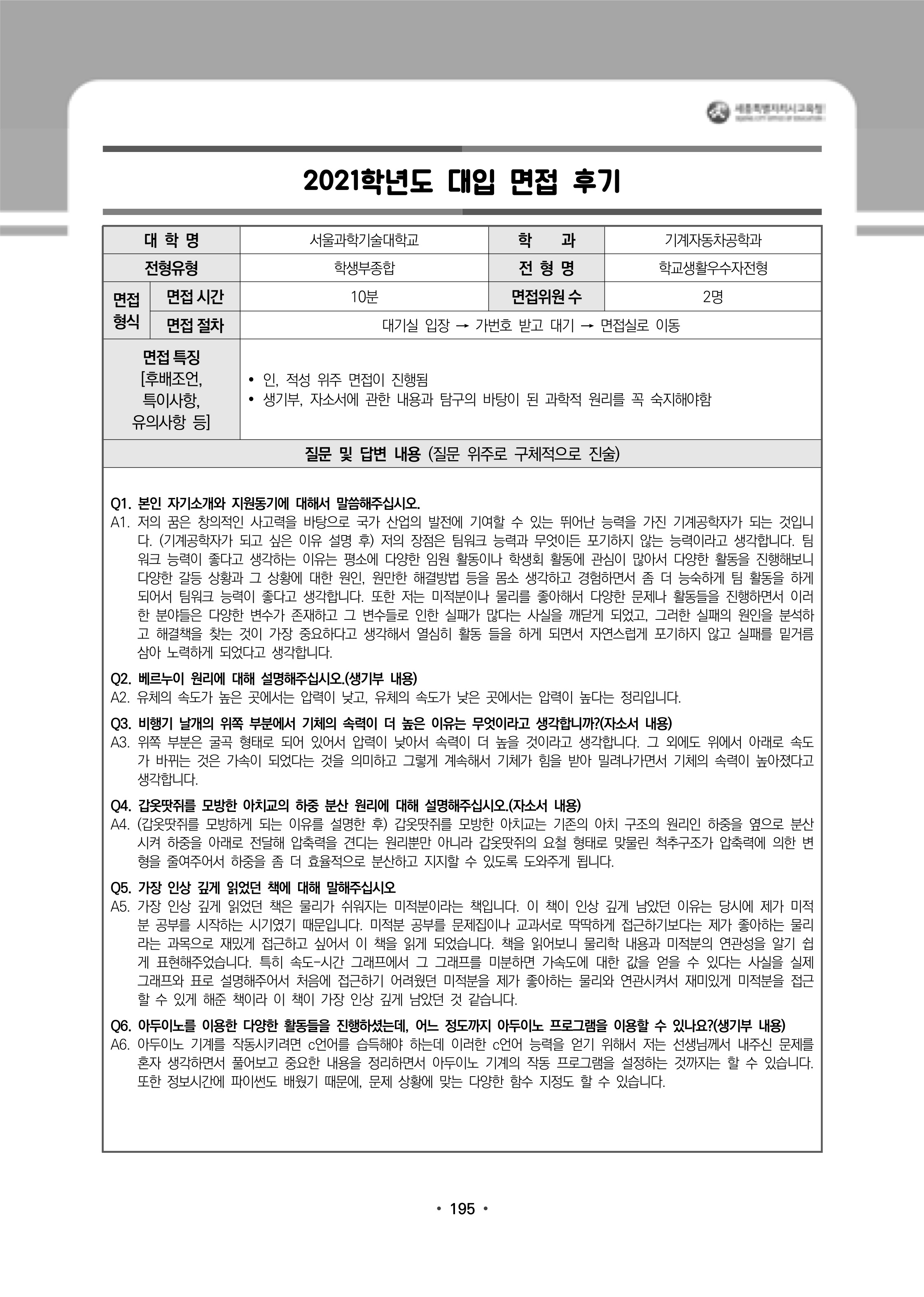 2021학년도 서울과학기술대학교 면접 후기4 - 기계자동차공학과 2021학년도 서울과학기술대학교 면접 후기5 - 기계자동차공학과