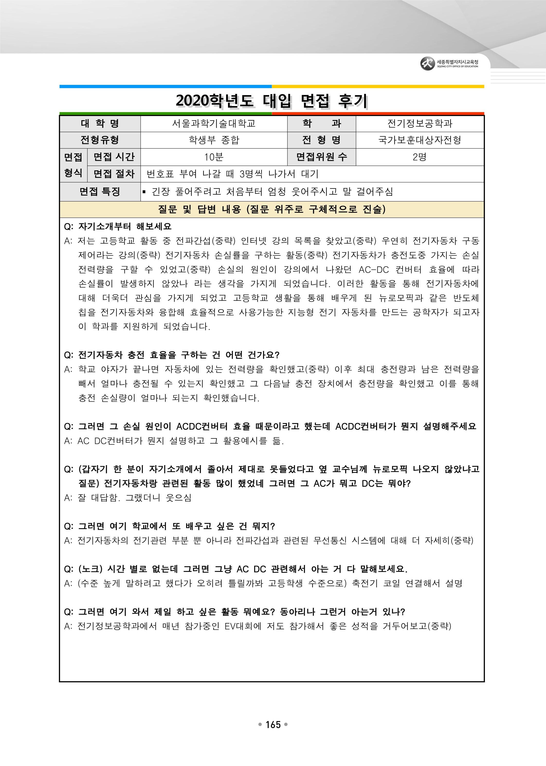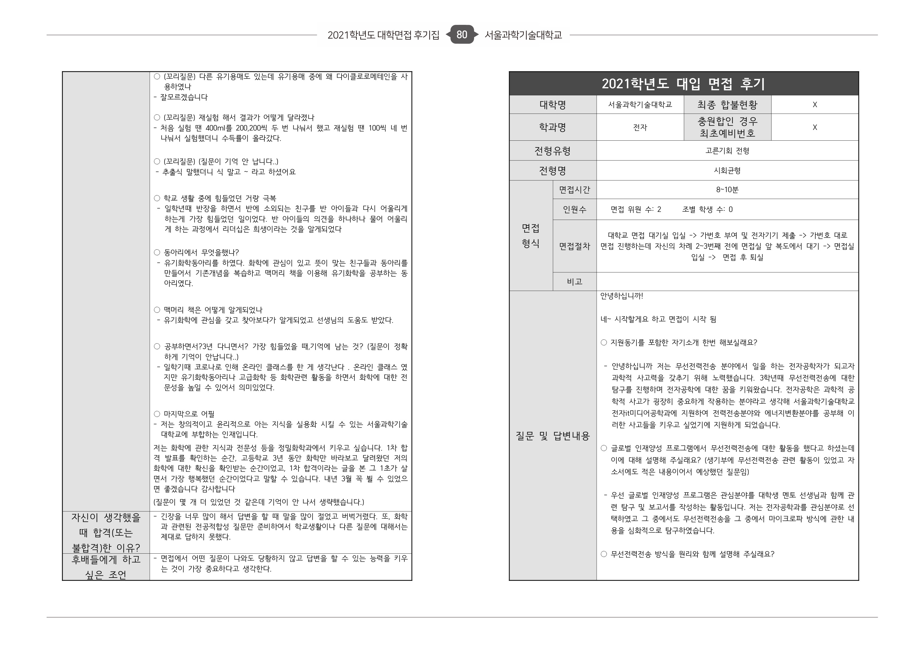 2021학년도 서울과학기술대학교 면접 후기10 - 전기정보공학과 2021학년도 서울과학기술대학교 면접 후기11 - 전자IT미디어공학과