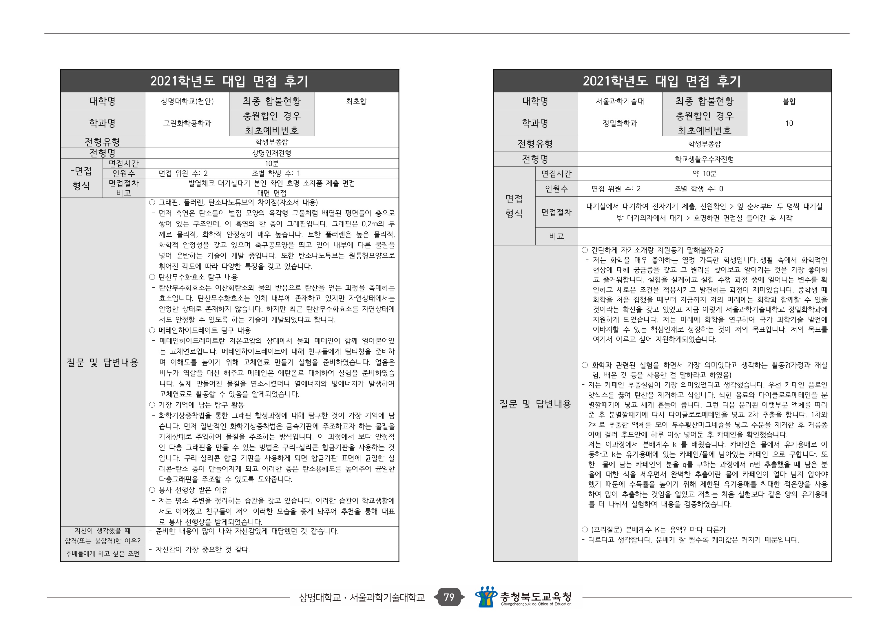 2021학년도 서울과학기술대학교 면접 후기12 - 정밀화학과