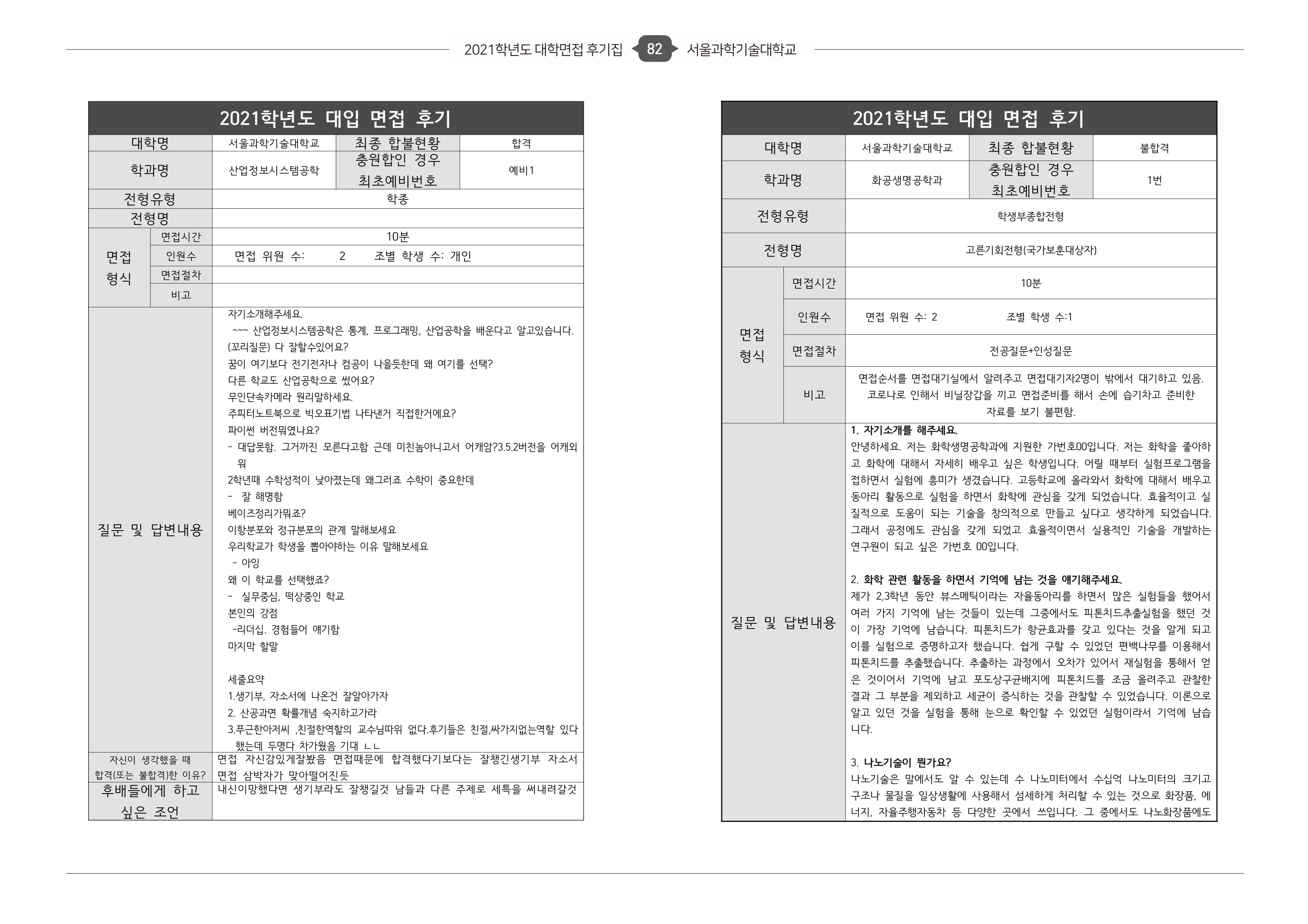 2021학년도 서울과학기술대학교 면접 후기14 - 화공생명공학과