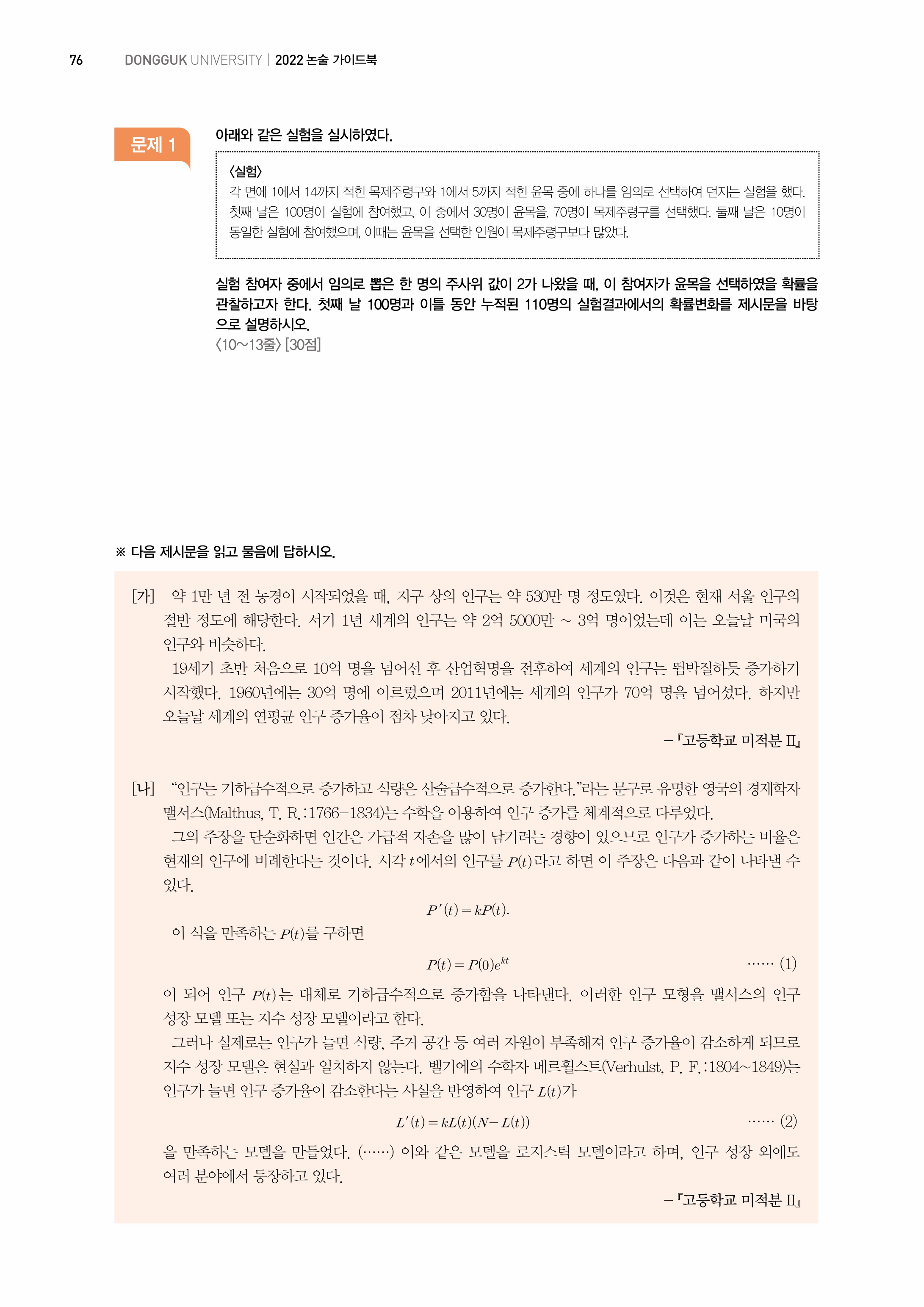 2021학년도 동국대학교 논술고사 자연계열 기출문제