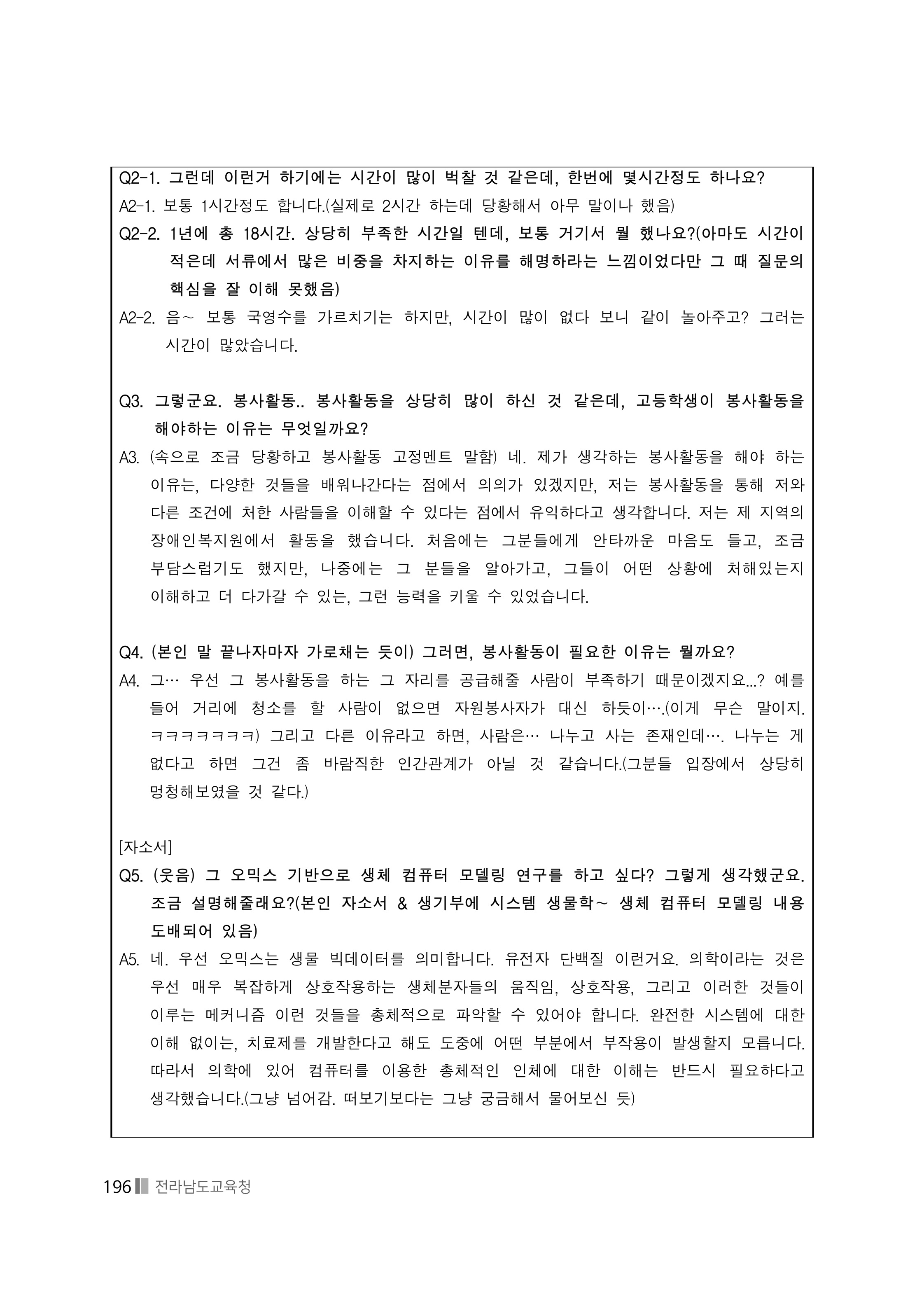 - 봉사활동이 시간 낭비라고 생각되지는 않았나요?