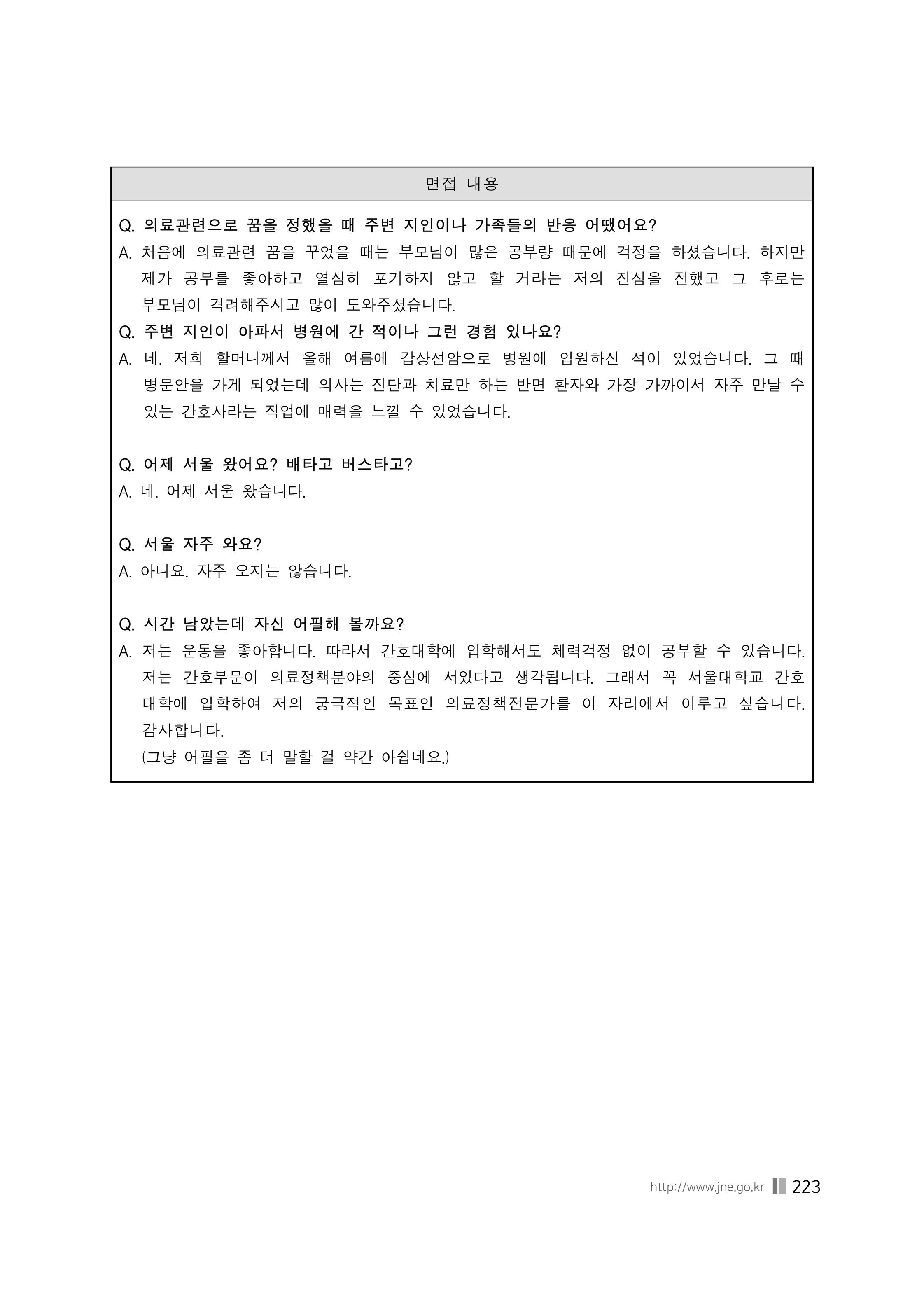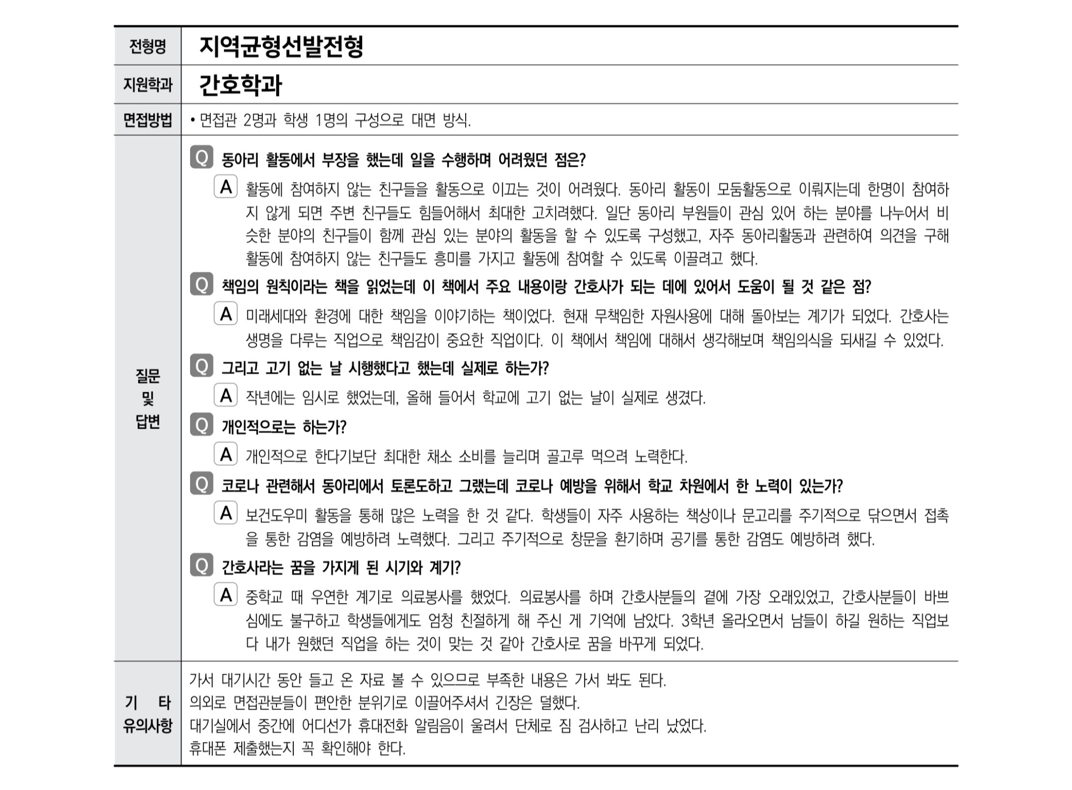 서울대학교 간호대학2021학년도 수시 면접 기출 사례