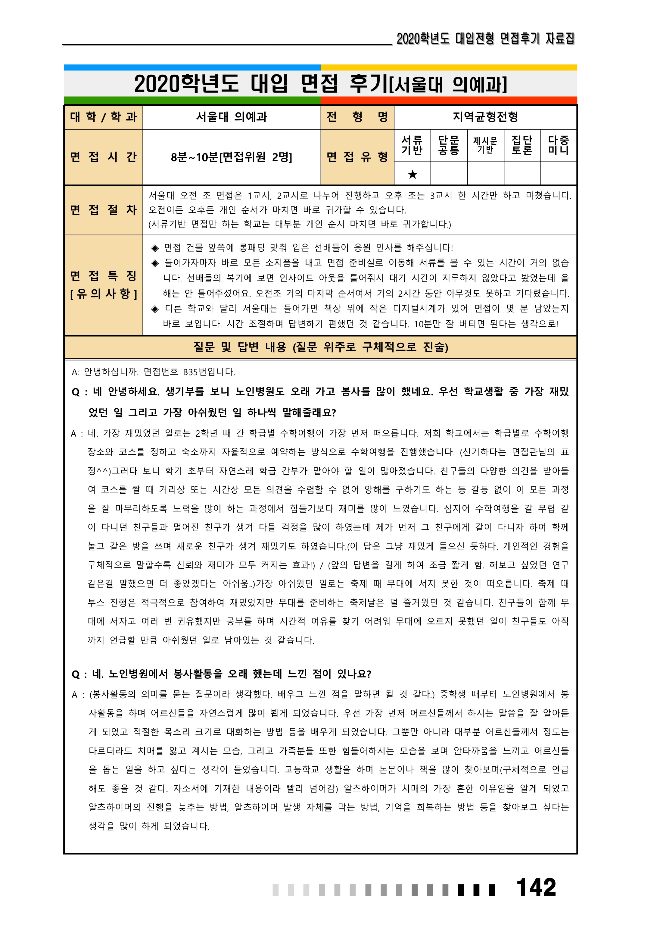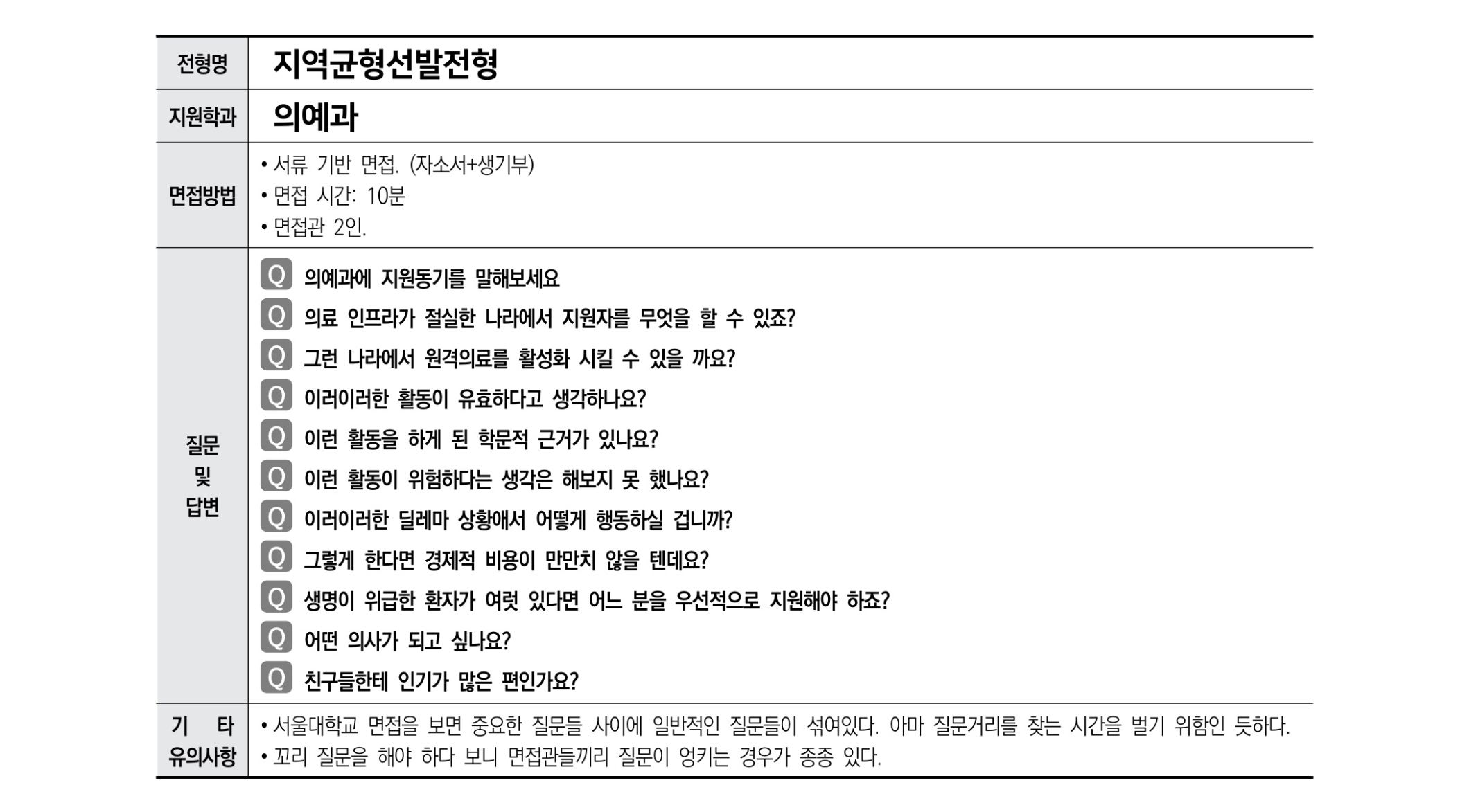 2021학년도 서울대학교 면접 질문5 (의과대학, 수의과대학, 간호대학) 횐님들 안녕하세영! 벌써 2021학년도 서울대학교 수시 전형에 출제된 면접 질문을 확인하는 다섯 번째 시간이 되었어영. 서울대학교 수시 일반전형에서 구술고사 기출과 분석이 필요하신 횐님들은 맨 아래 링크를 참고하시고영, 이 글에서는 2021학년도 서울대 수시 지역균형선발전형과 기회균형선발전형에서 학교생활기록부와 자기소개서를 토대로 출제된 면접 질문에 대해 알아볼 거예영. 서울대학교 의과대학, 수의과대학, 간호대학 수시 지원자들의 후기를 확인합시다.🍦