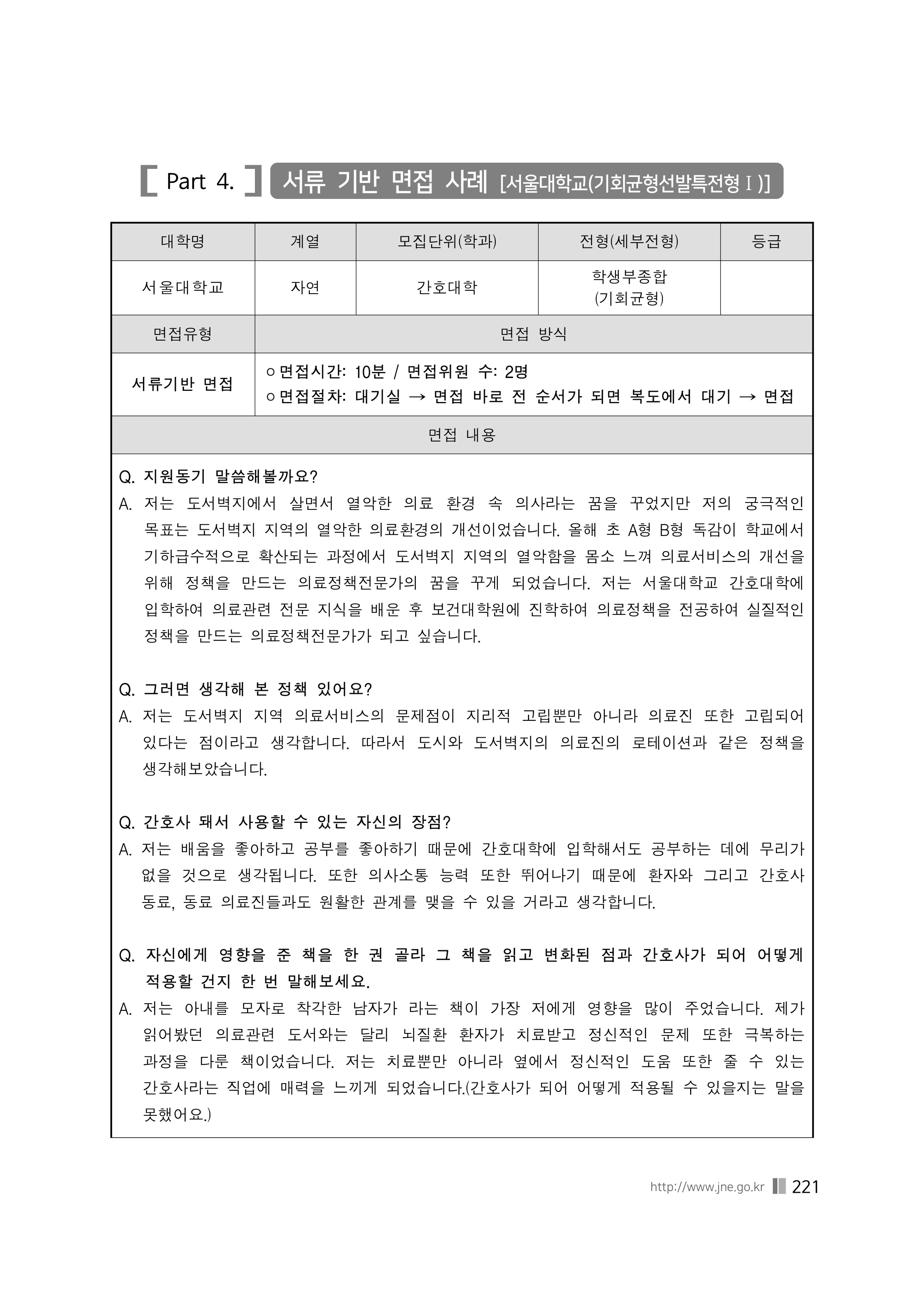 2021학년도 서울대학교 간호대학 면접 후기1 - 간호학과