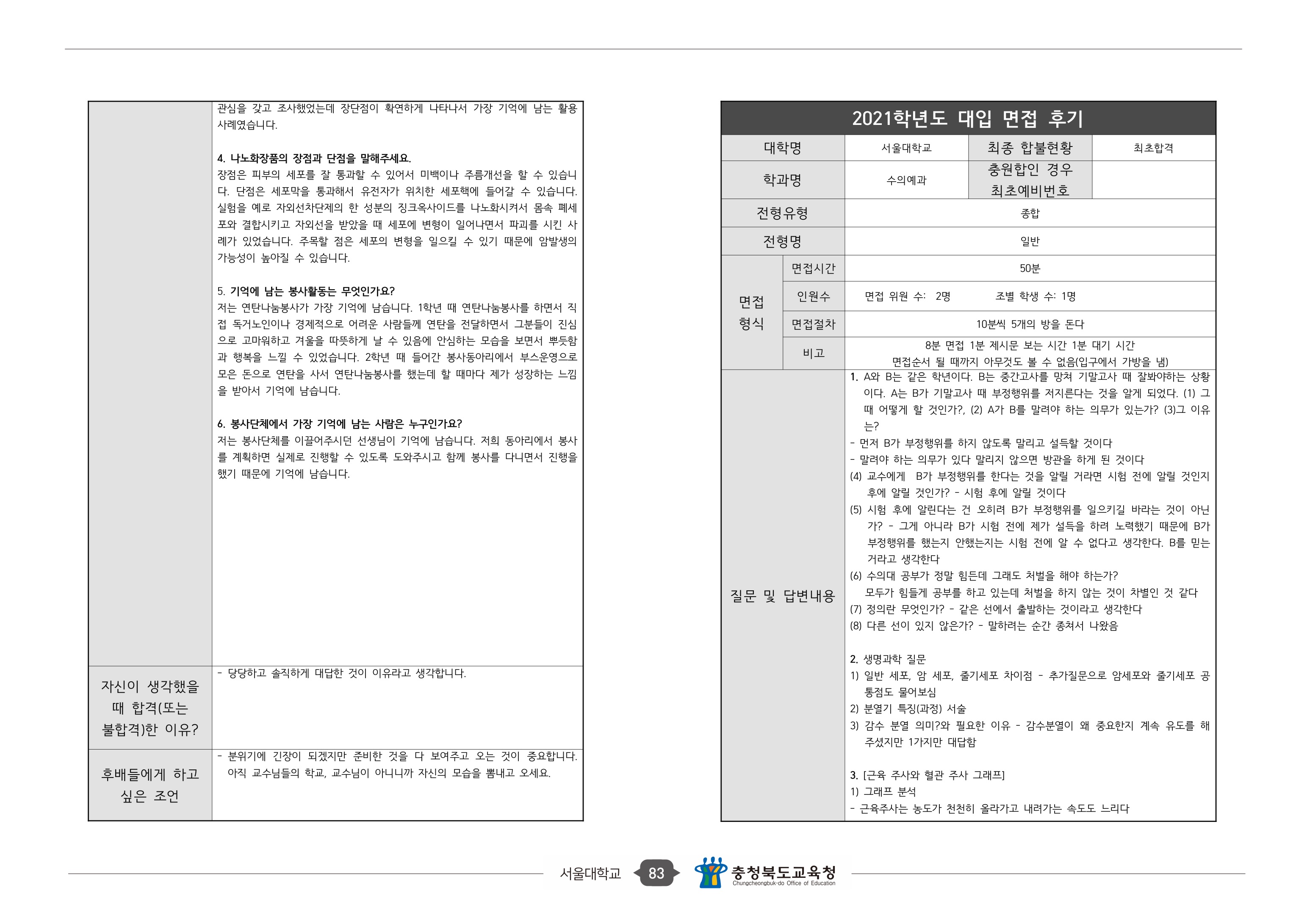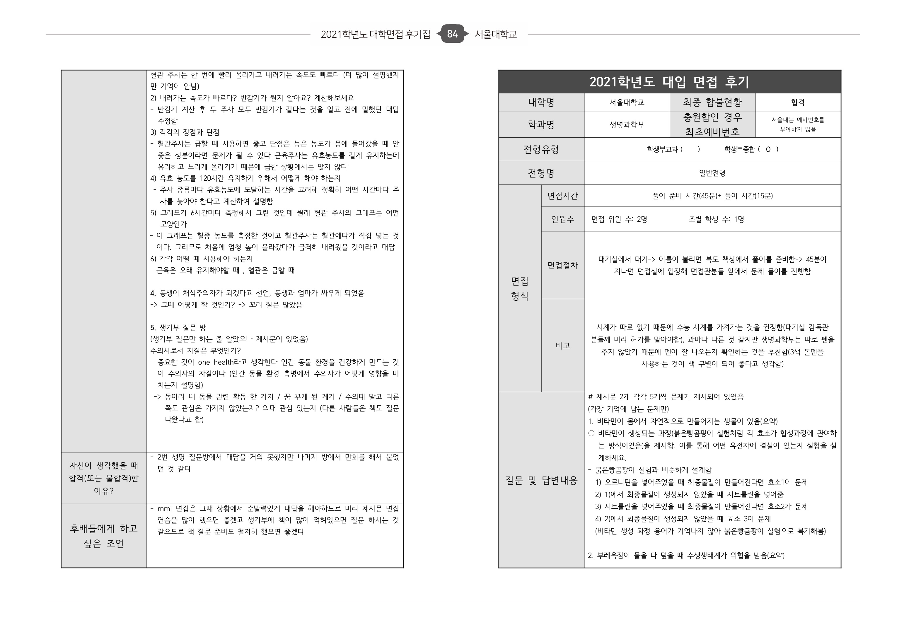 2021학년도 서울대학교 의과대학 면접 후기6 - 의예과 2021학년도 서울대학교 수의과대학 면접 후기 - 수의예과