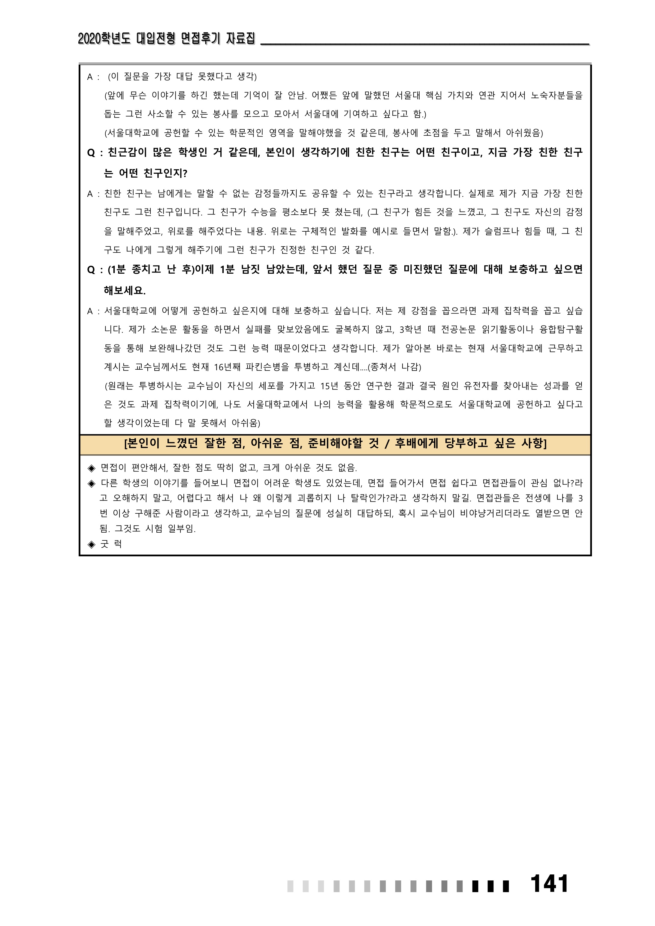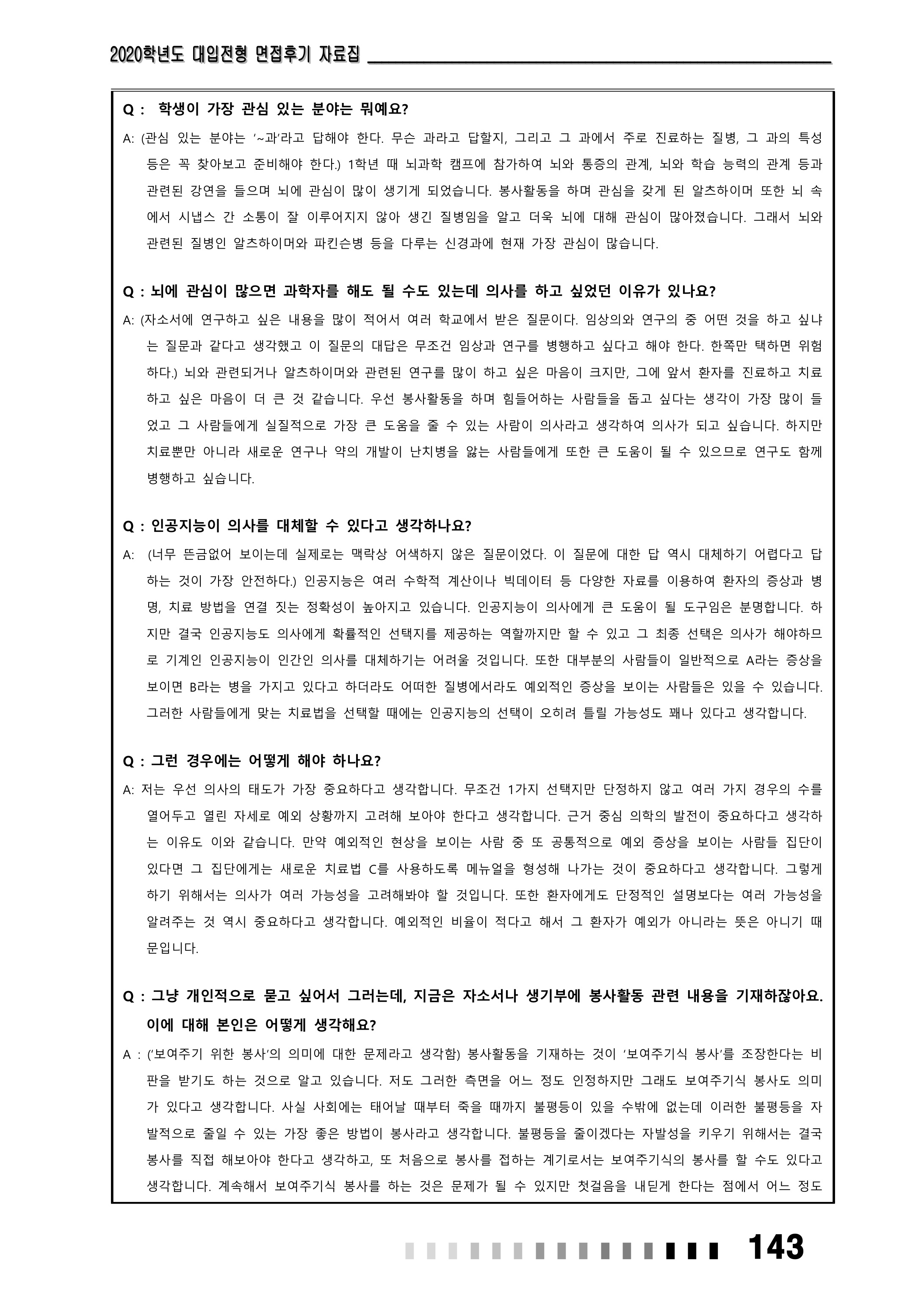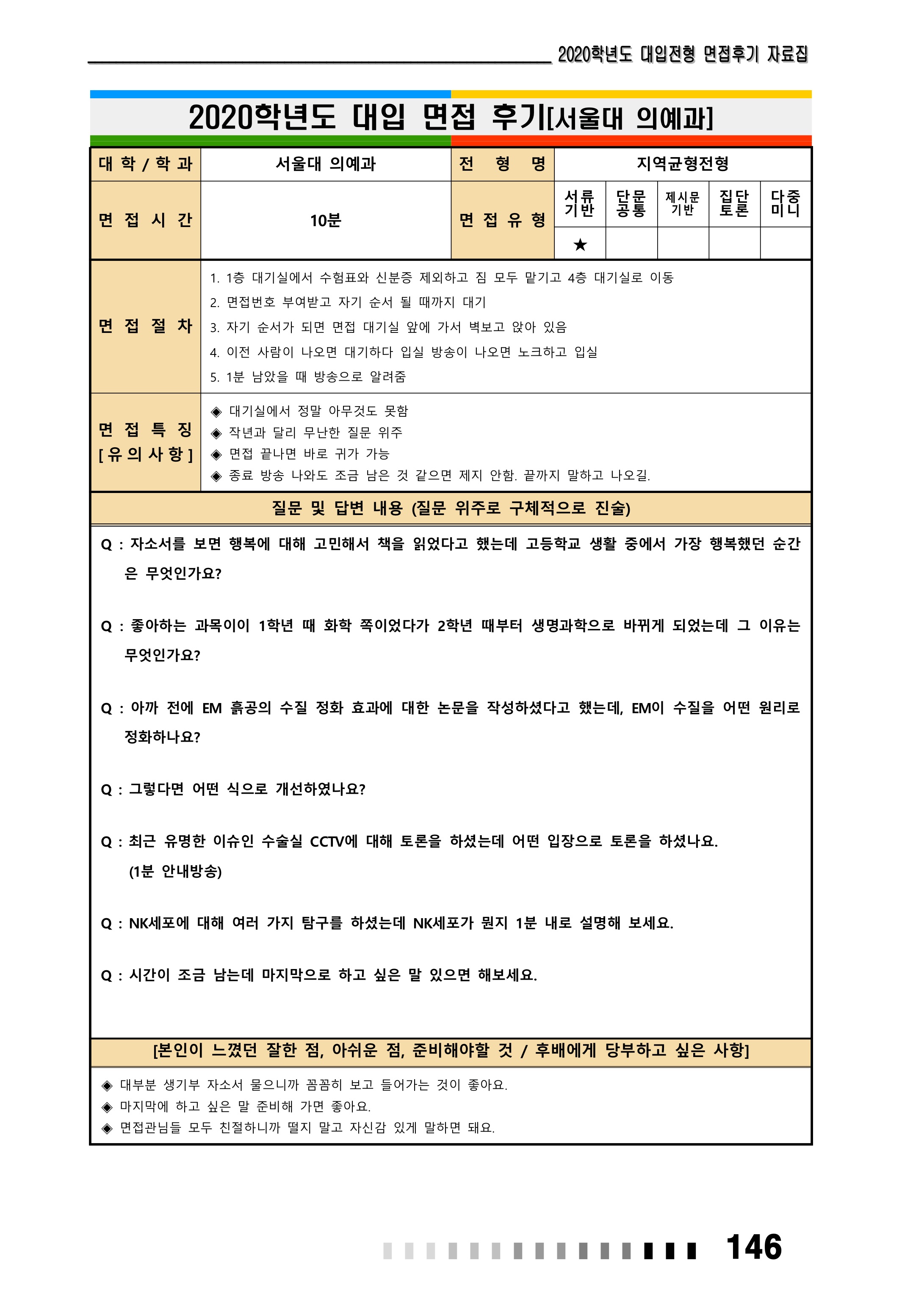 2021학년도 서울대학교 의과대학 면접 후기3 - 의예과