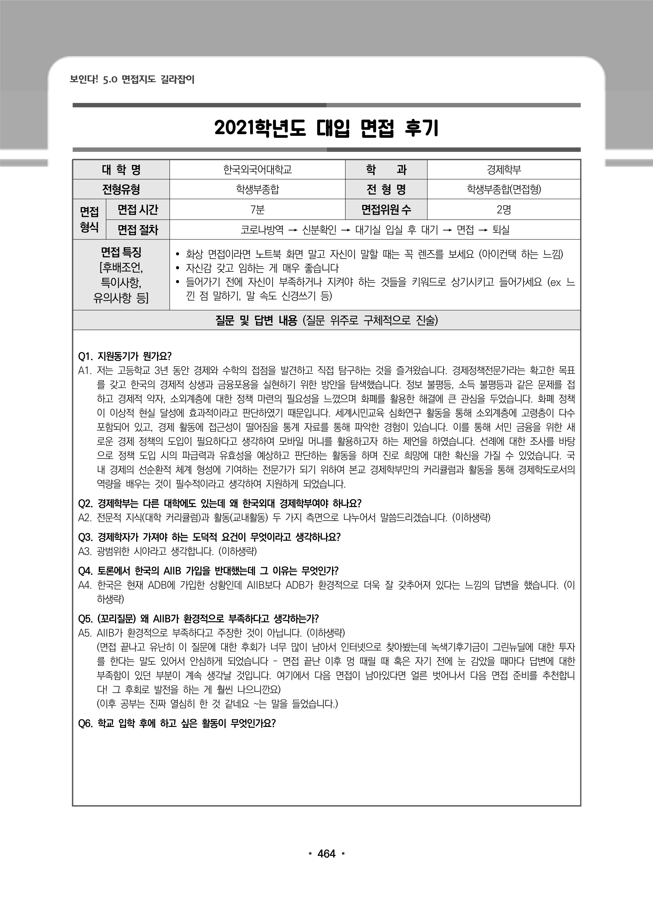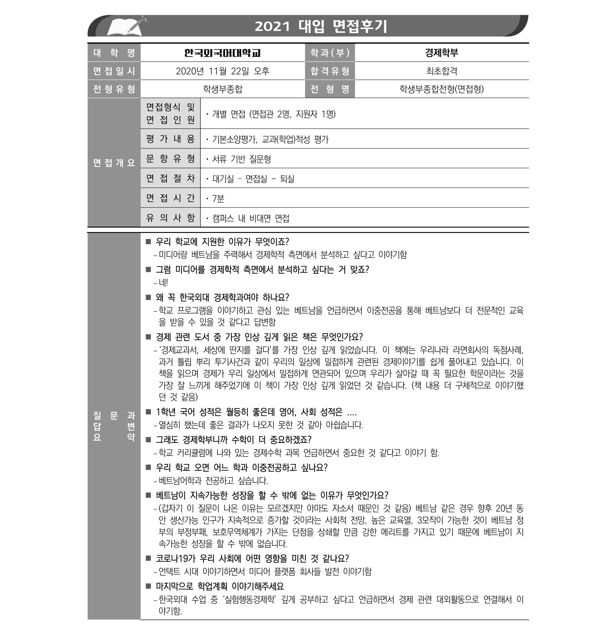 2021학년도 한국외국어대학교 면접 후기2 - 경제학부