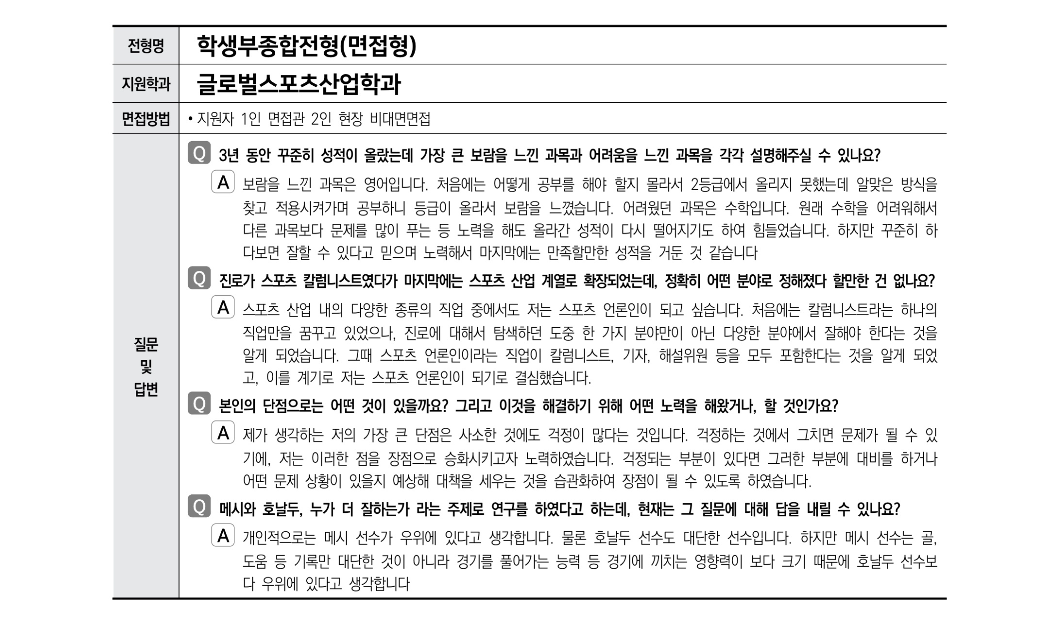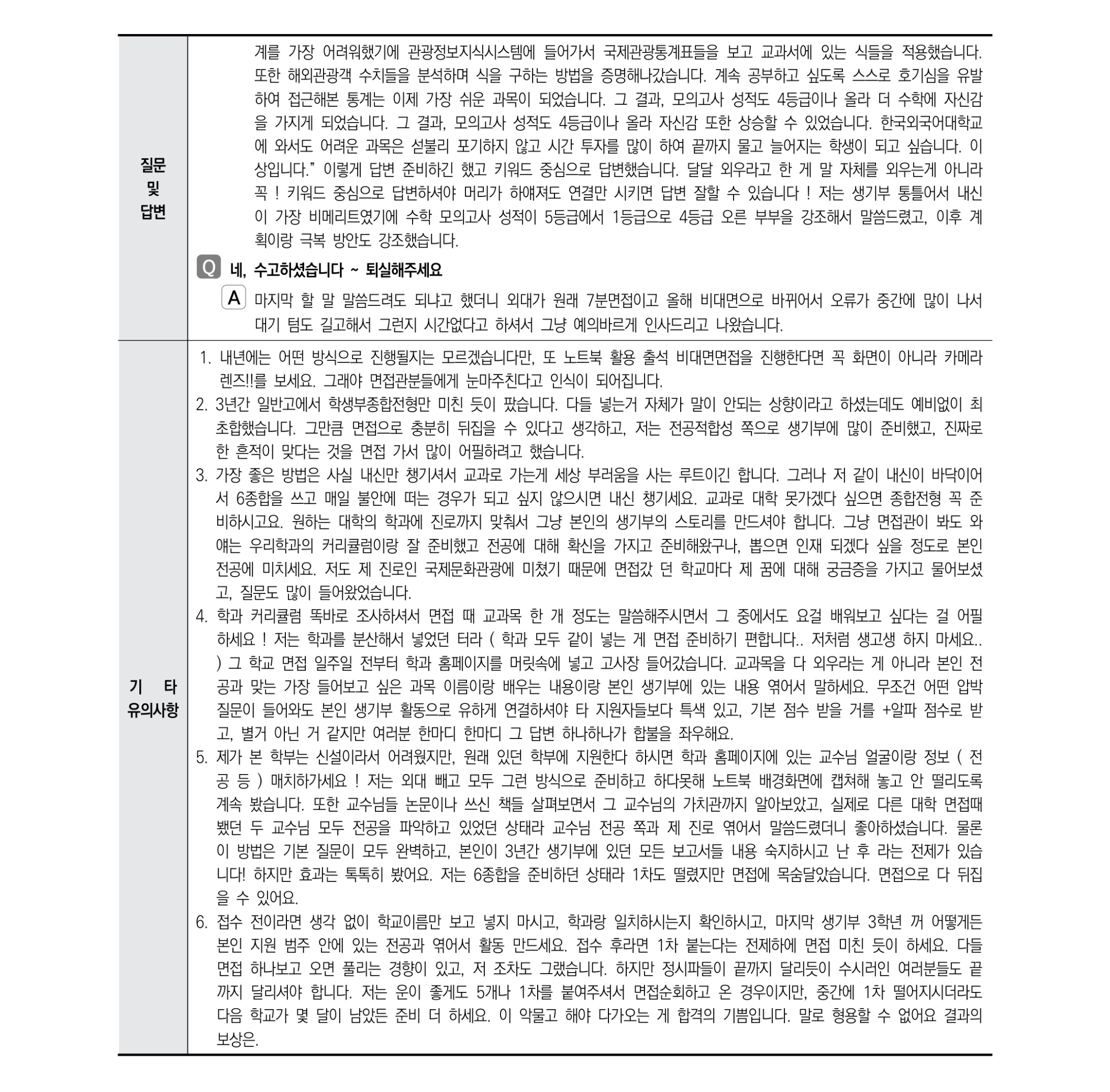 2021학년도 한국외국어대학교 면접 후기7 - 글로벌스포츠산업학과