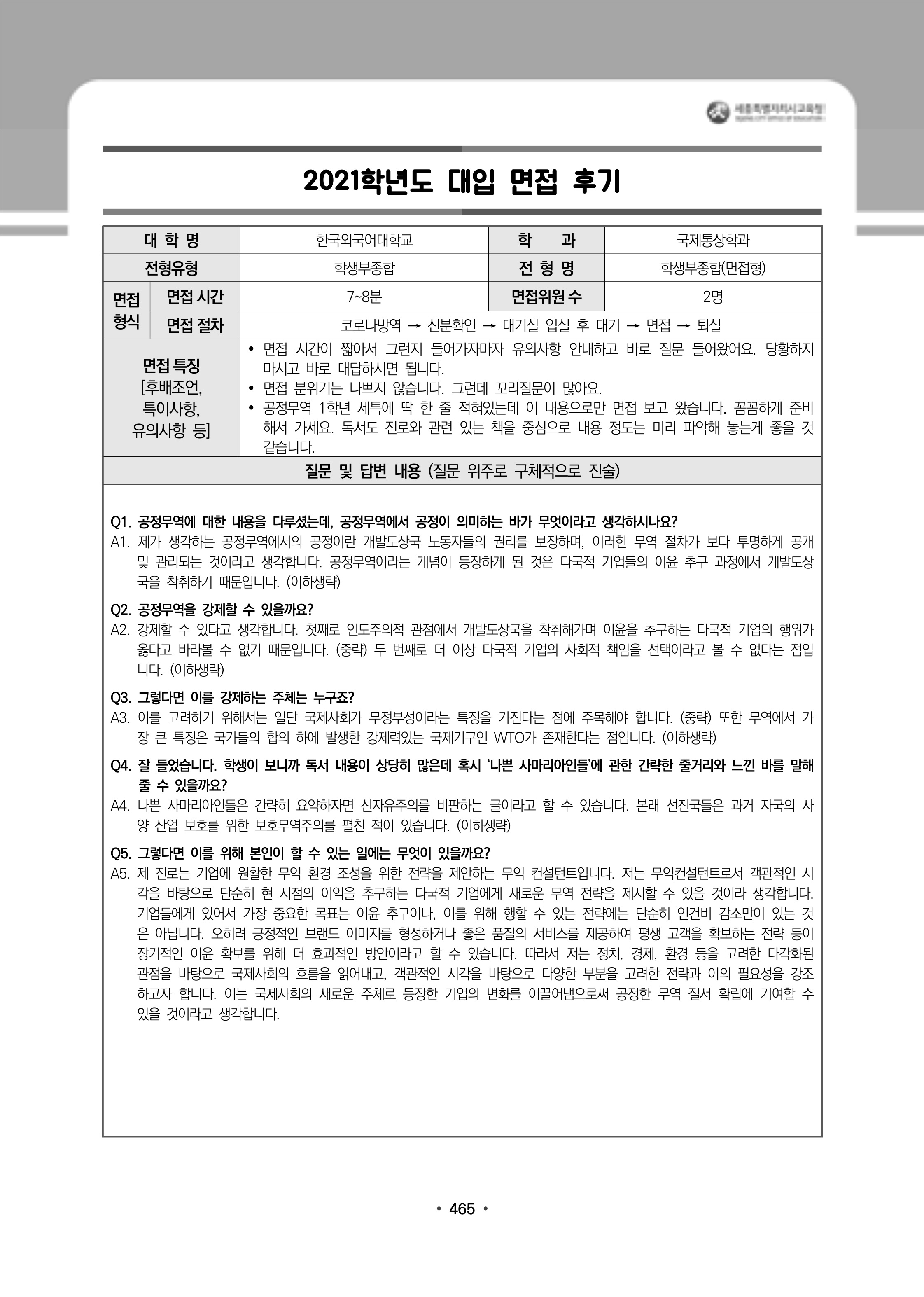 2021학년도 한국외국어대학교 면접 후기4 - 국제통상학과 2021학년도 한국외국어대학교 면접 후기5 - 국제학부