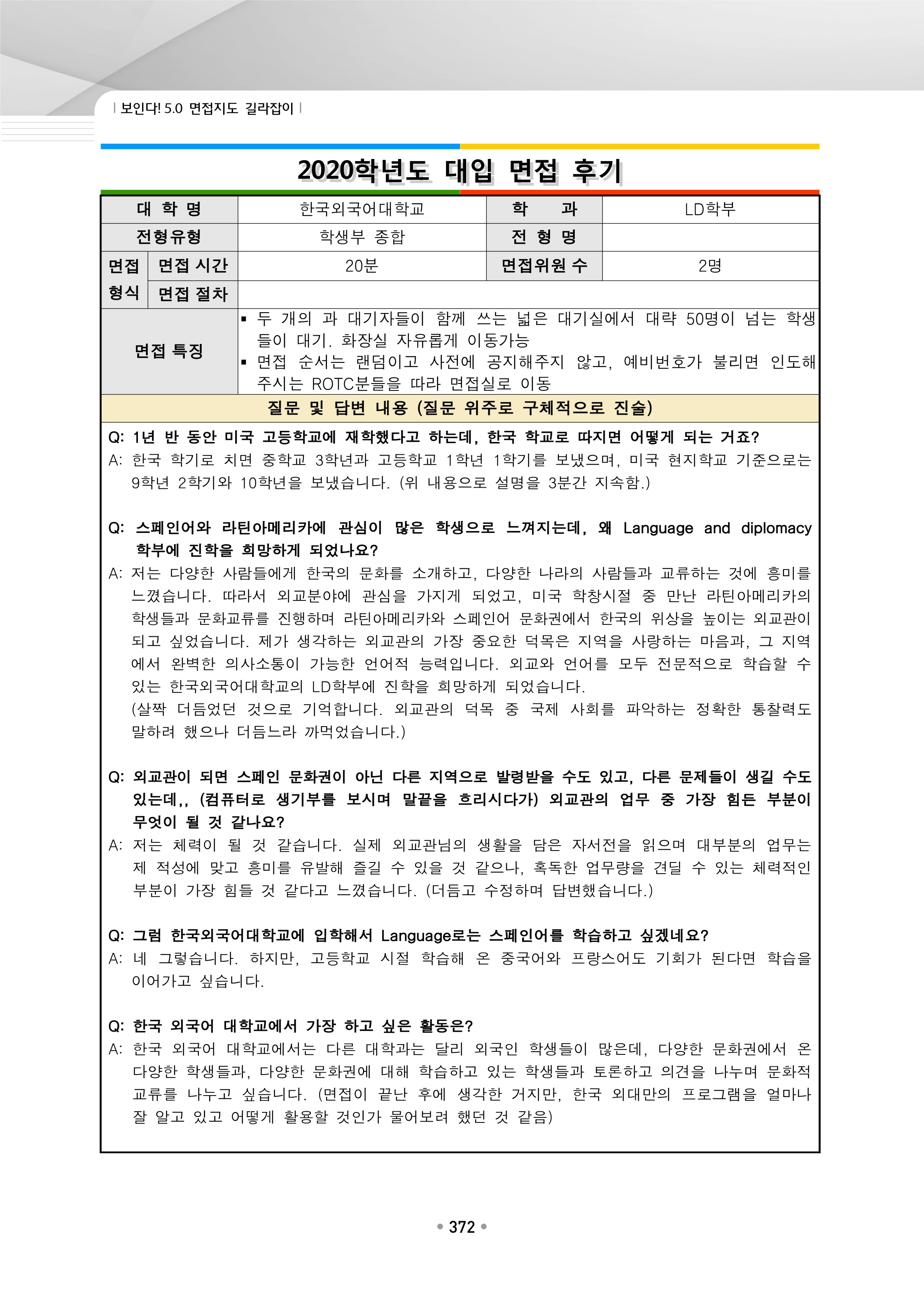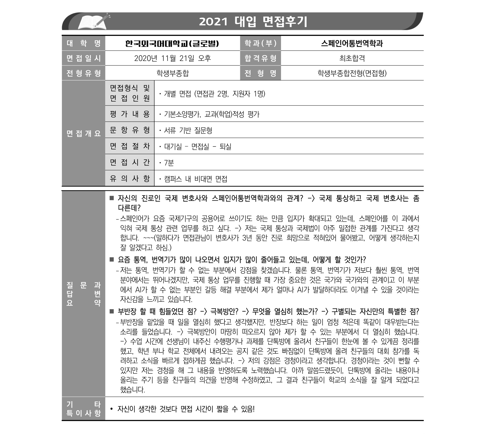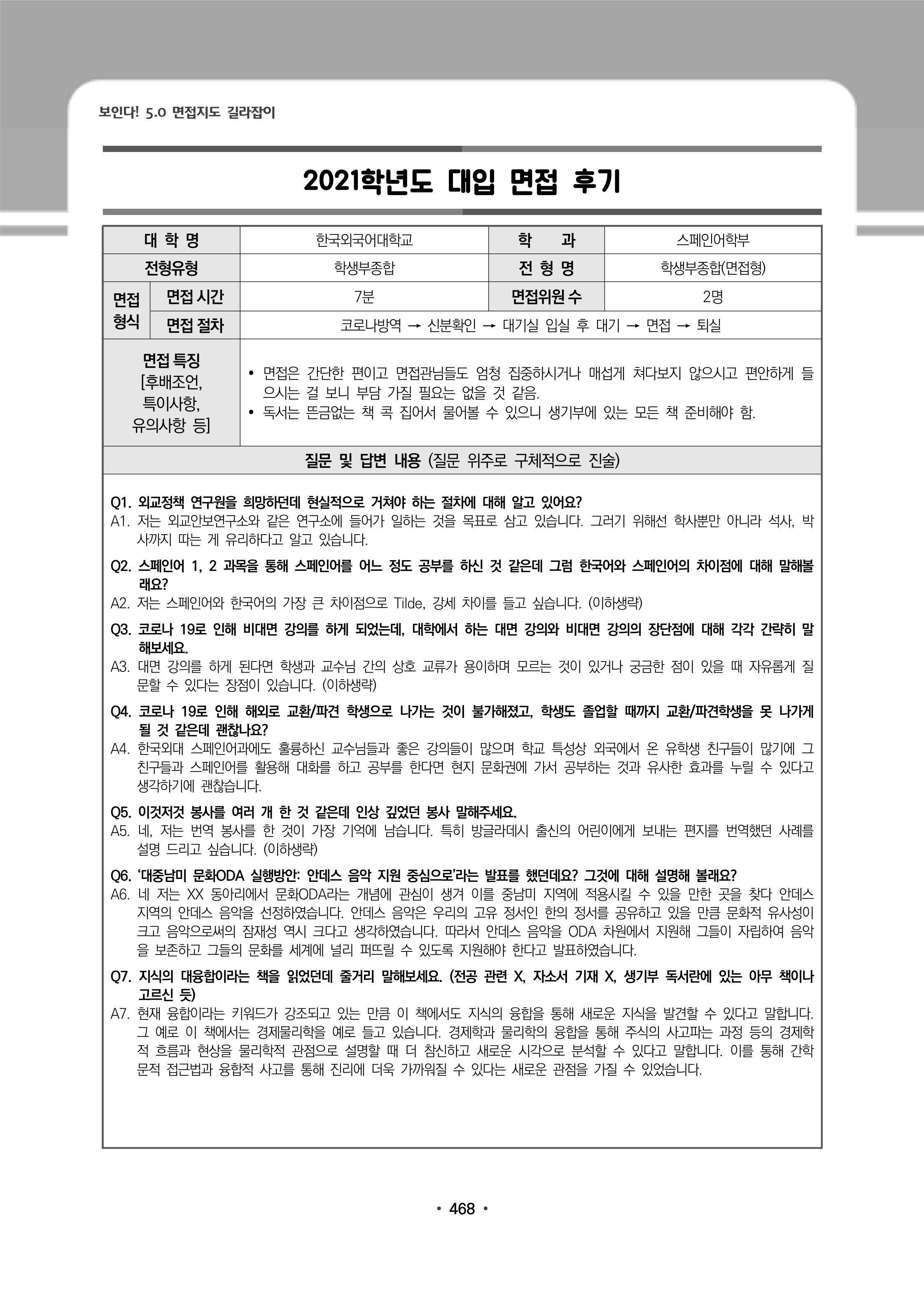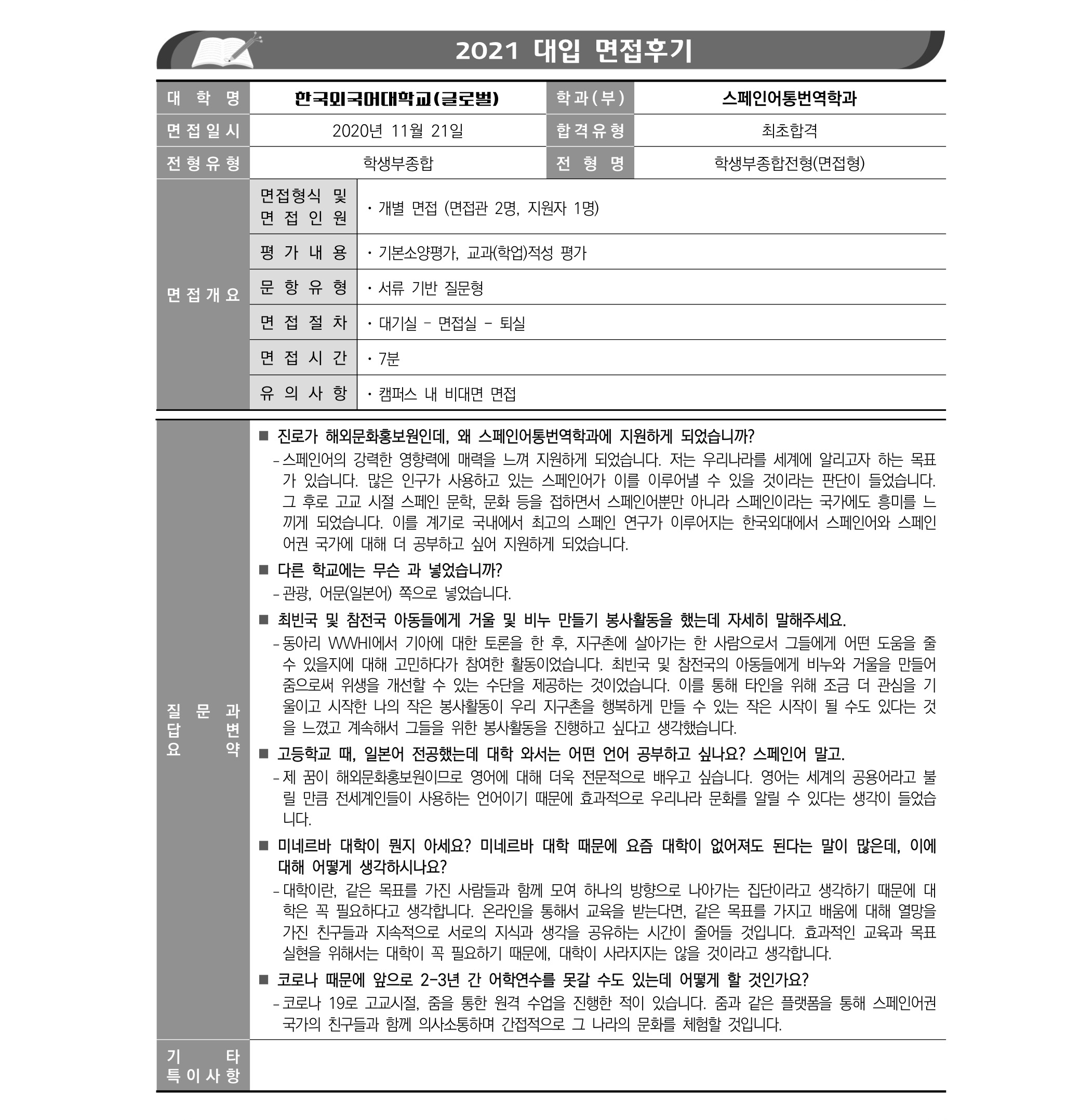 2021학년도 한국외국어대학교 면접 후기17 - 스페인어과
