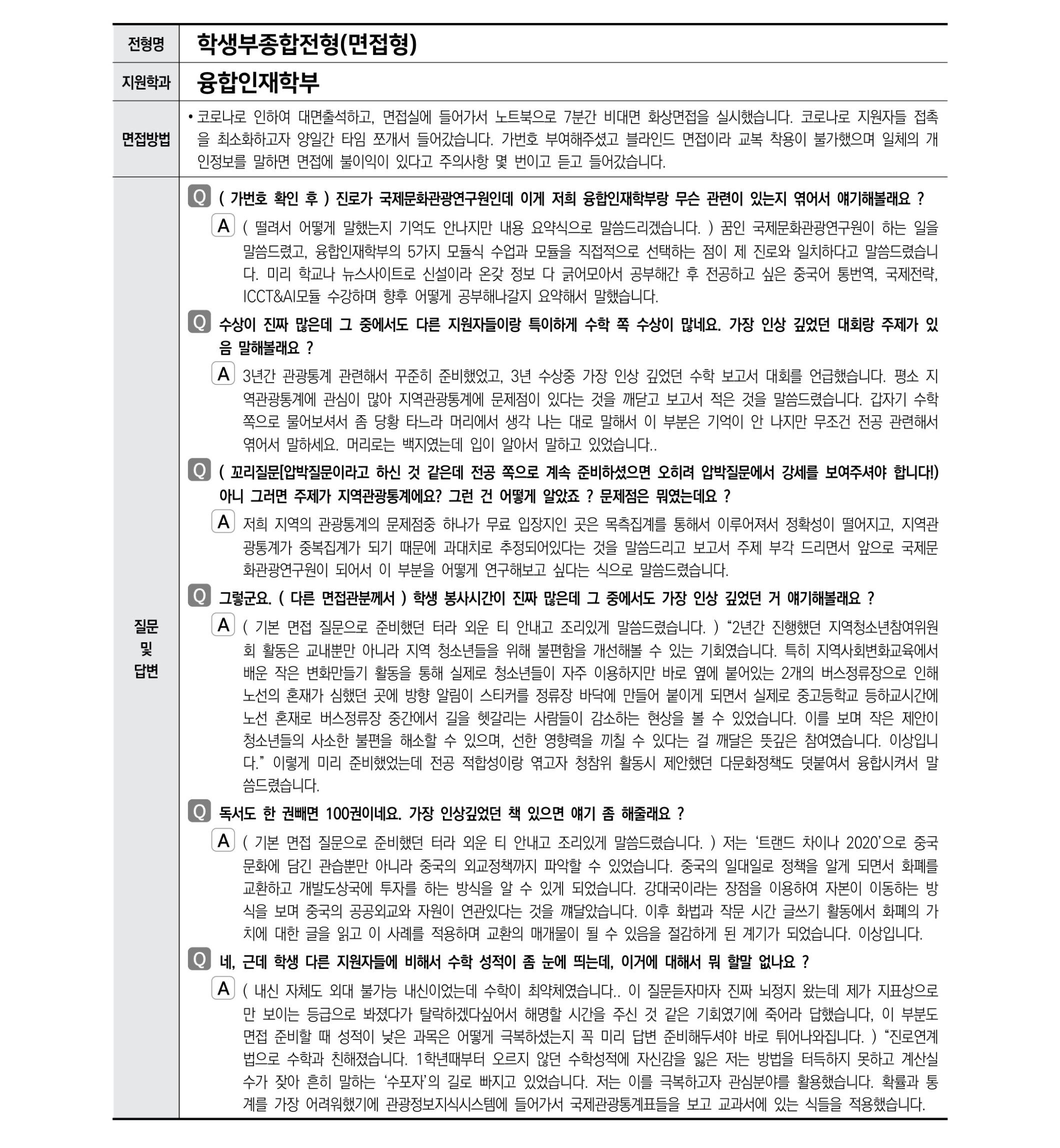 2021학년도 한국외국어대학교 면접 후기26 - 융합인재학부
