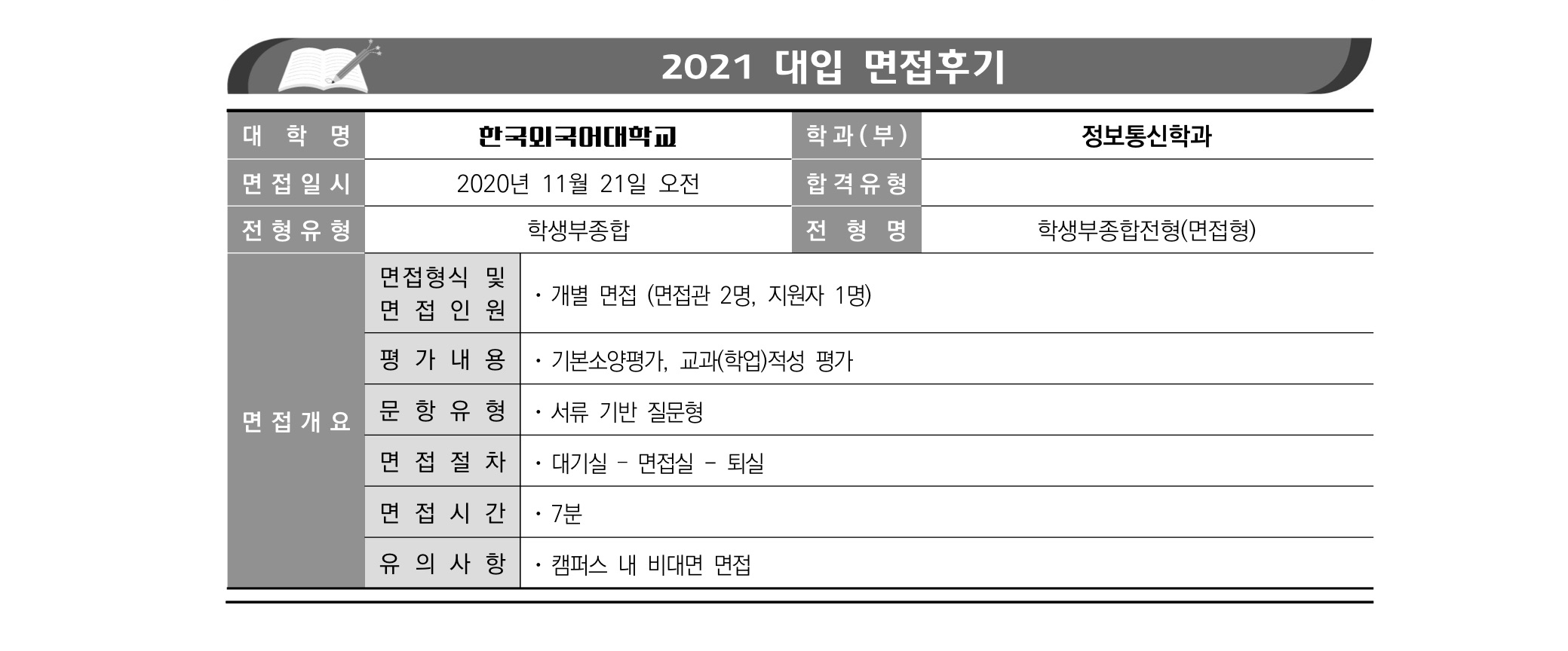 2021학년도 한국외국어대학교 면접 후기31 - 일본어통번역학과 2021학년도 한국외국어대학교 면접 후기32 - 정보통신학과