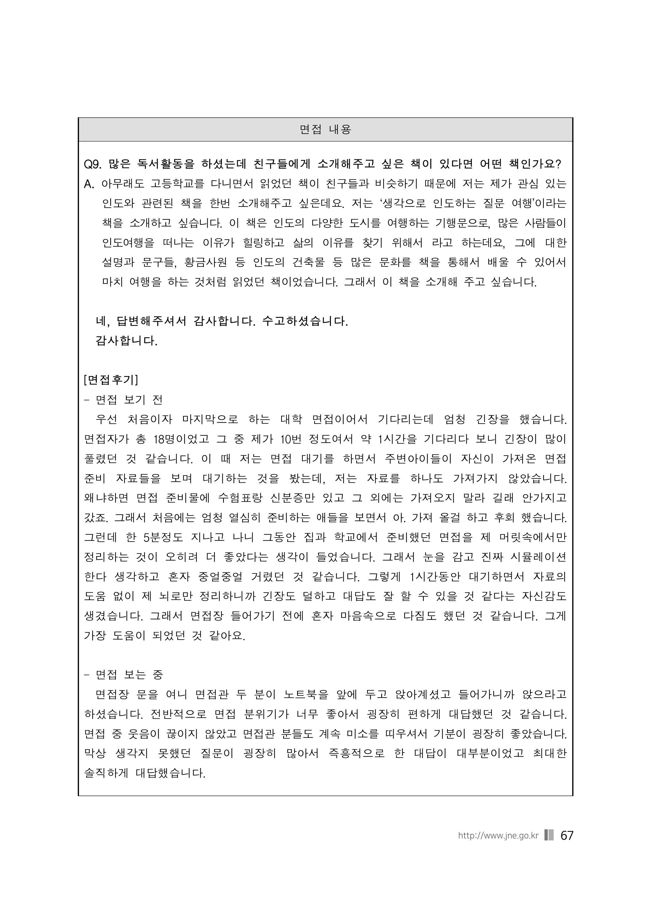 - 과학, 수학 성적이 좋은데 굳이 인문계열을 선택한 이유를 말씀해주세요.