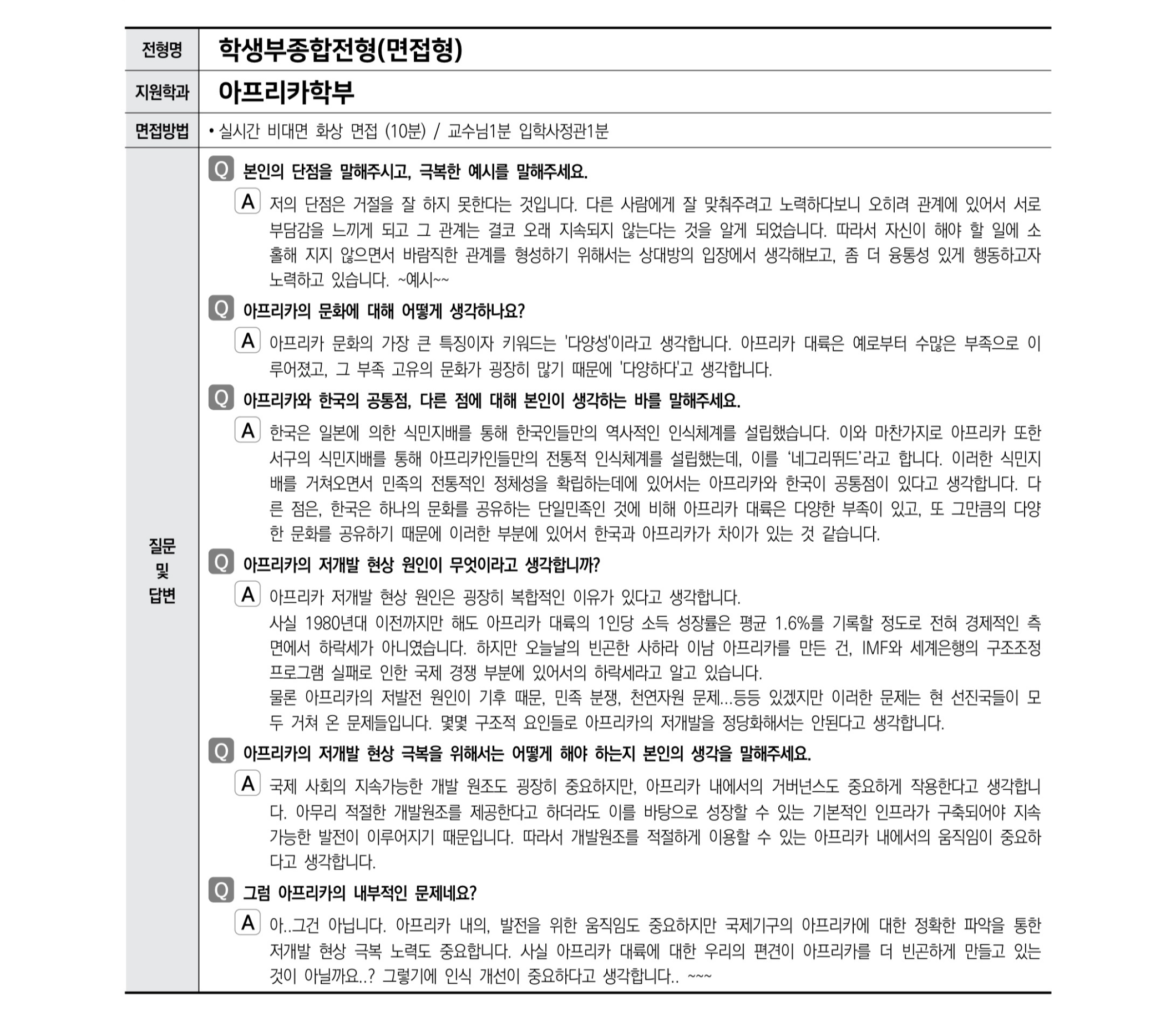 2021학년도 한국외국어대학교 면접 후기21 - 아프리카학부