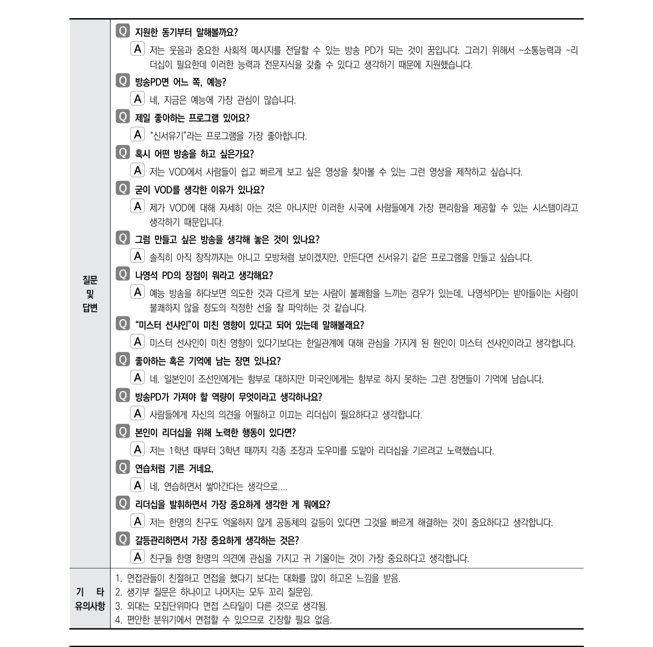 - 아나운서가 되고 싶다고 했는데 왜 여기를 지원했어요? 그러면 아나운서가 꼭 갖추어야 할 것이 있다면 뭐라고 생각해요?