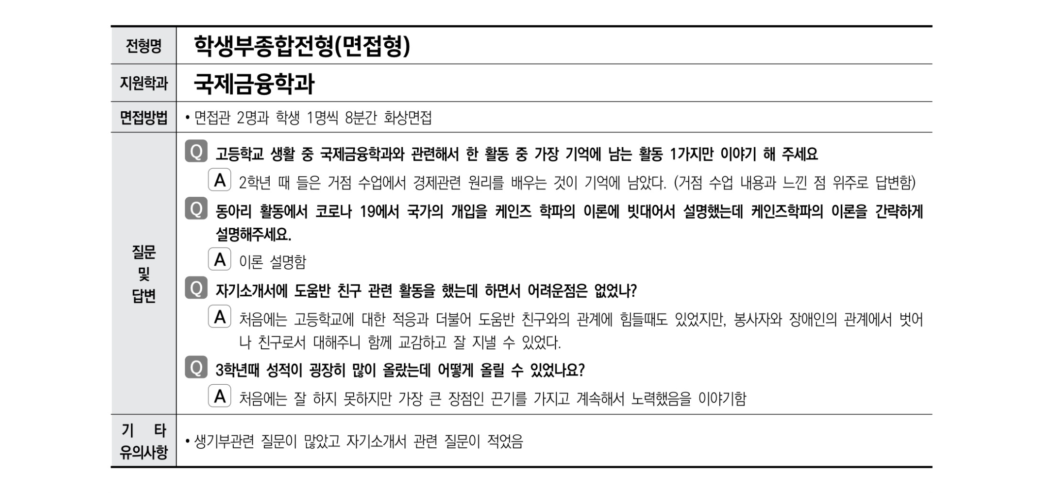 2021학년도 수시 면접 기출 사례